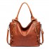 E6713 BK - Big Size Soft Leather Look Slouchy Hobo Shoulder Bag Black