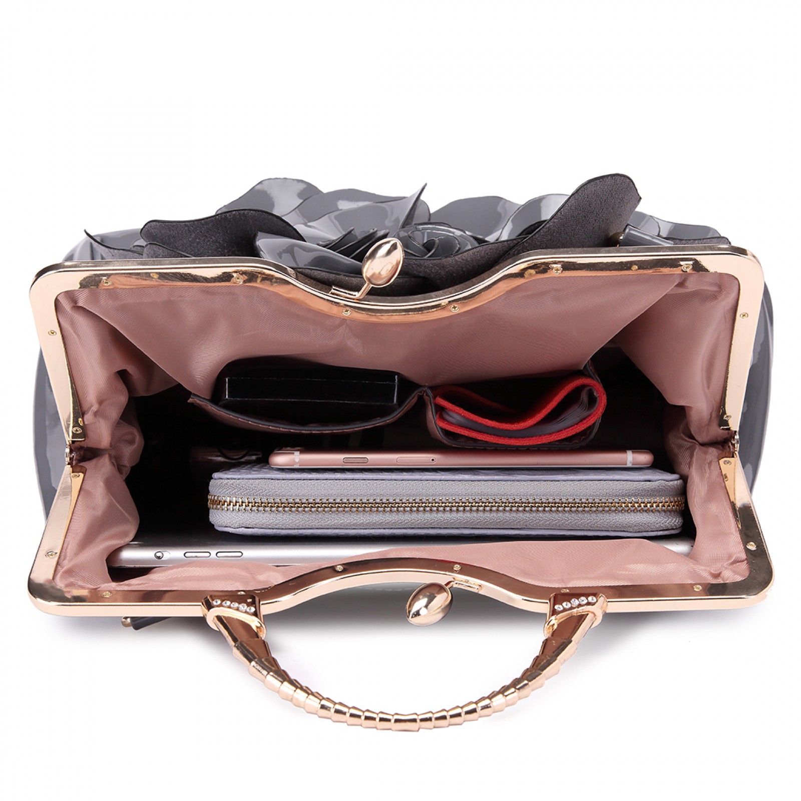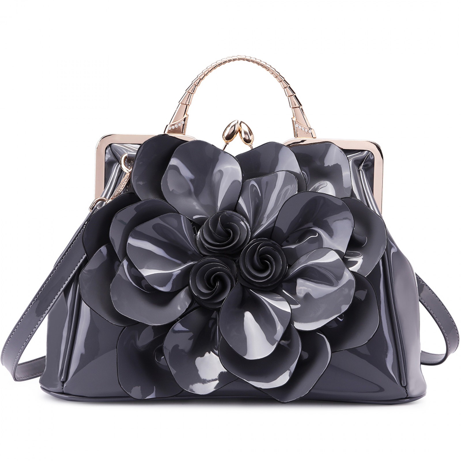 LG1754 GY - Miss Lulu PU Leather Flower Women Large Hobo Handbags Grey