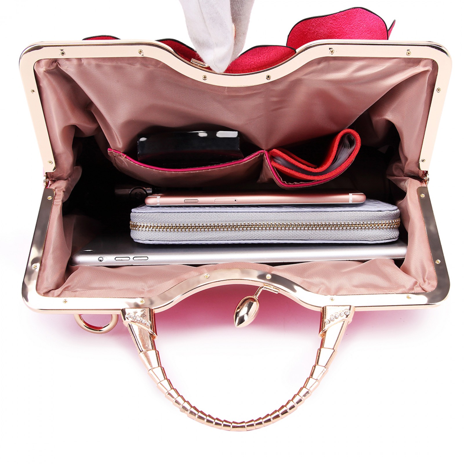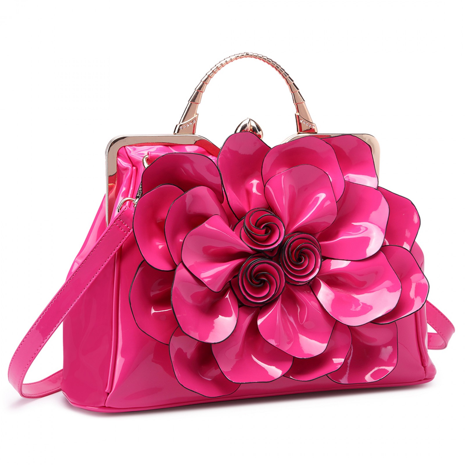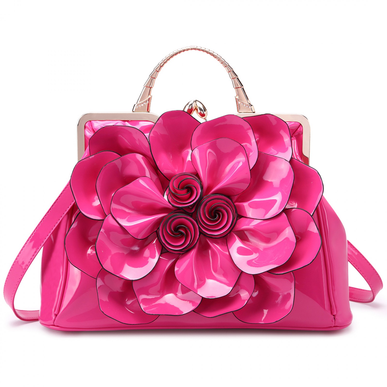 LG1754 PM - Miss Lulu PU Leather Flower Women Large Hobo Handbags Plum
