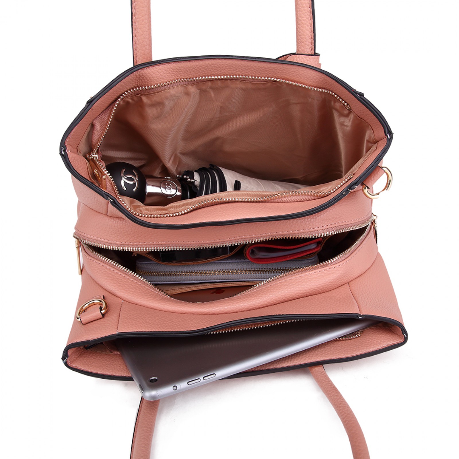 LT1748 PK - Miss Lulu Multi-Compartment Large Handbags Pink