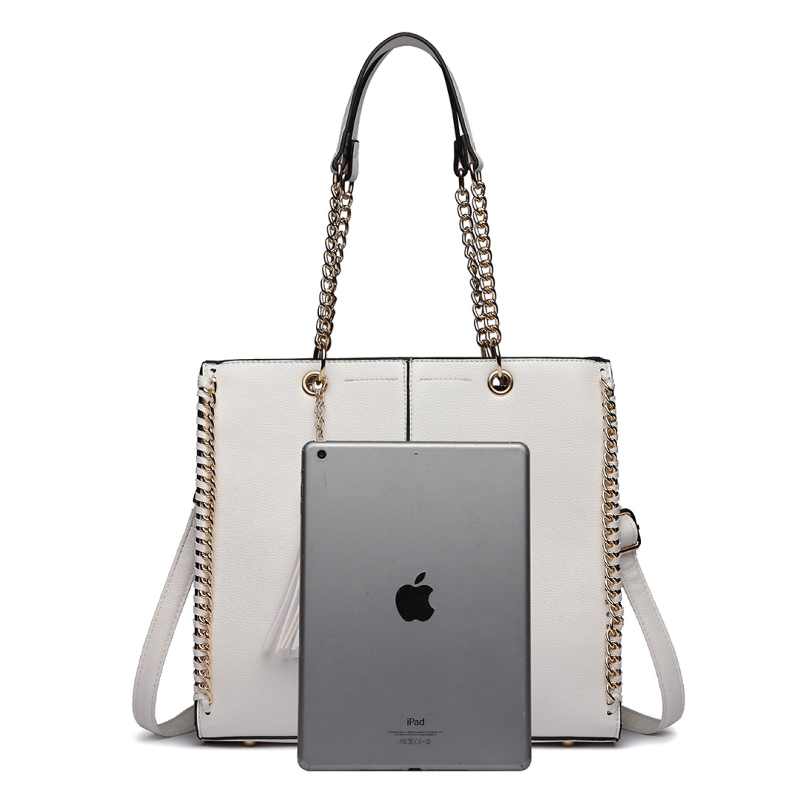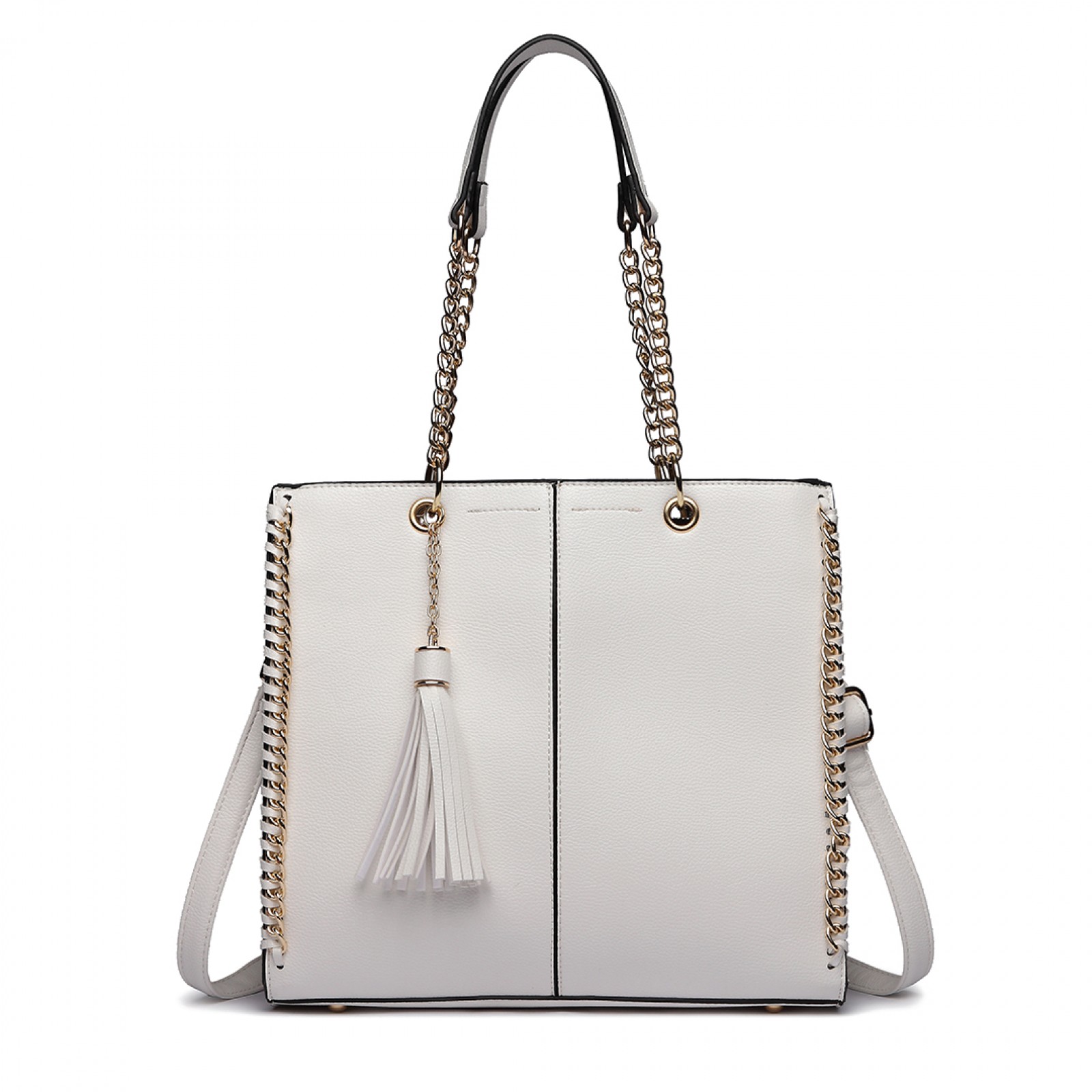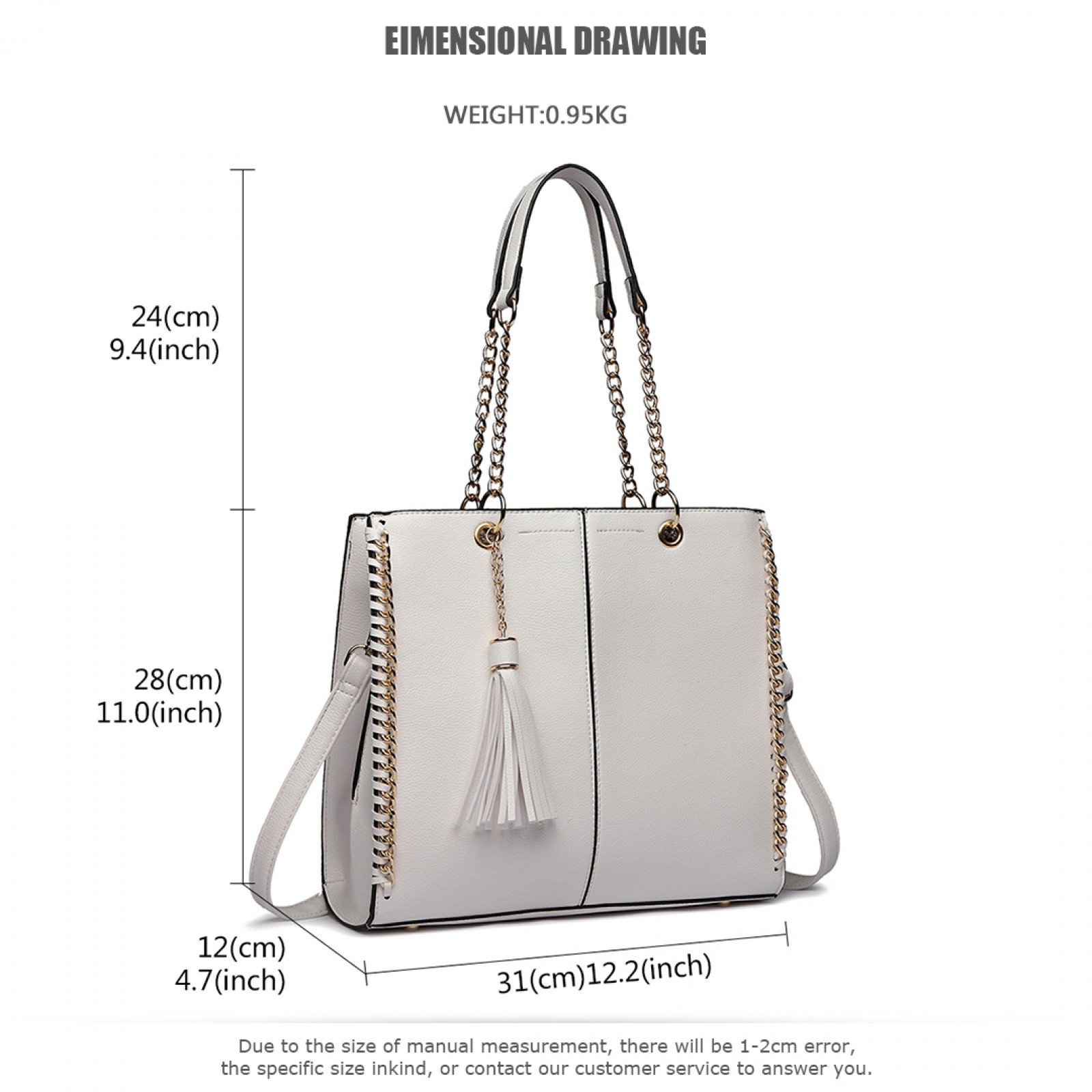LT1821 WE -Miss Lulu Faux Leather Tassel Chain Tote Handbags White