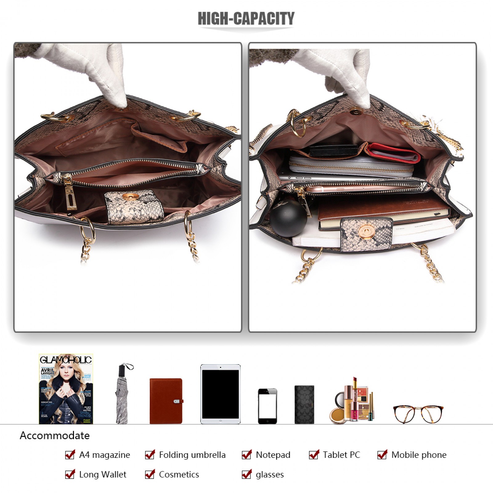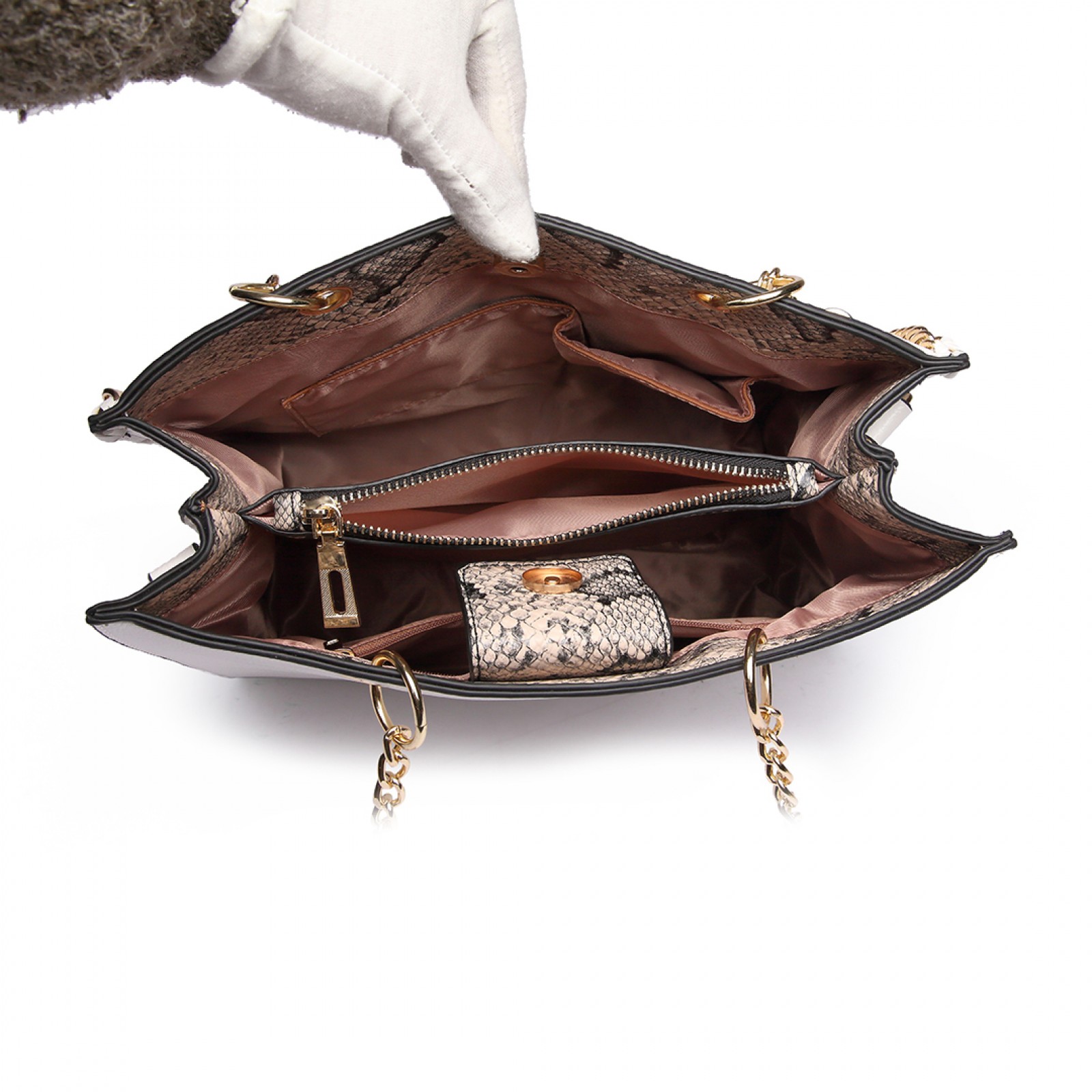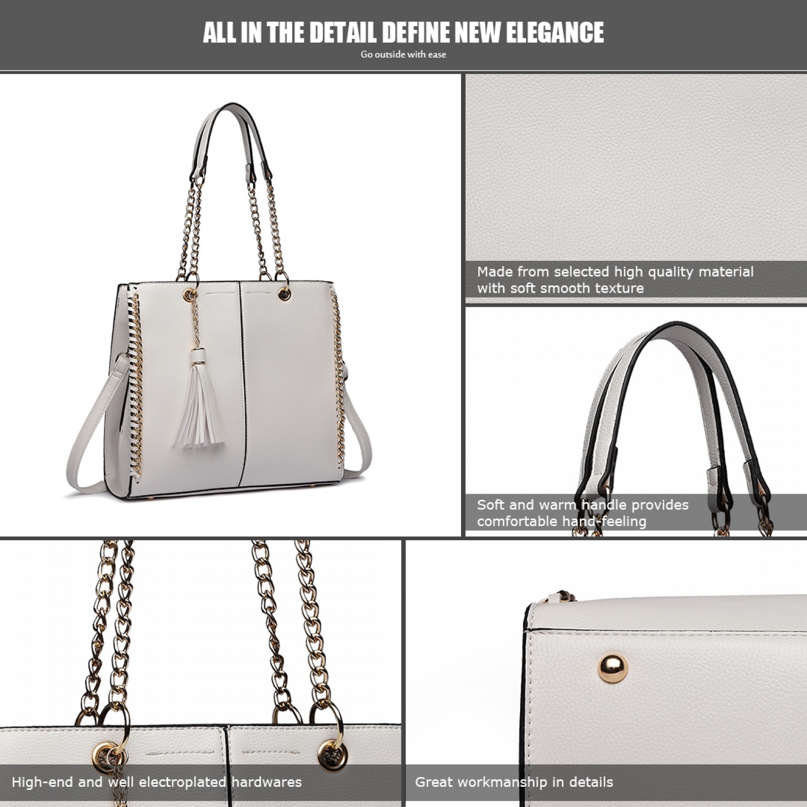 LT1821 WE -Miss Lulu Faux Leather Tassel Chain Tote Handbags White