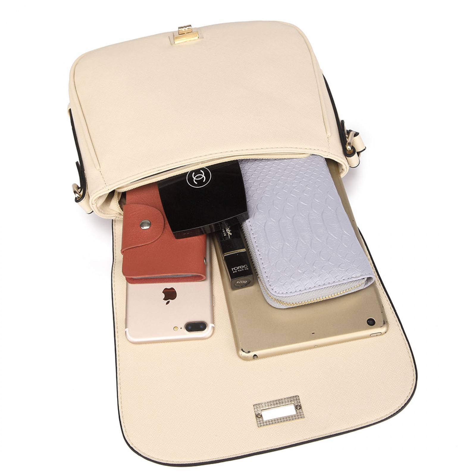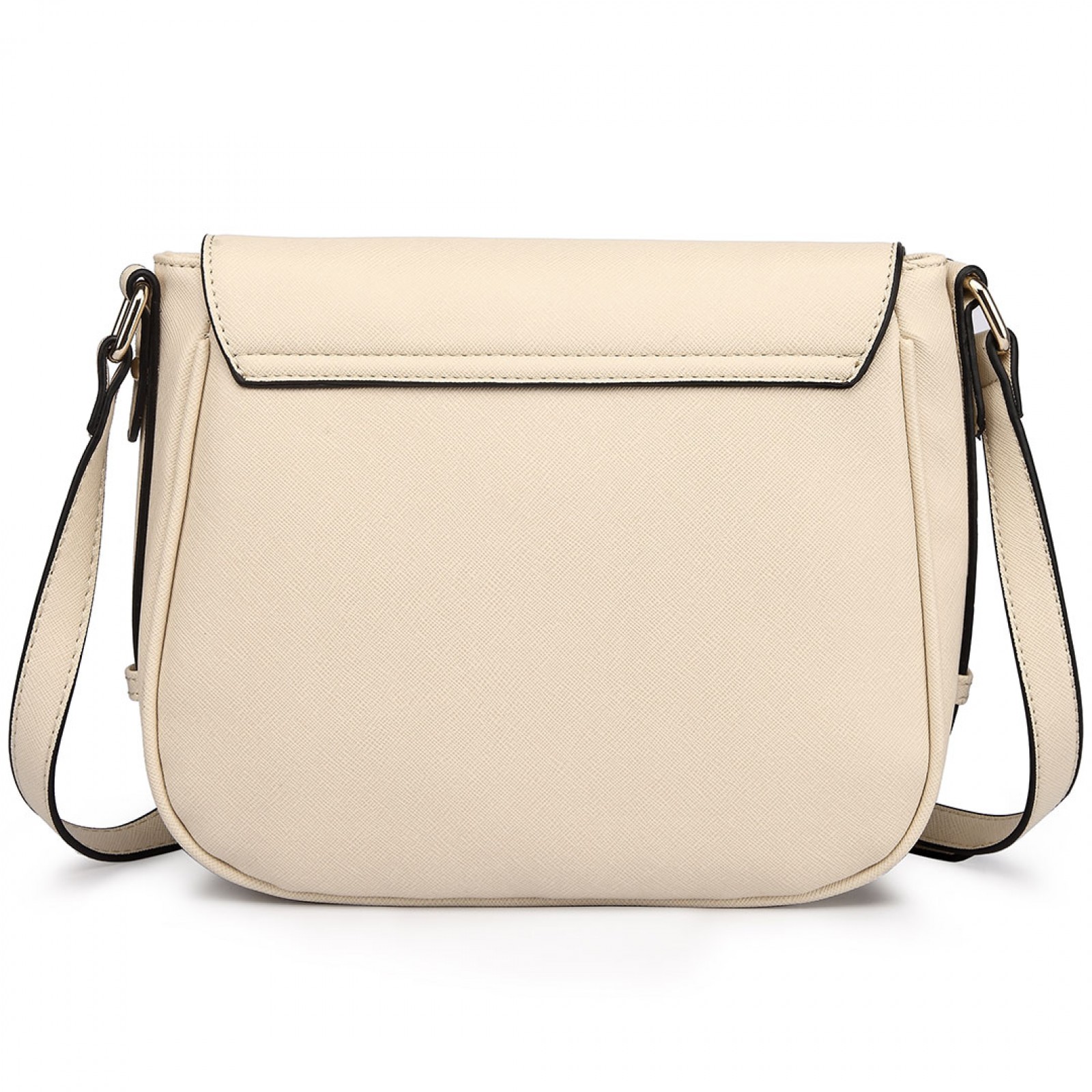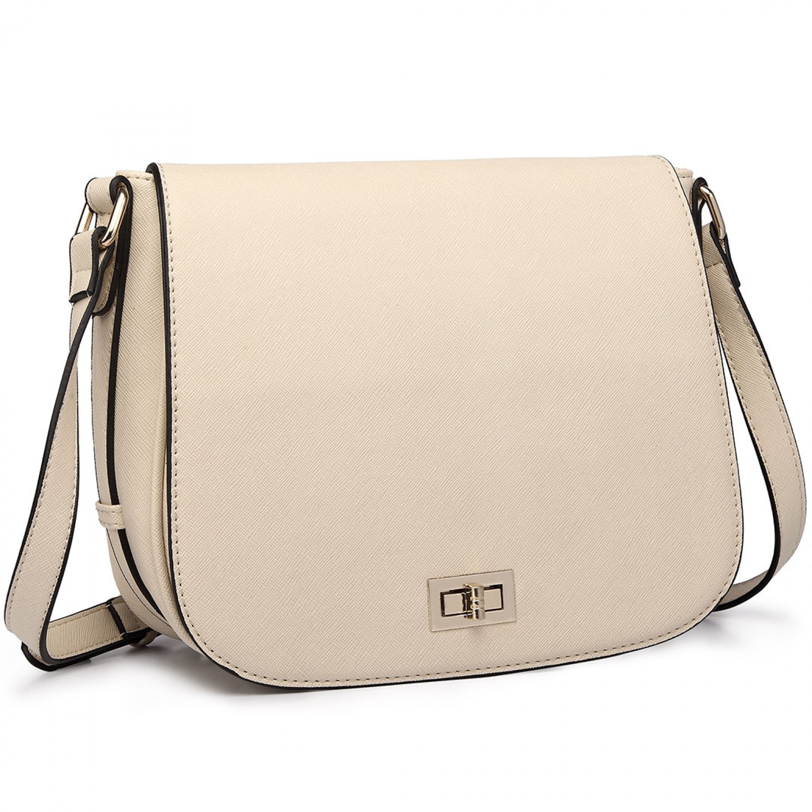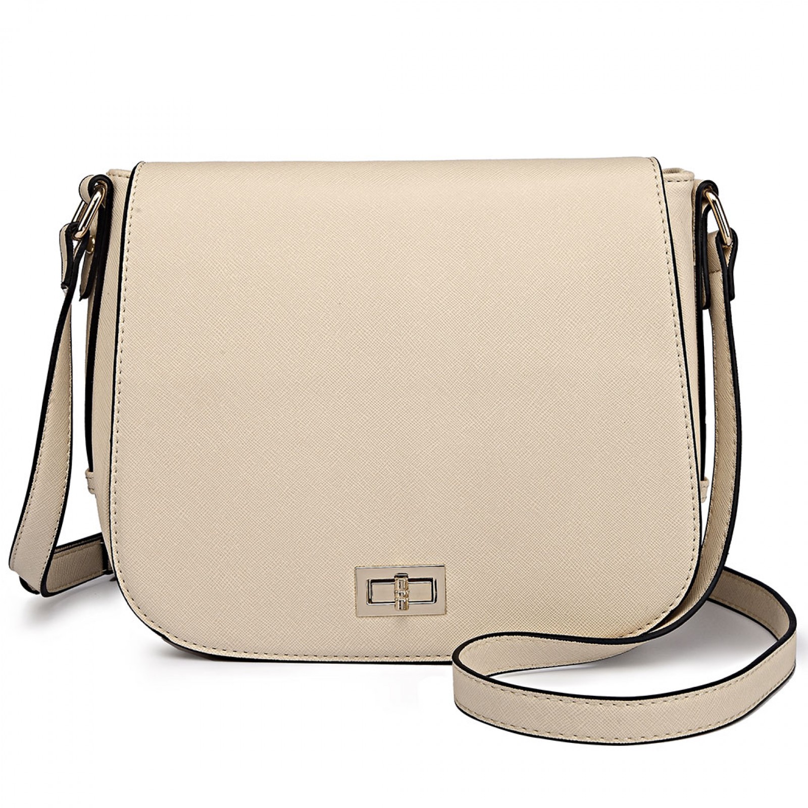 LT1662 - Miss Lulu Leather Look Cross Body Saddle Bag Beige