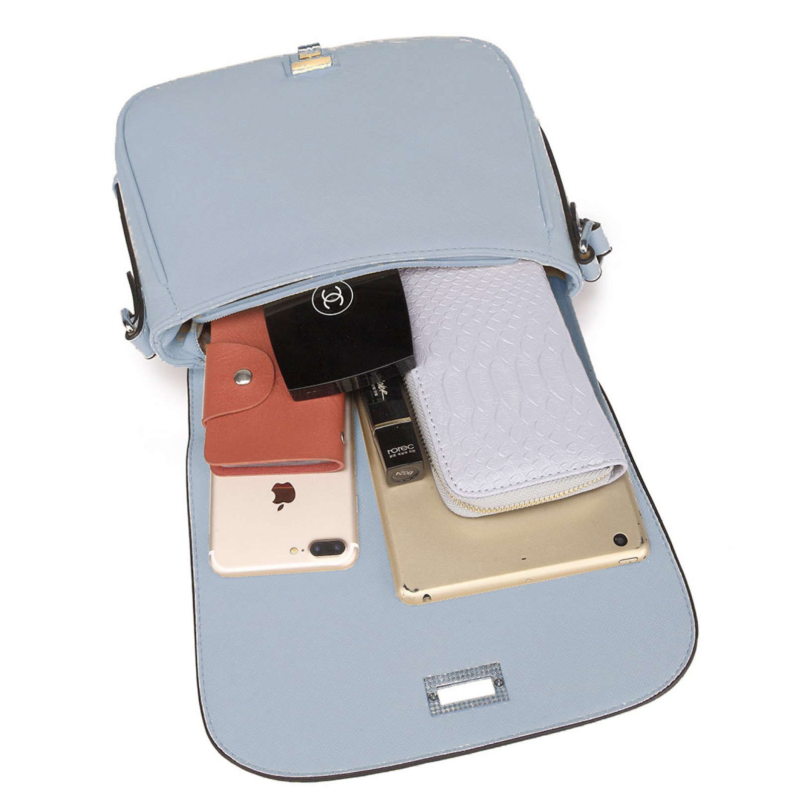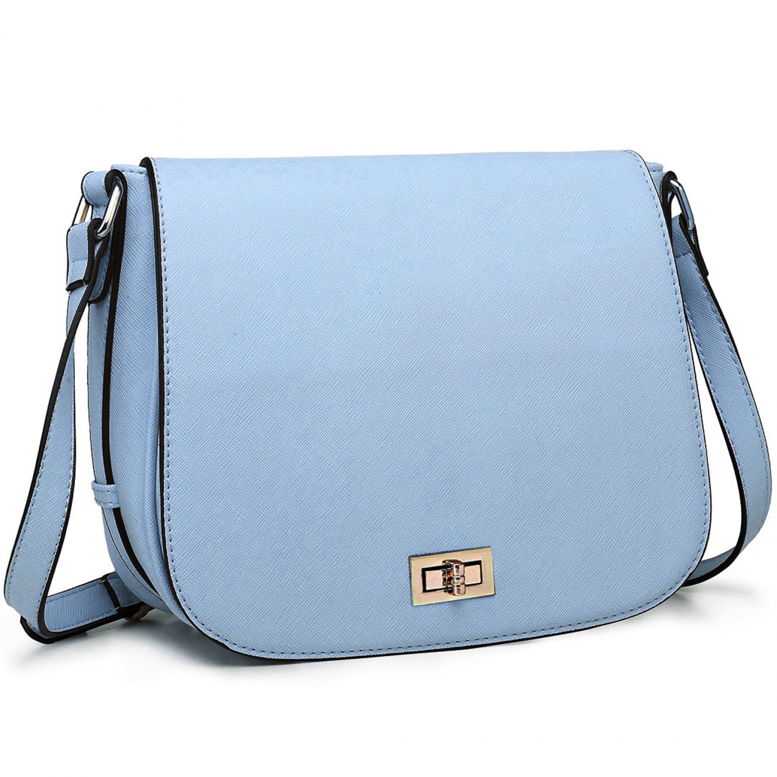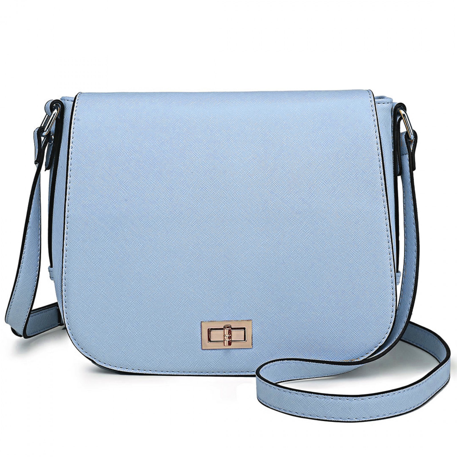 LT1662 - Miss Lulu Leather Look Cross Body Saddle Bag Blue