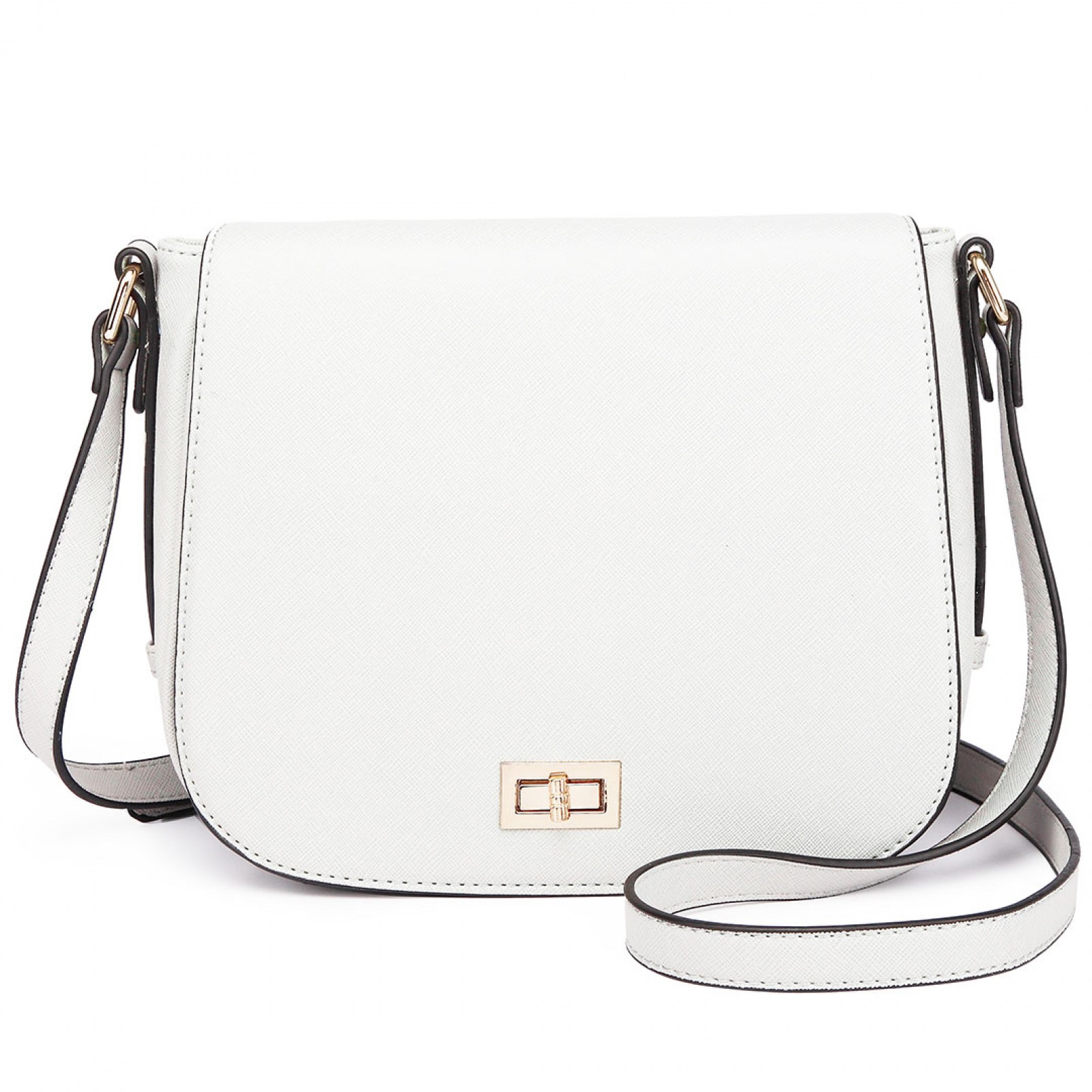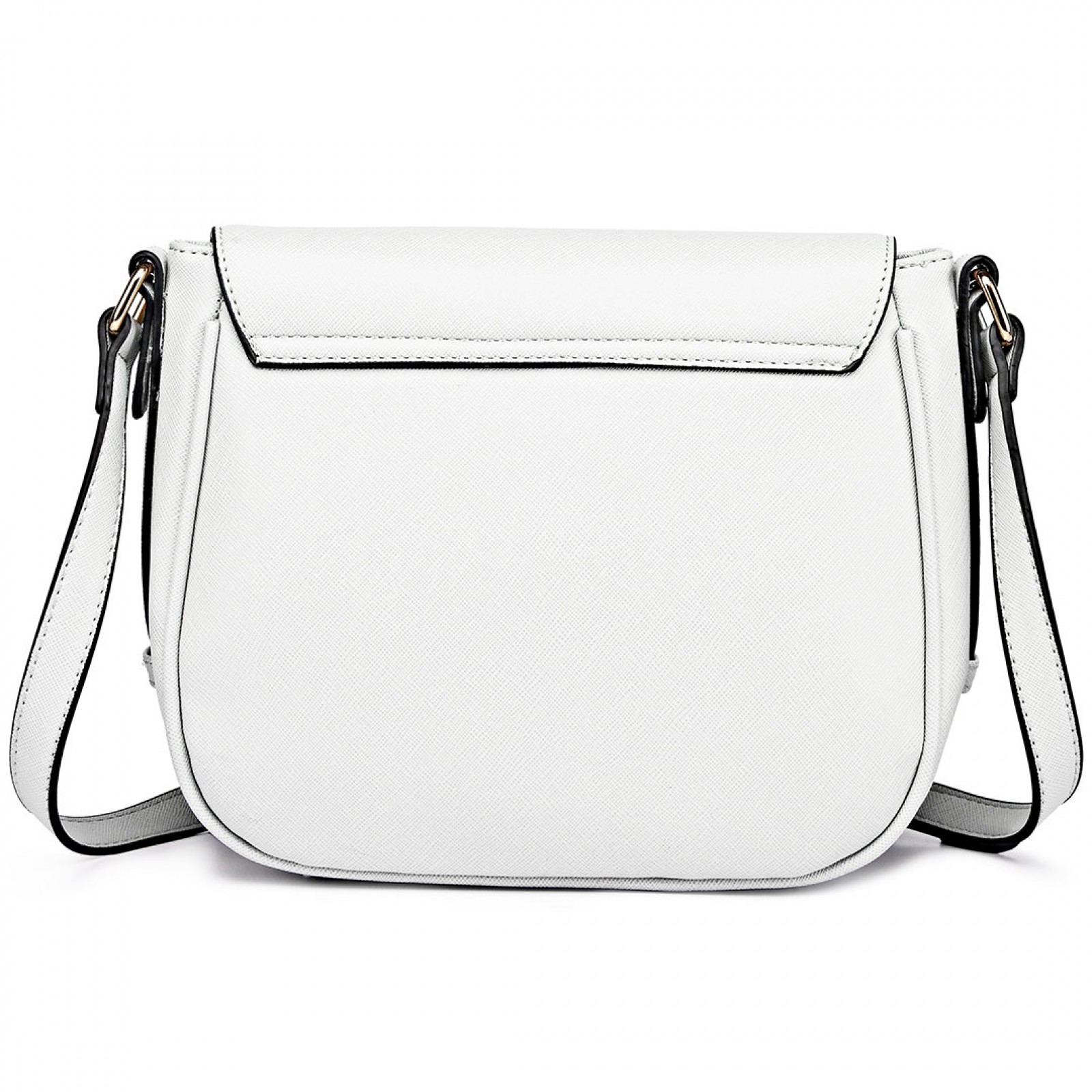 LT1662 - Miss Lulu Leather Look Cross Body Saddle Bag White