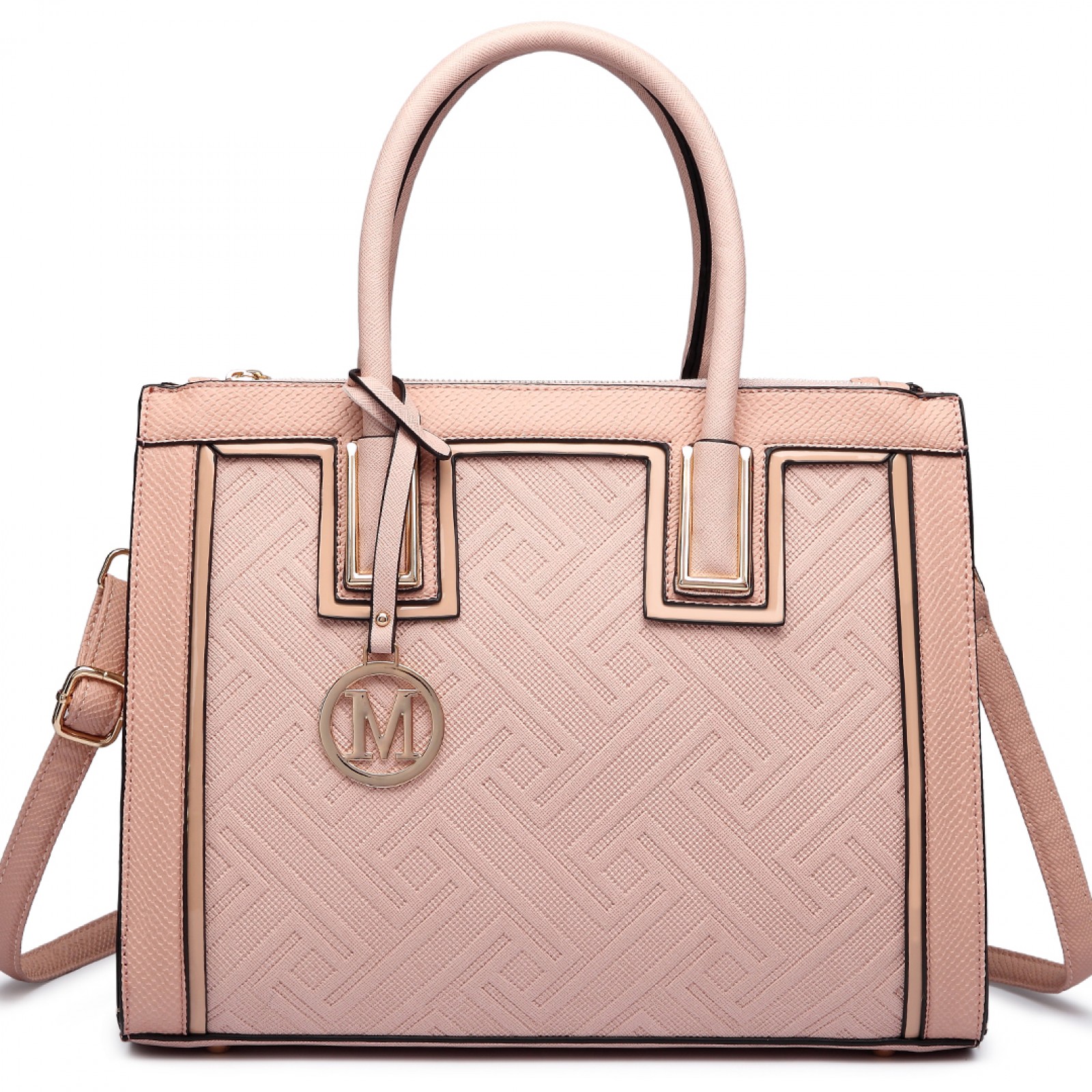 LT6622 - Miss Lulu Raised Cord Tote Handbag Faux Leather Nude