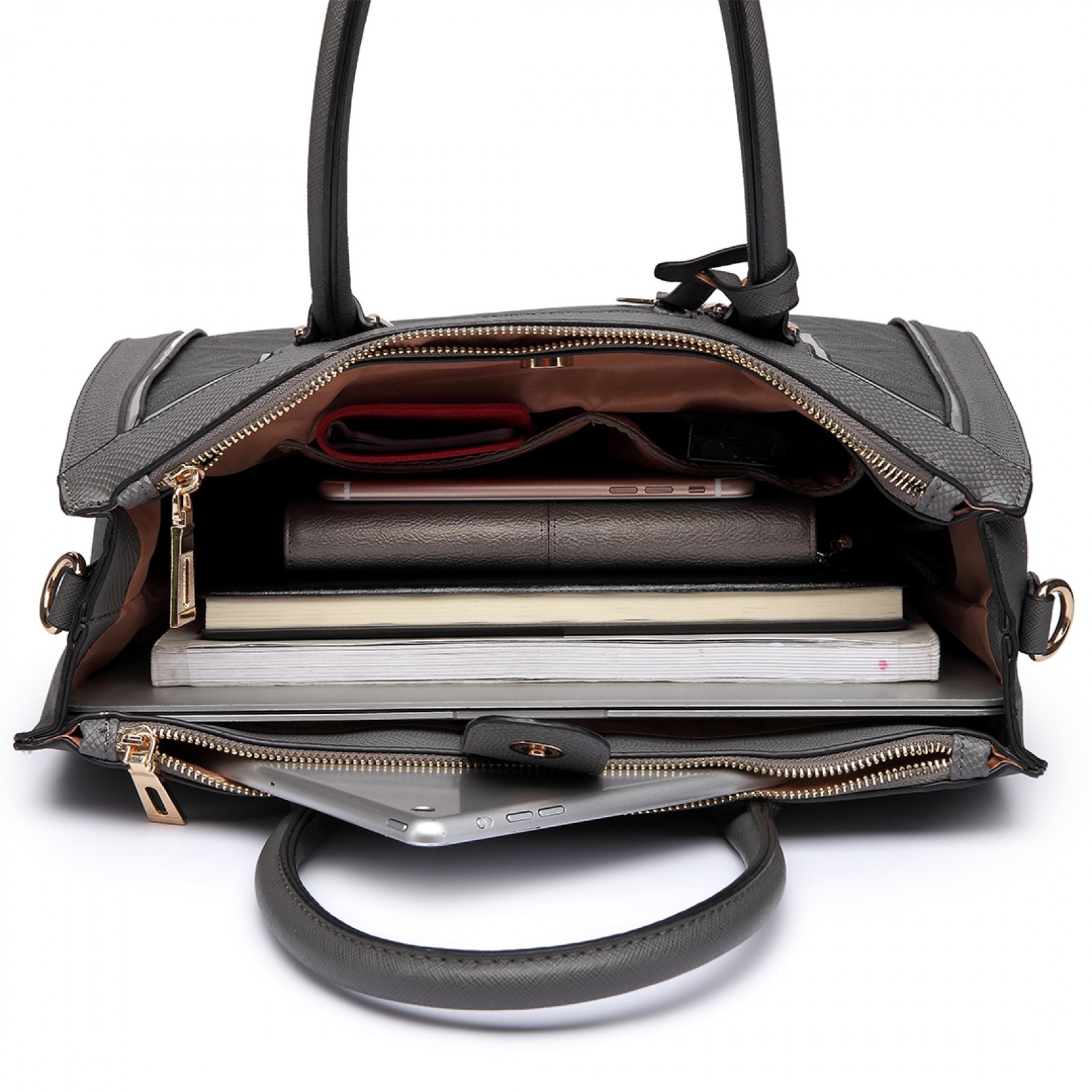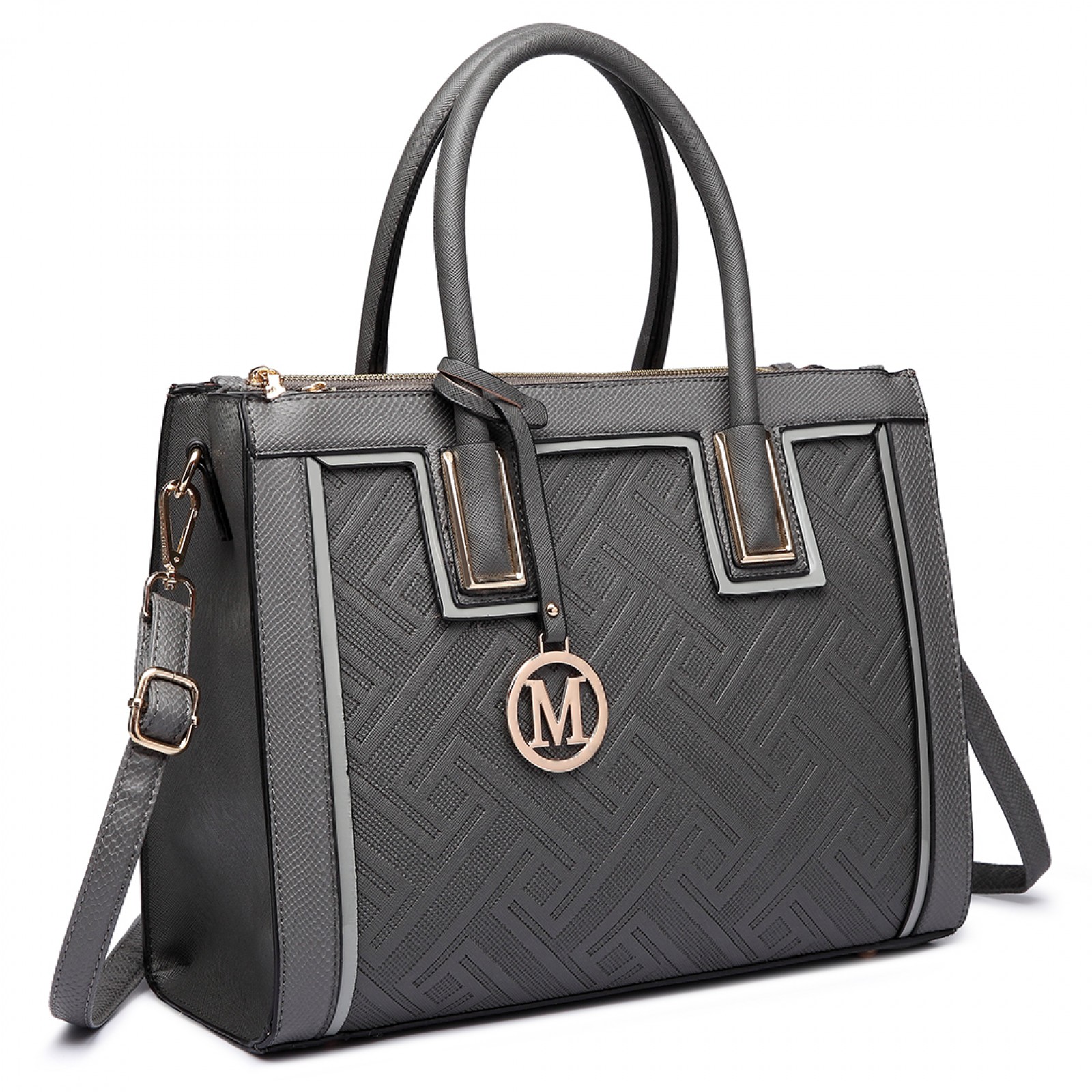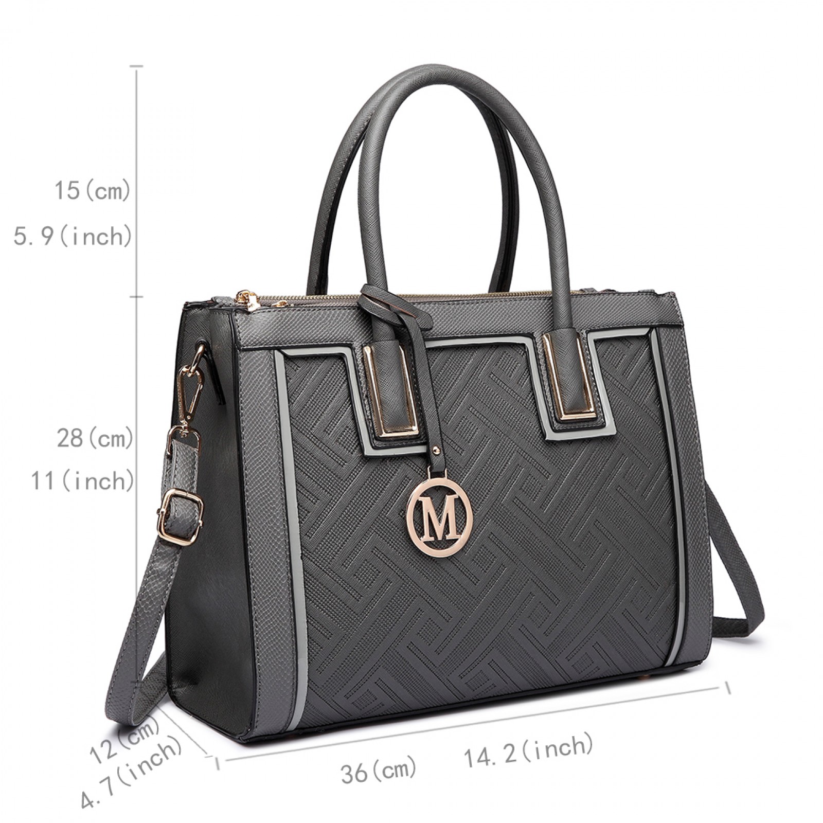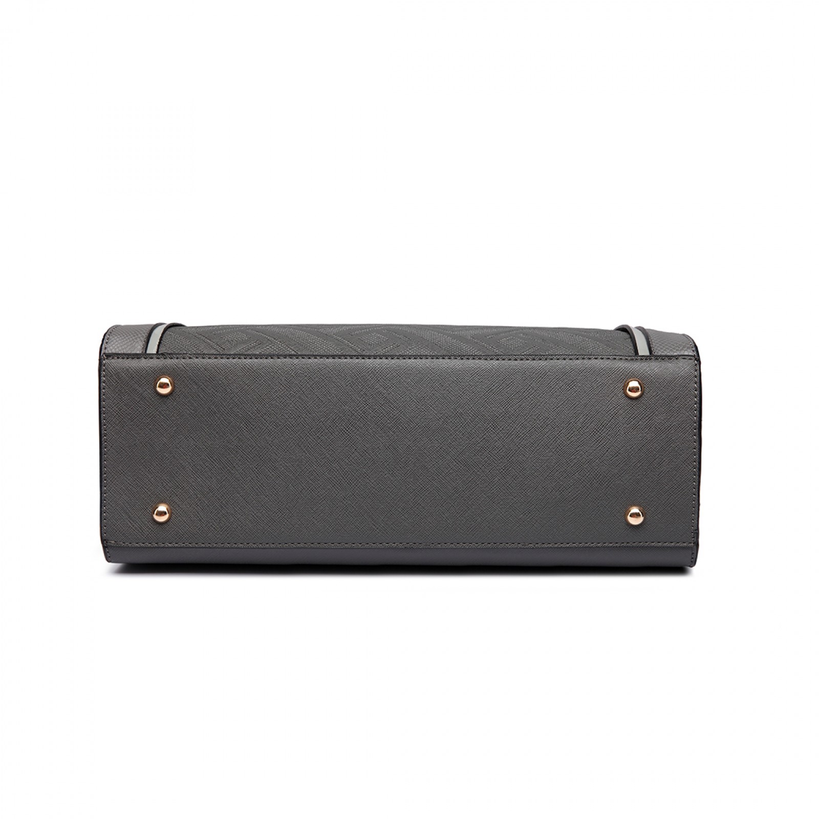 LT6622 - Miss Lulu Raised Cord Tote Handbag Faux Leather Grey