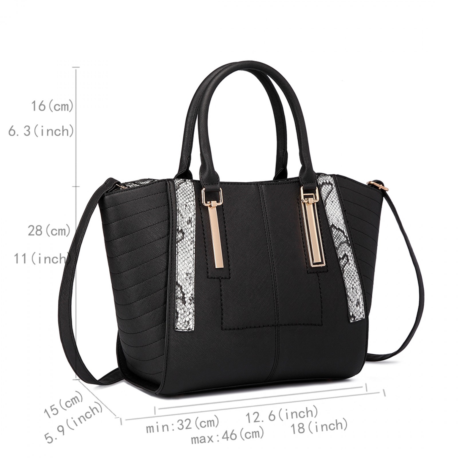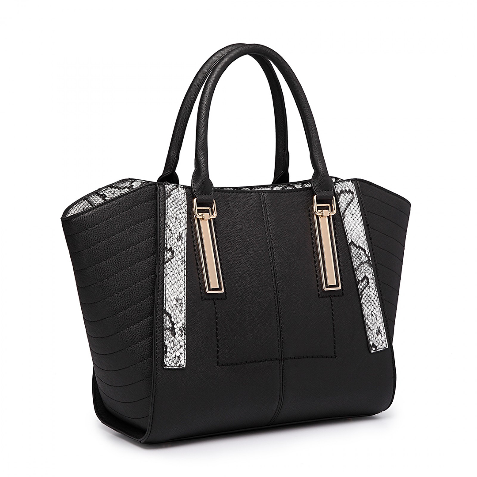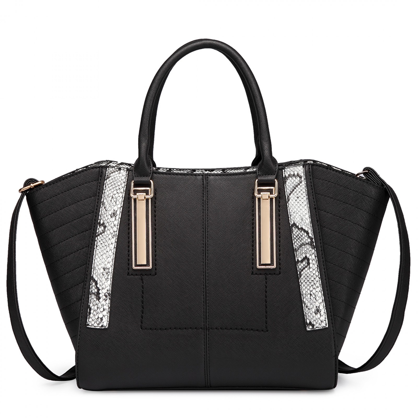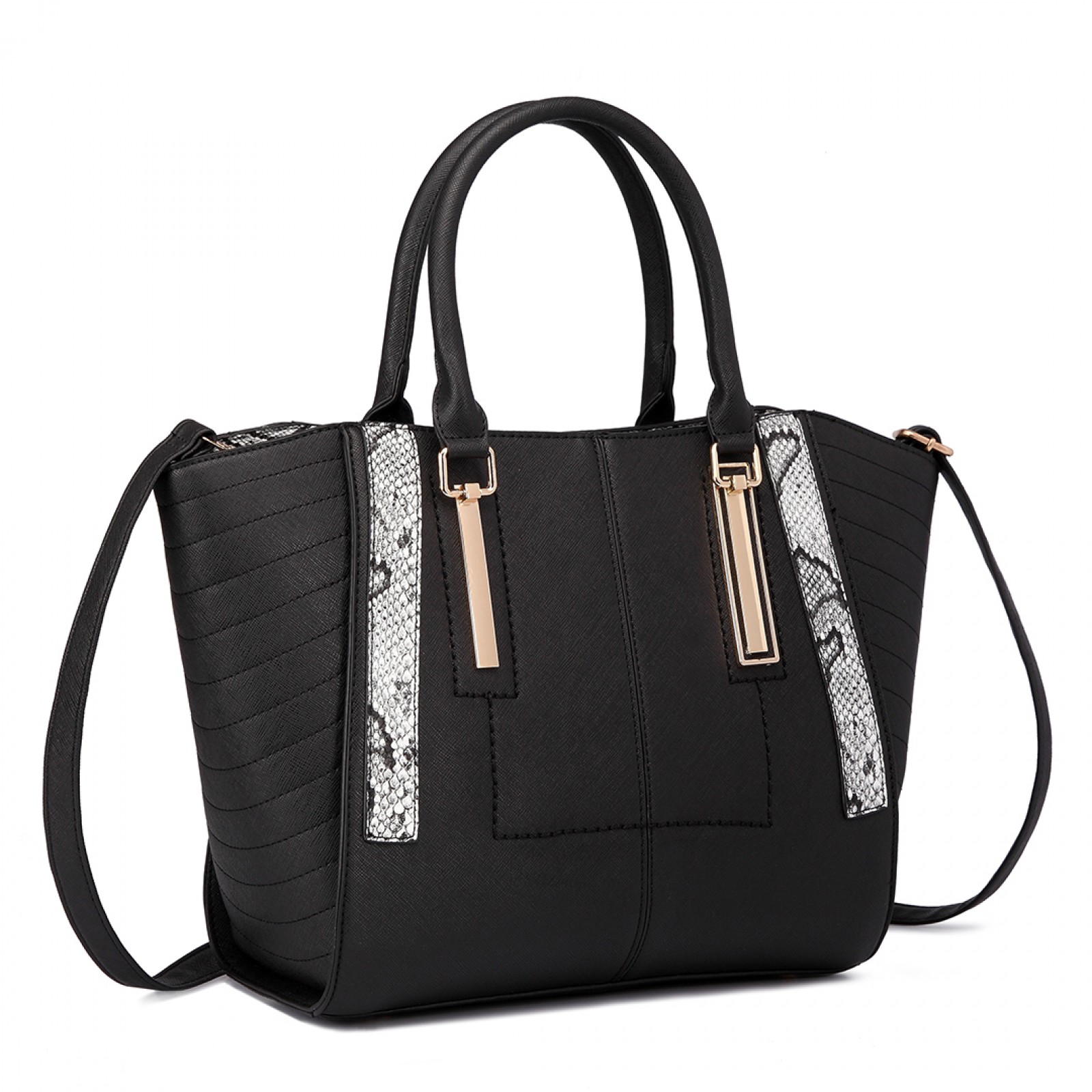 LT1703 - Miss Lulu Snake Skin Stripe Panel Shoulder Bag Black