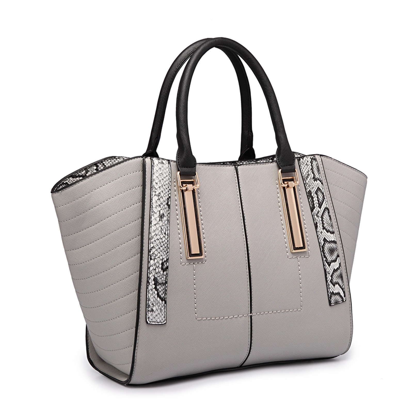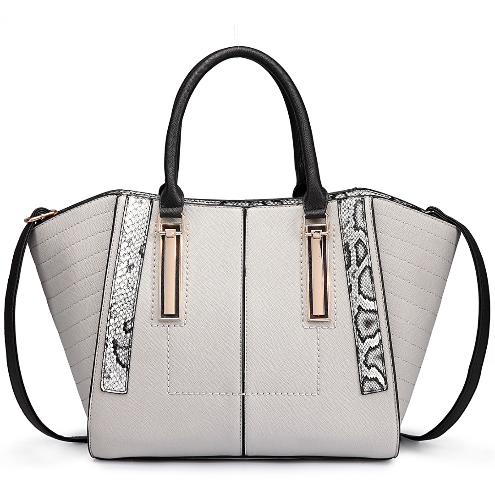 LT1703 - Miss Lulu Snake Skin Stripe Panel Shoulder Bag Grey