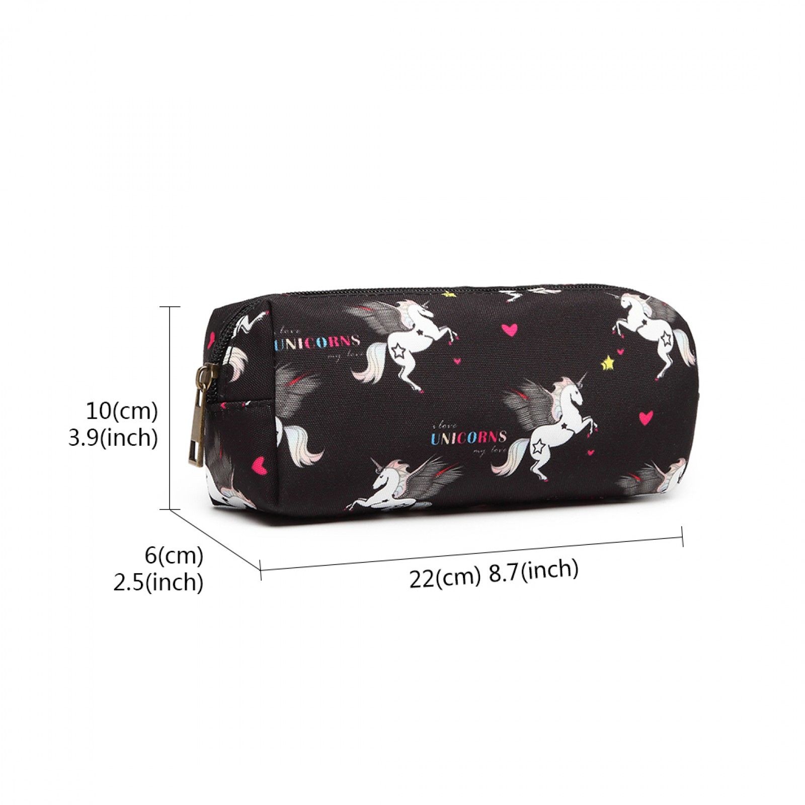 PC-UN - MISS LULU UNICORN CANVAS PENCIL CASE - BLACK
