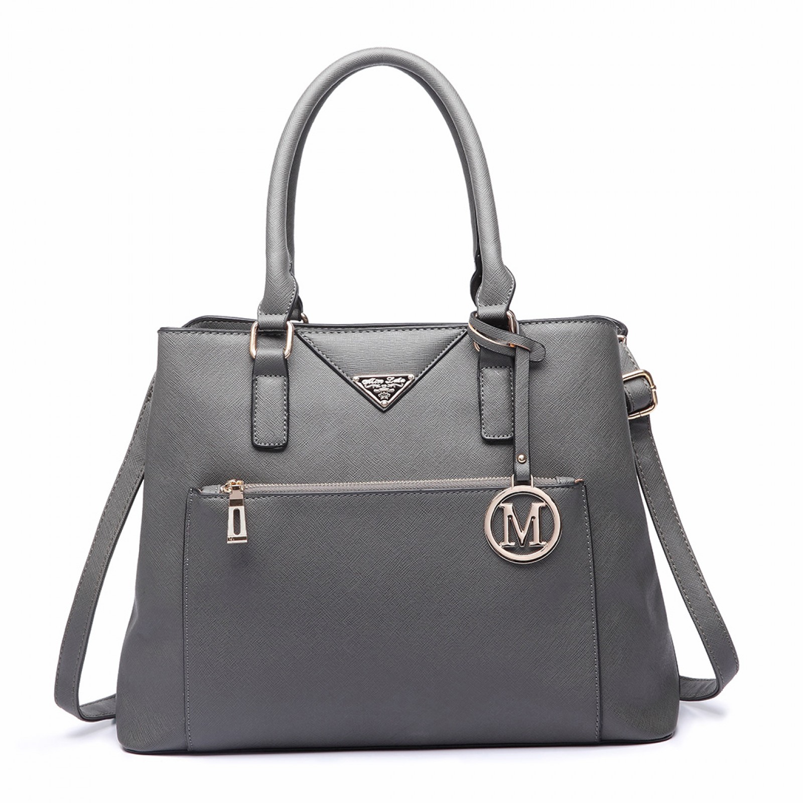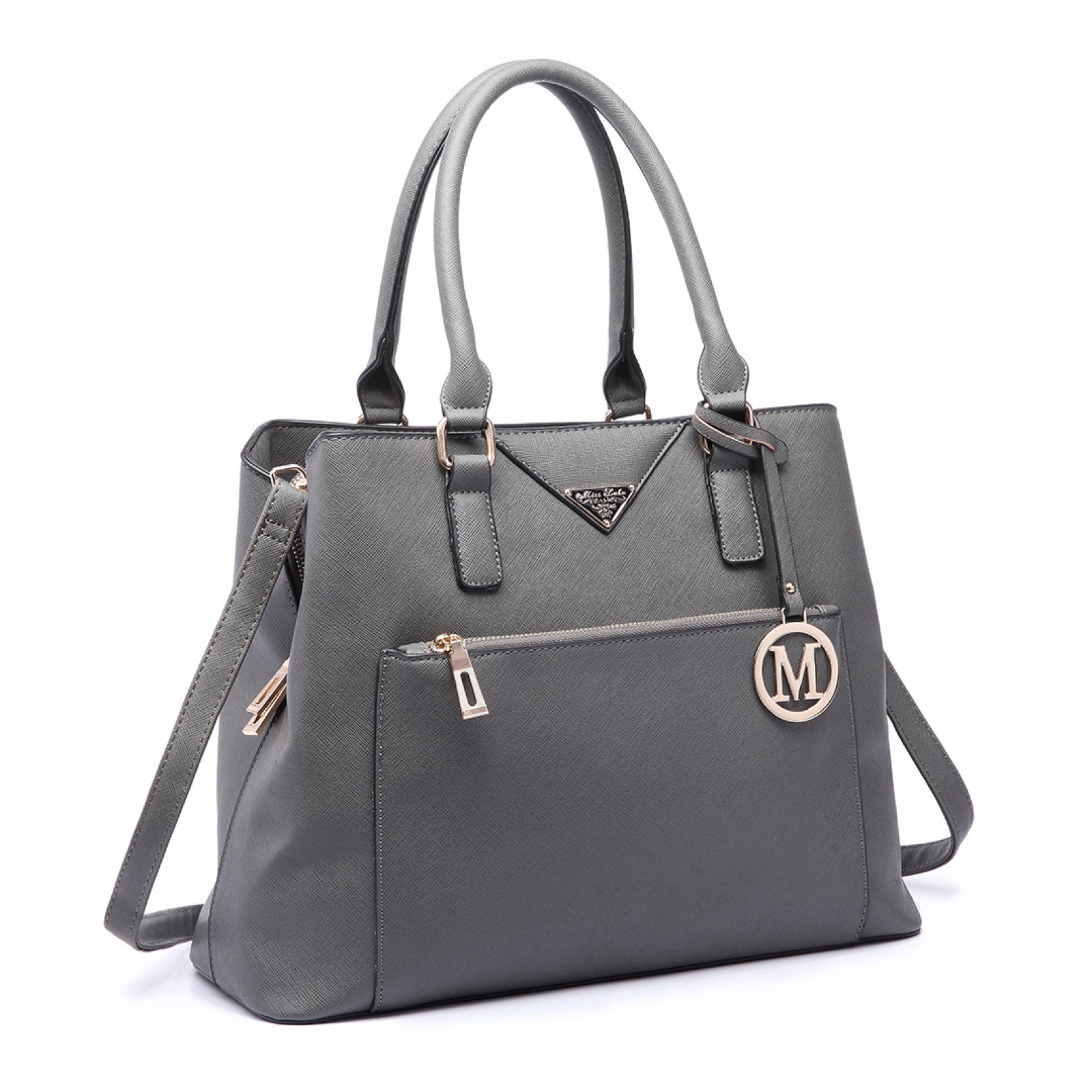 LT6611 - Miss Lulu Front Pocket Multi Compartment Briefcase Shoulder Bag Grey