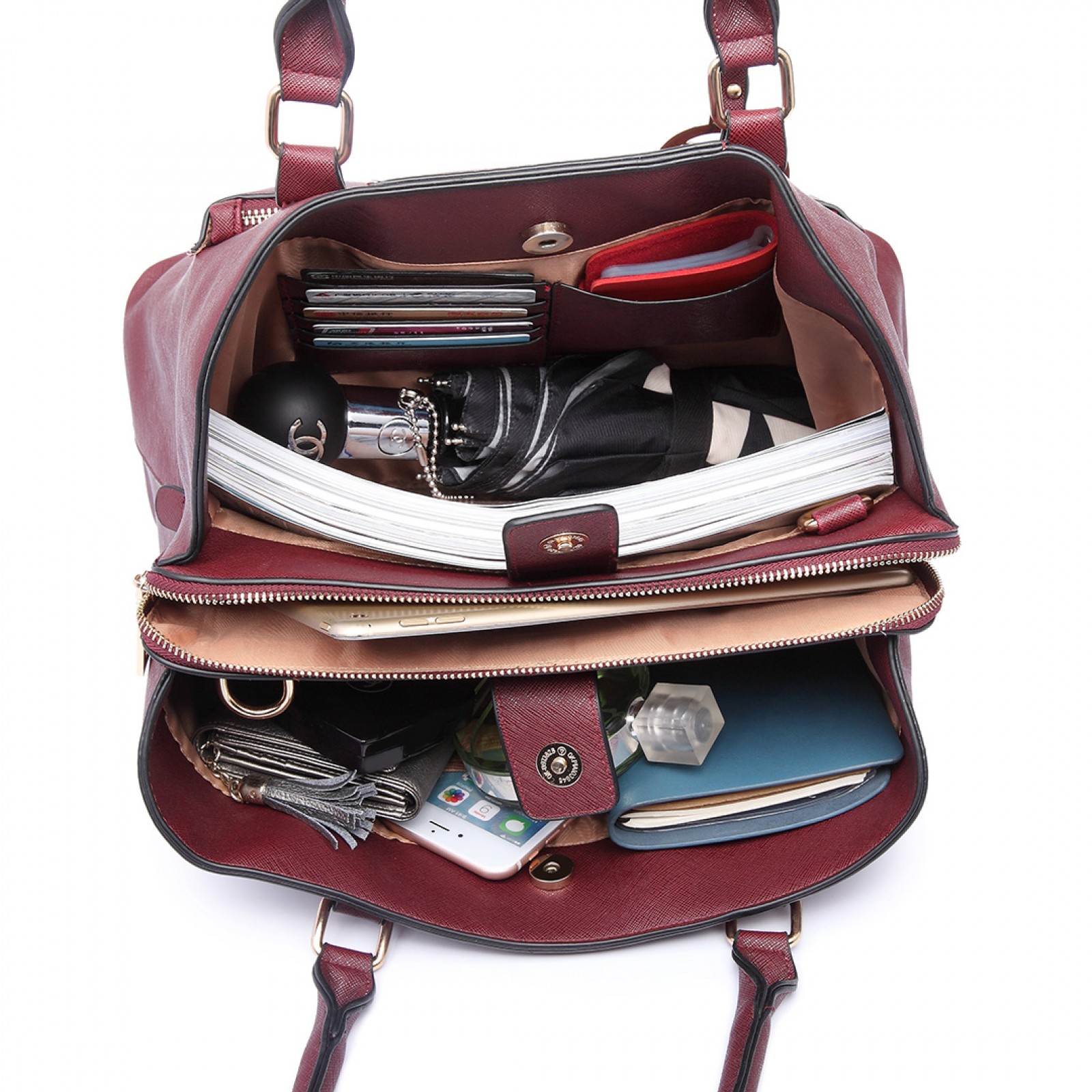 LT6611 - Miss Lulu Front Pocket Multi Compartment Briefcase Shoulder Bag Red