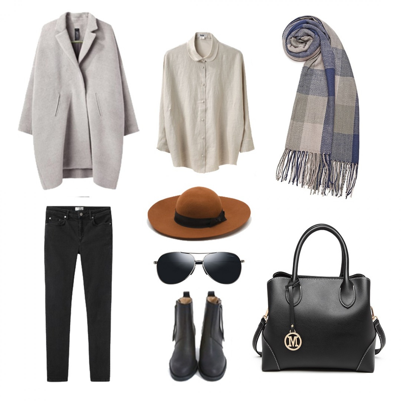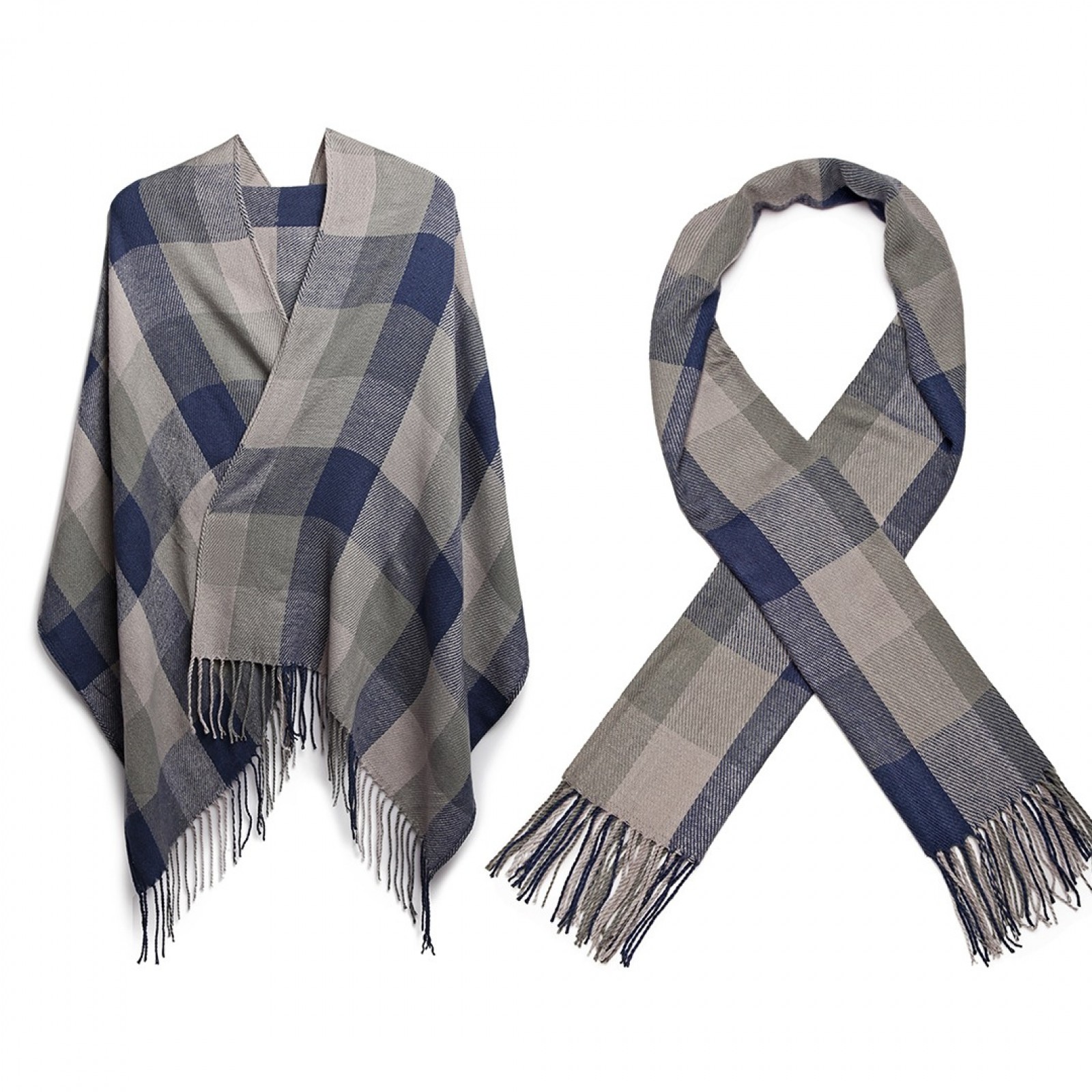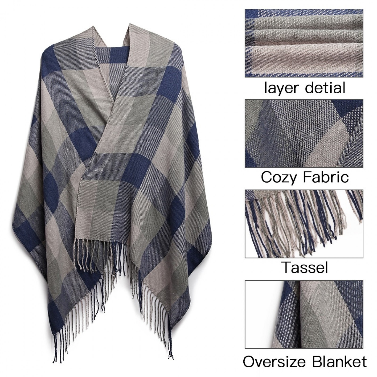 S6430 - Women Fashion Long Shawl Grid Tassel Winter Warm Lattice Large Scarf - Grey