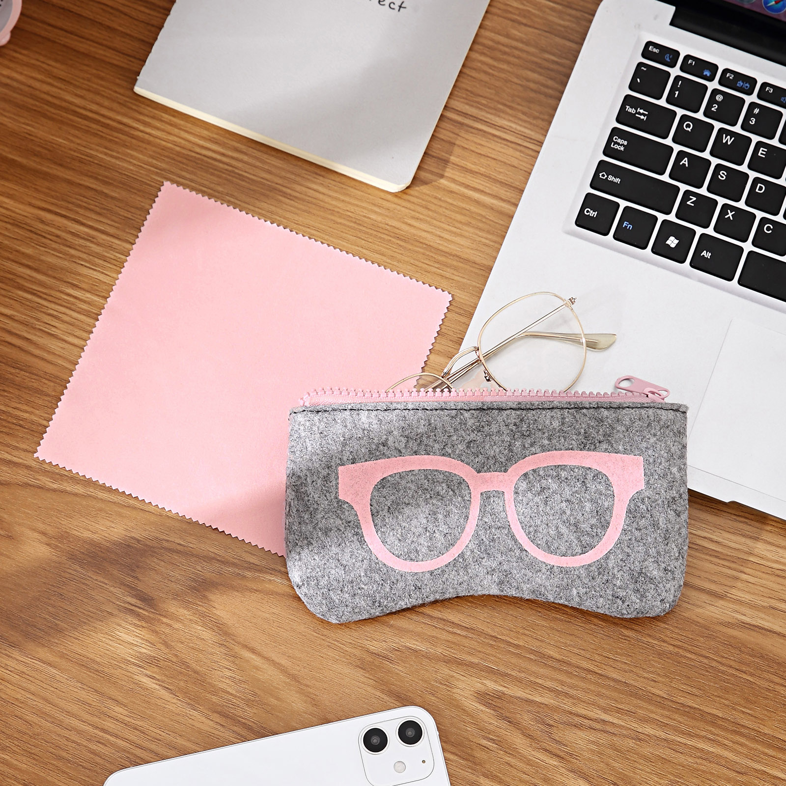 EB2065 - Soft Felt Glasses Case - Grey And Pink