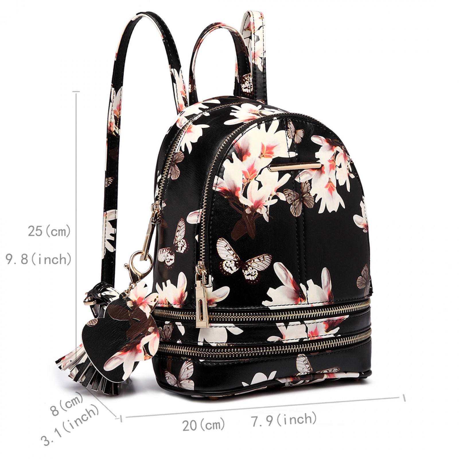 LT1707 - Miss Lulu Leather Look Small Fashion Floral Backpack Black