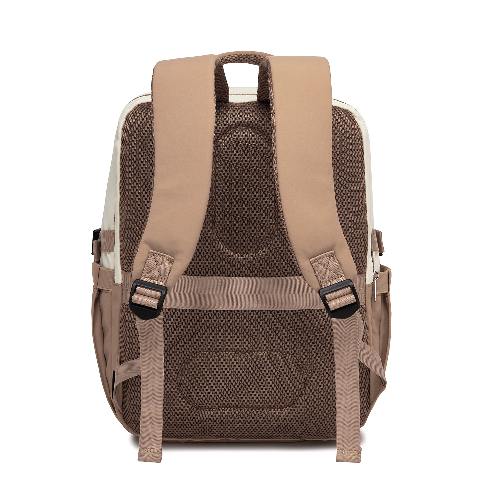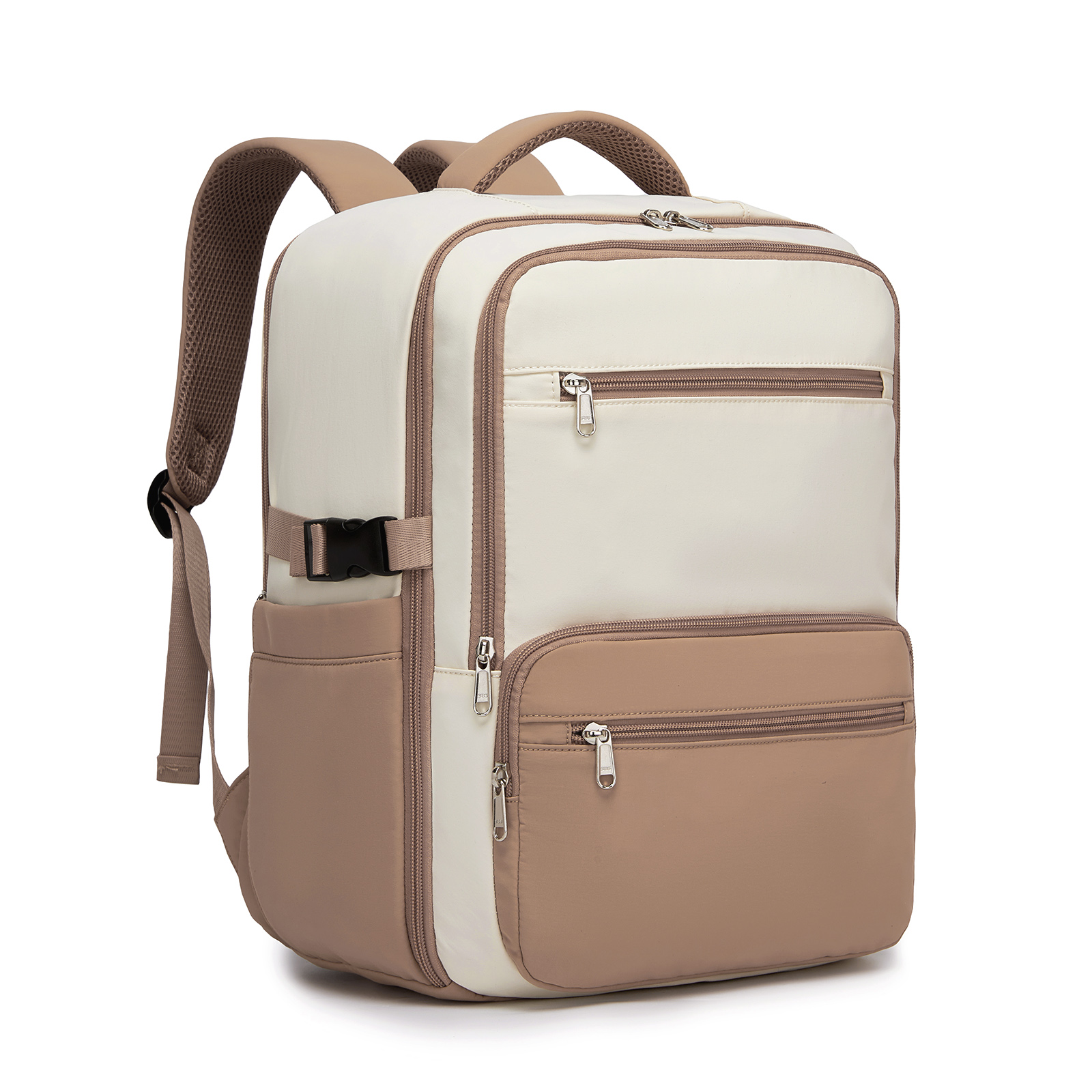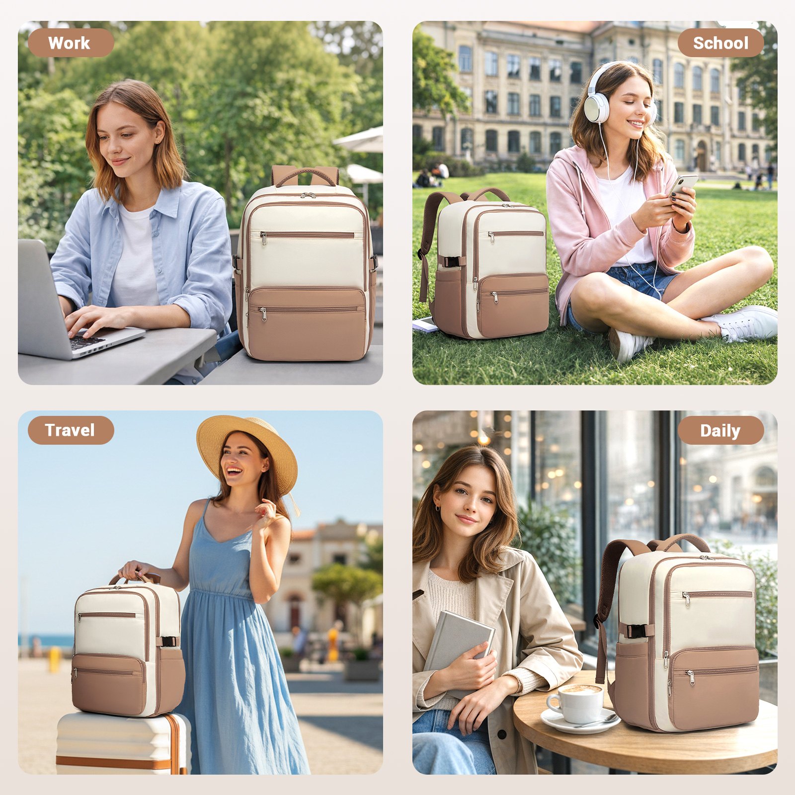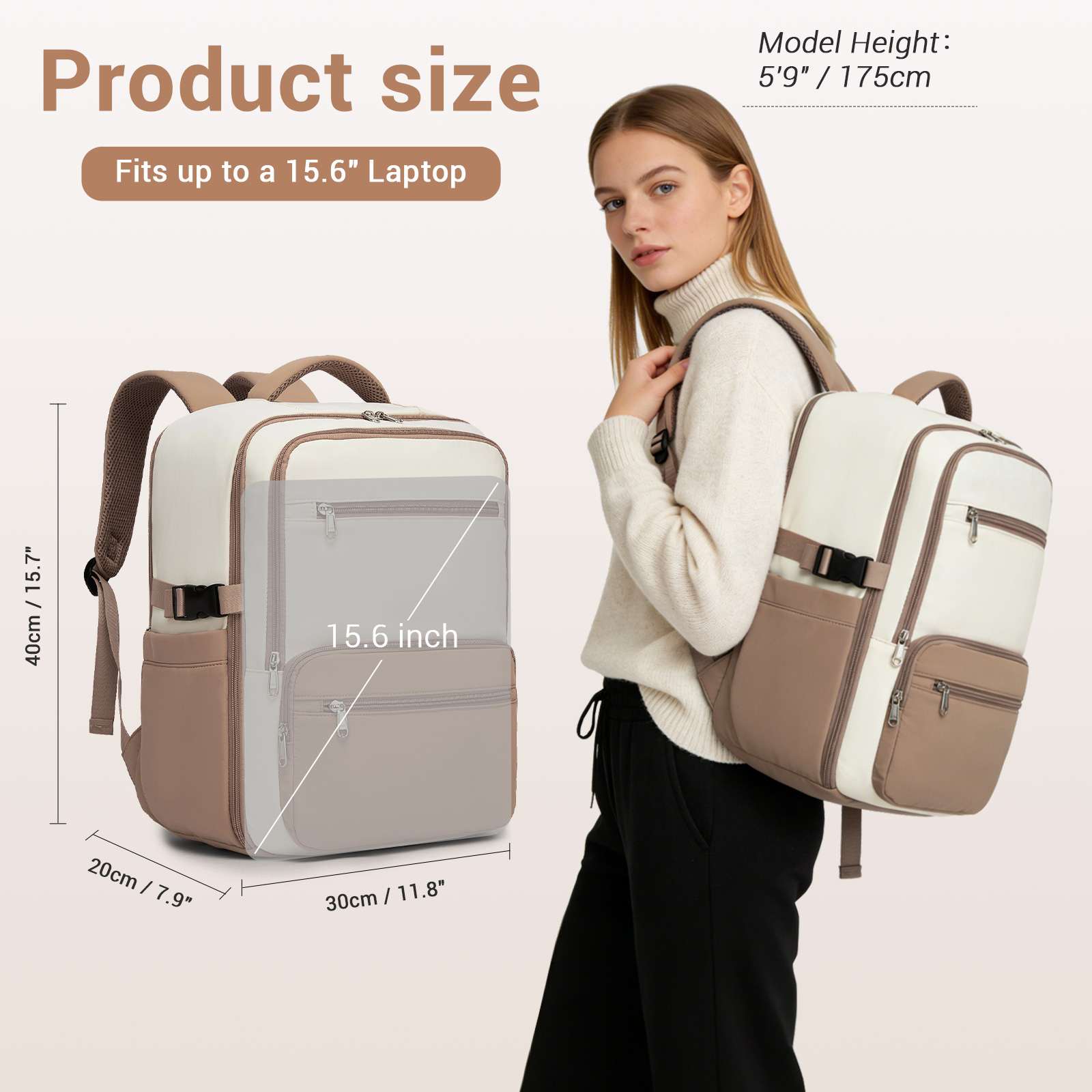 BPK2529 - Kono Compact 15.6" Laptop Travel Backpack - 40x30x20cm, Fits Under Seat Storage, with Trolley Sleeve - Beige and Khaki