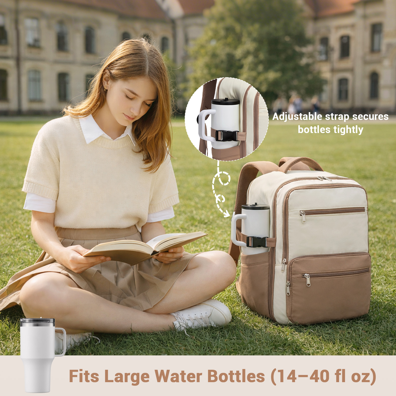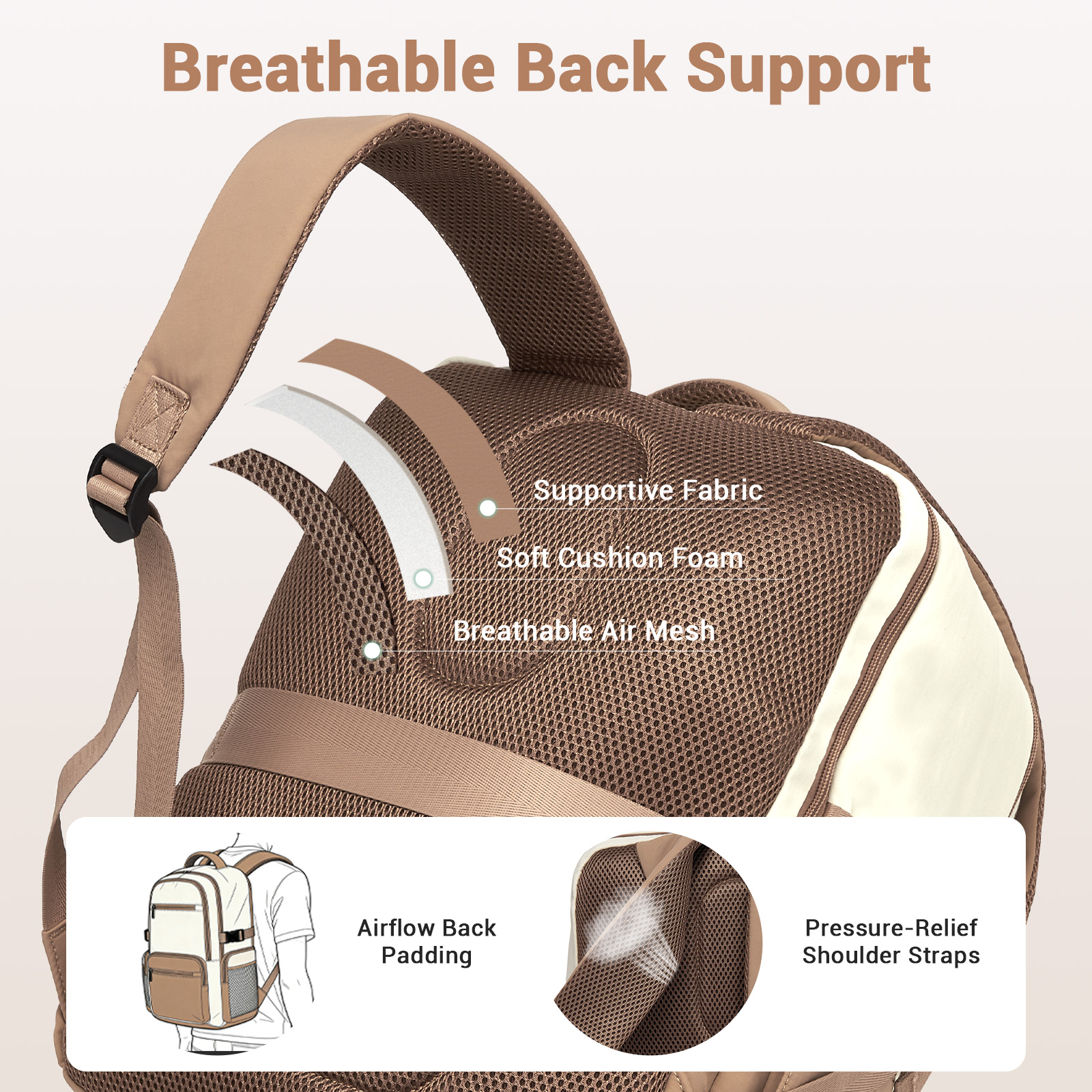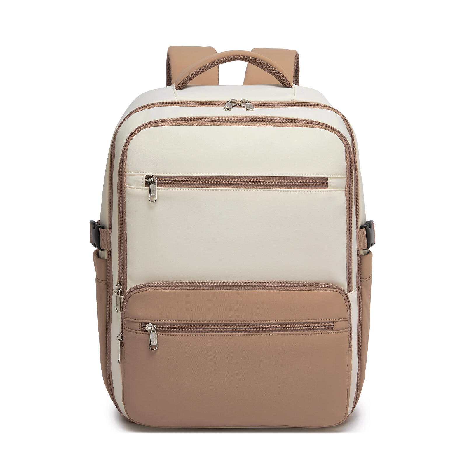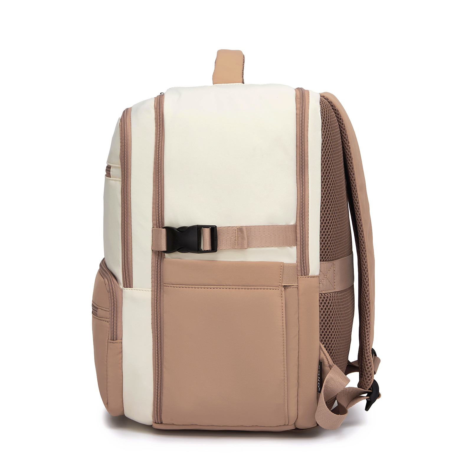 BPK2529 - Kono Compact 15.6" Laptop Travel Backpack - 40x30x20cm, Fits Under Seat Storage, with Trolley Sleeve - Beige and Khaki