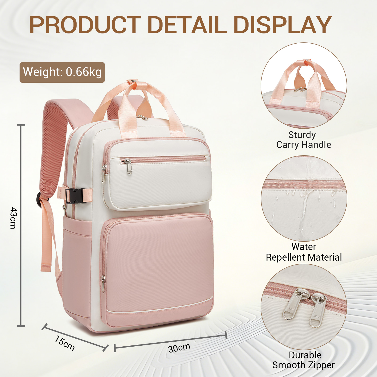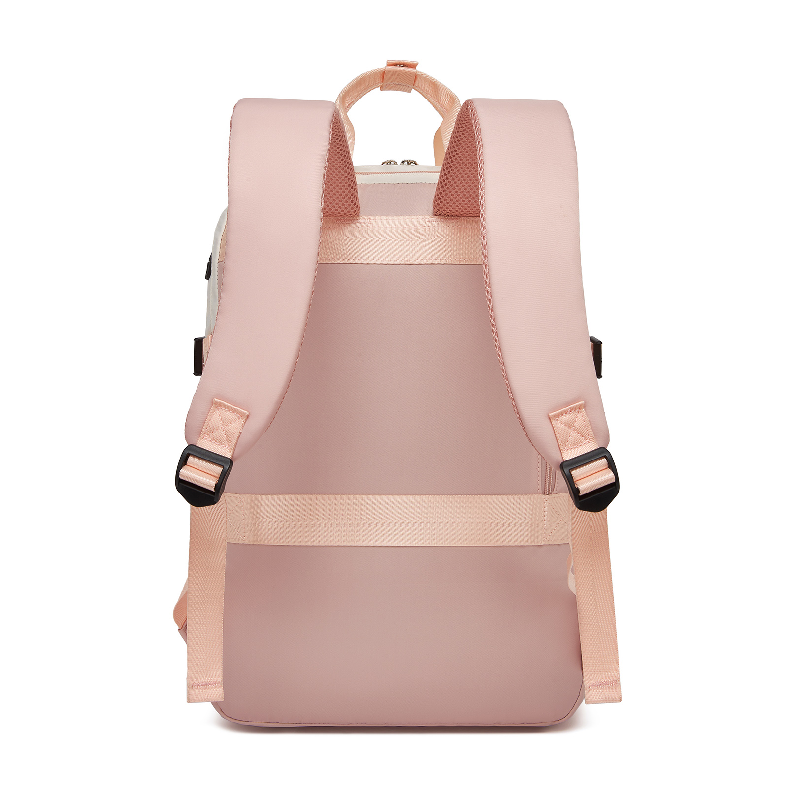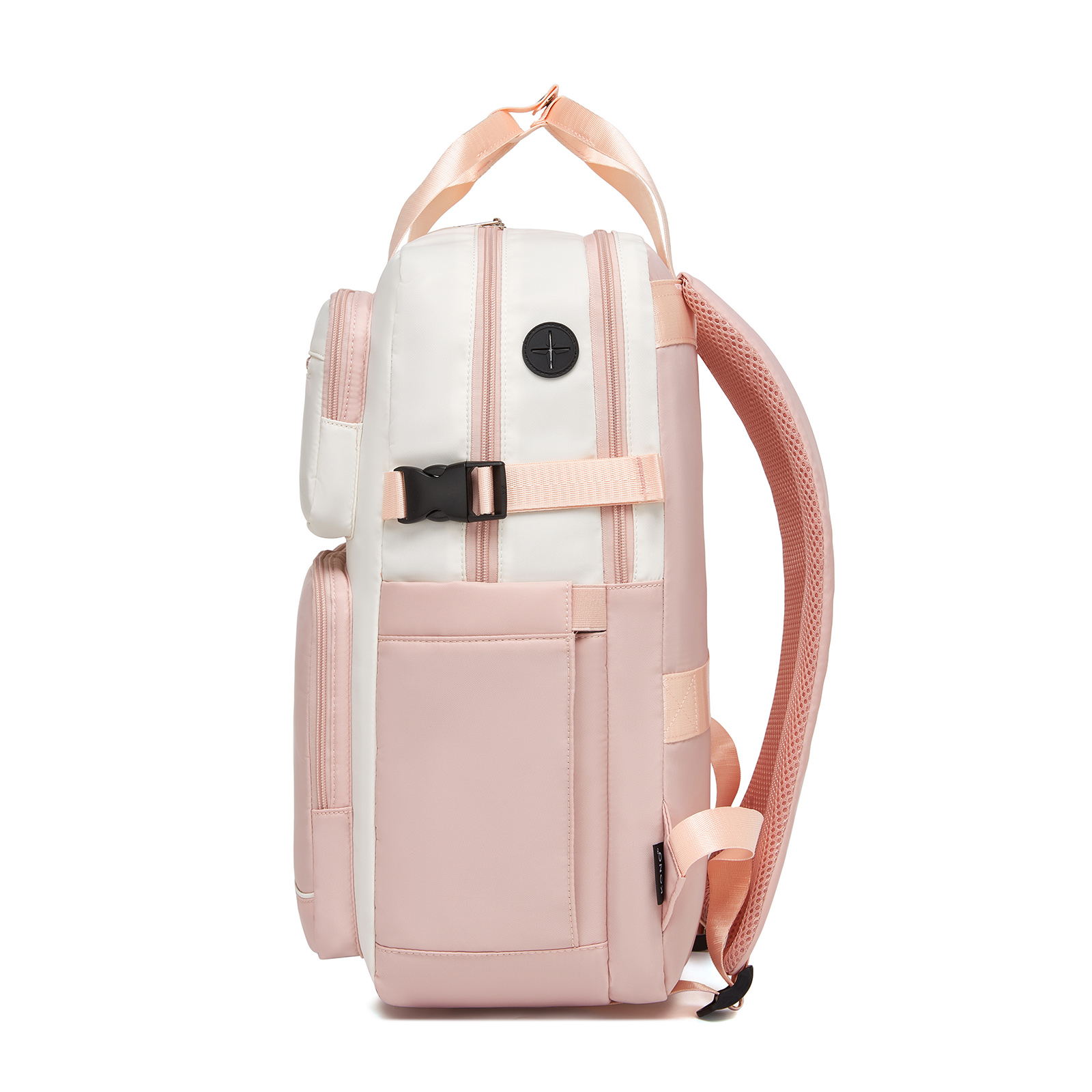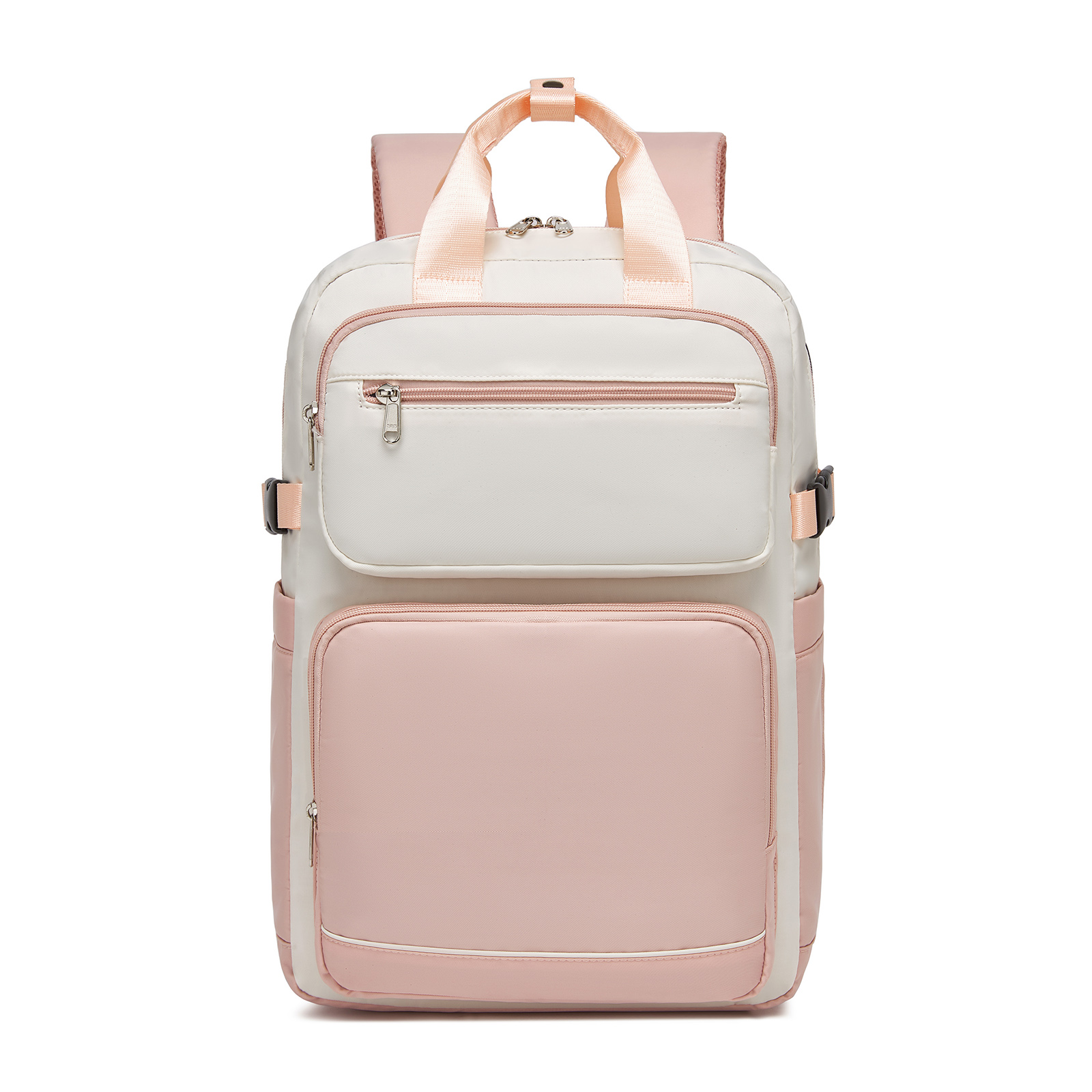 BPK2530 - Kono Spacious Water-Resistant Laptop Backpack for Travel & Commuting - 15.6" Padded Laptop Compartment, Reflective Strip - Beige and Pink