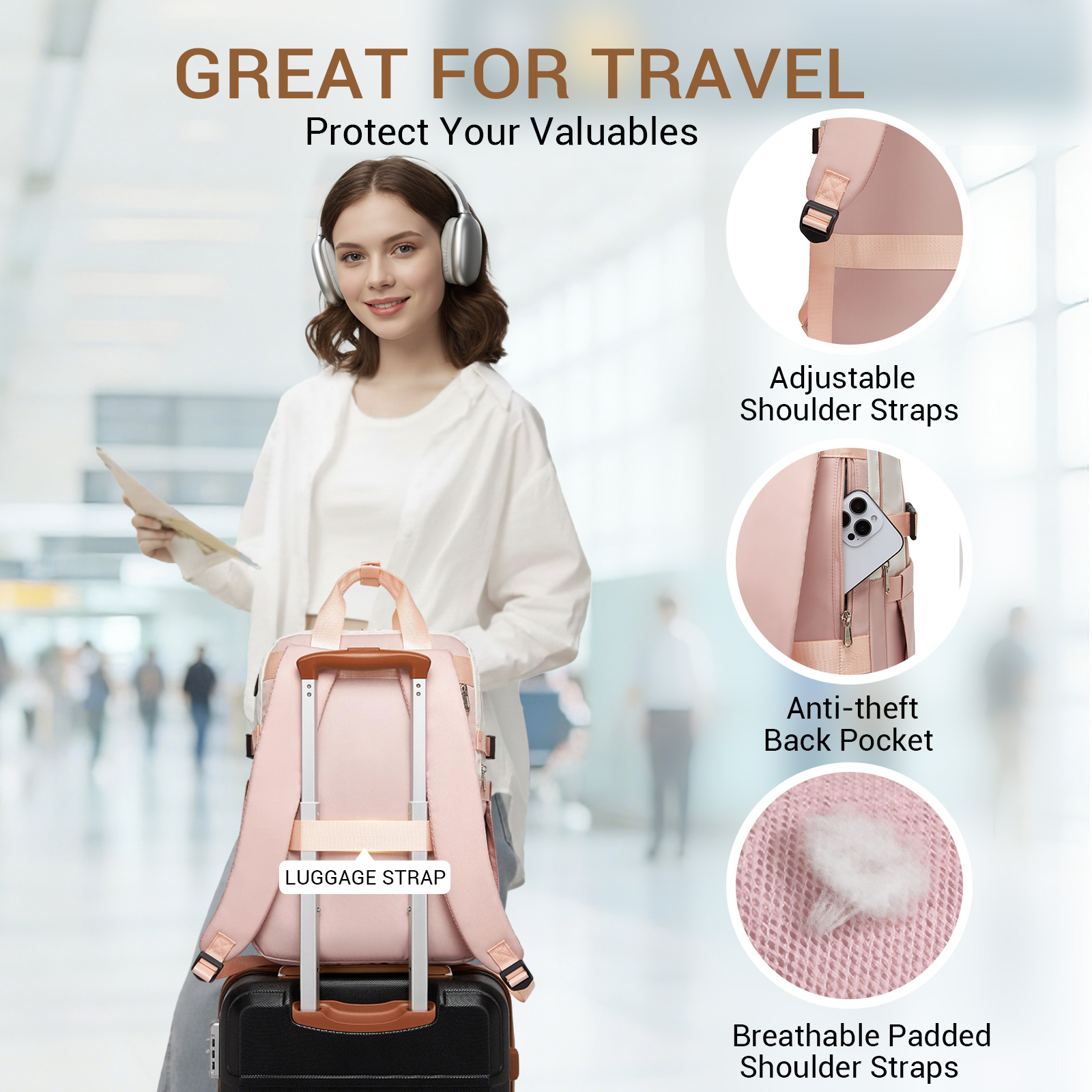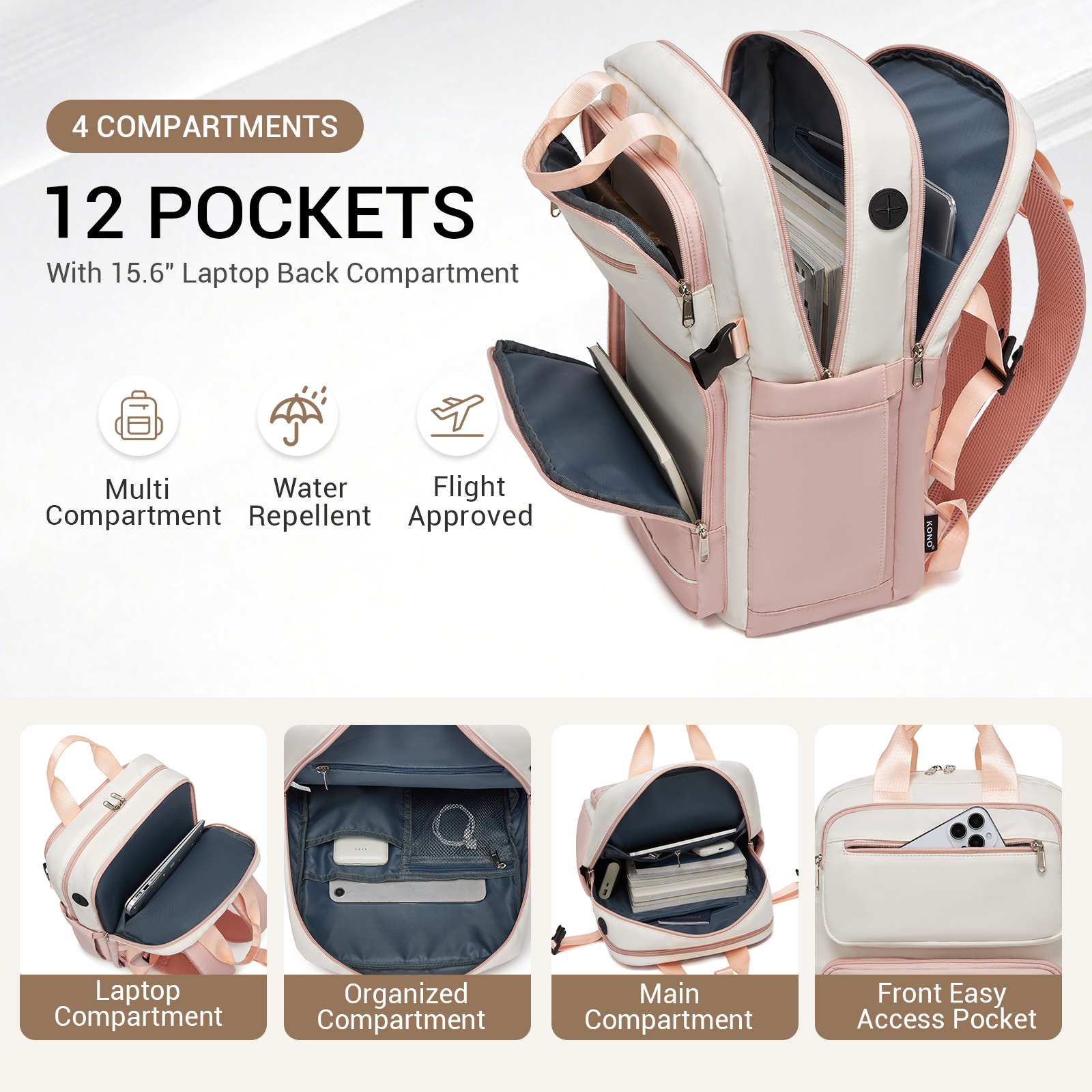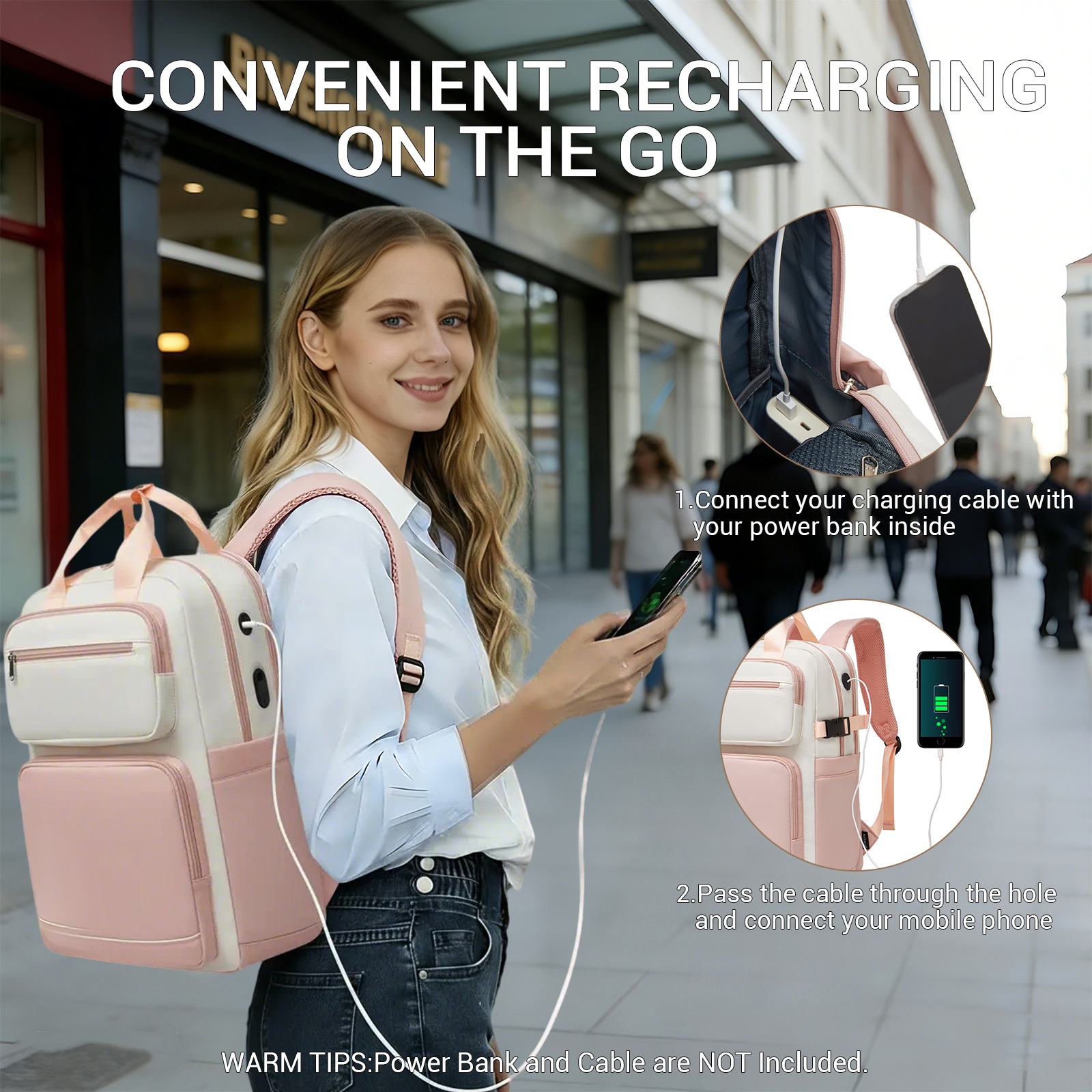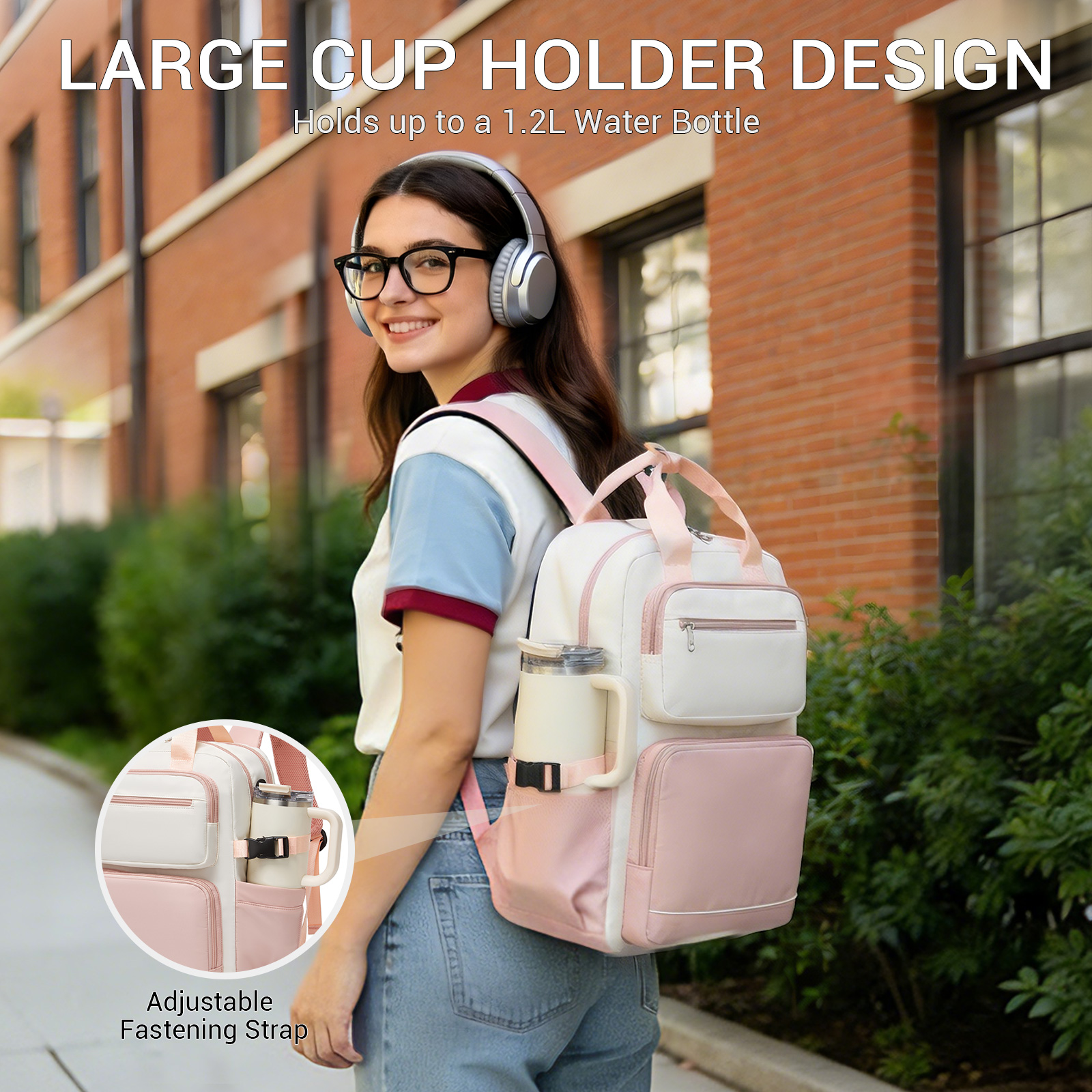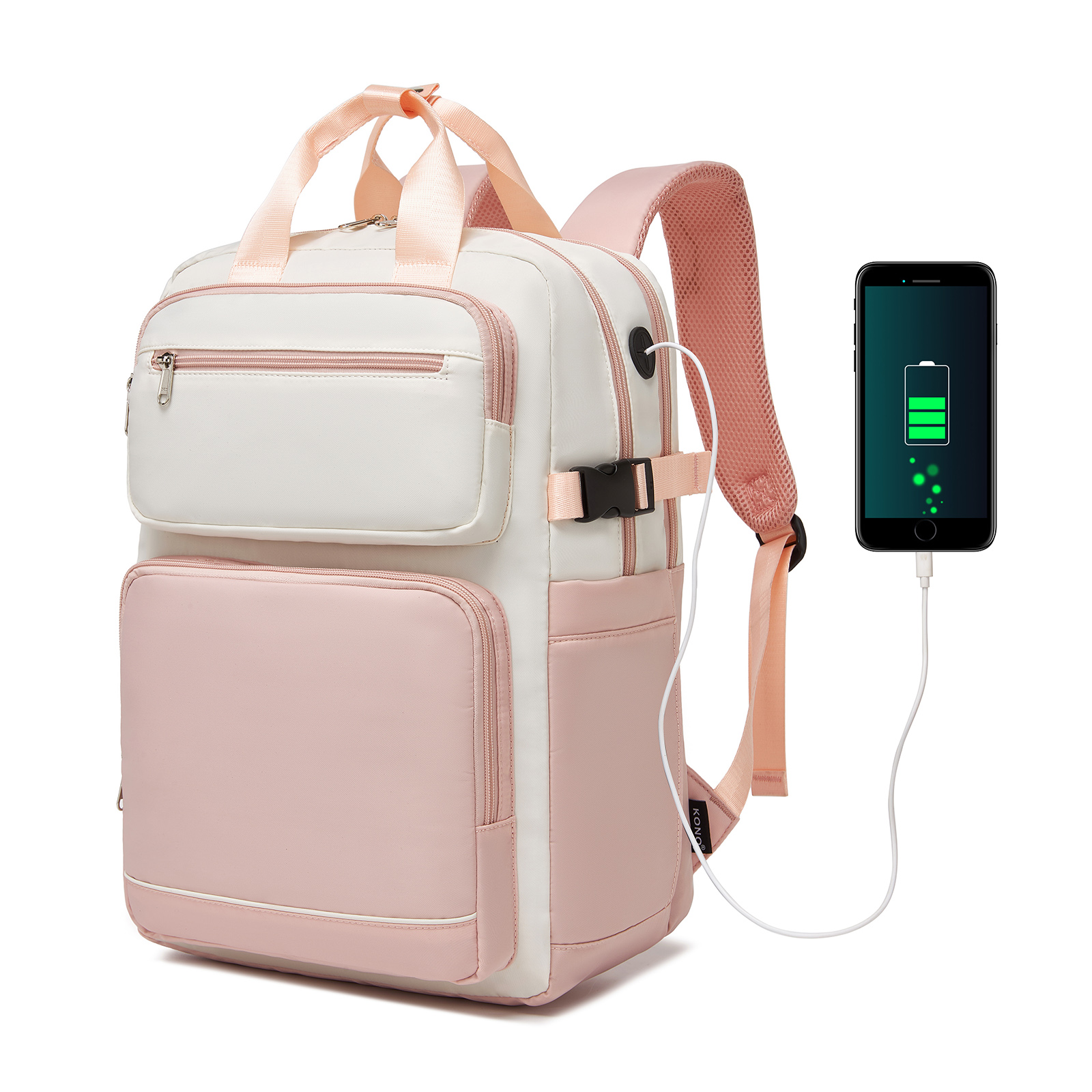 BPK2530 - Kono Spacious Water-Resistant Laptop Backpack for Travel & Commuting - 15.6" Padded Laptop Compartment, Reflective Strip - Beige and Pink