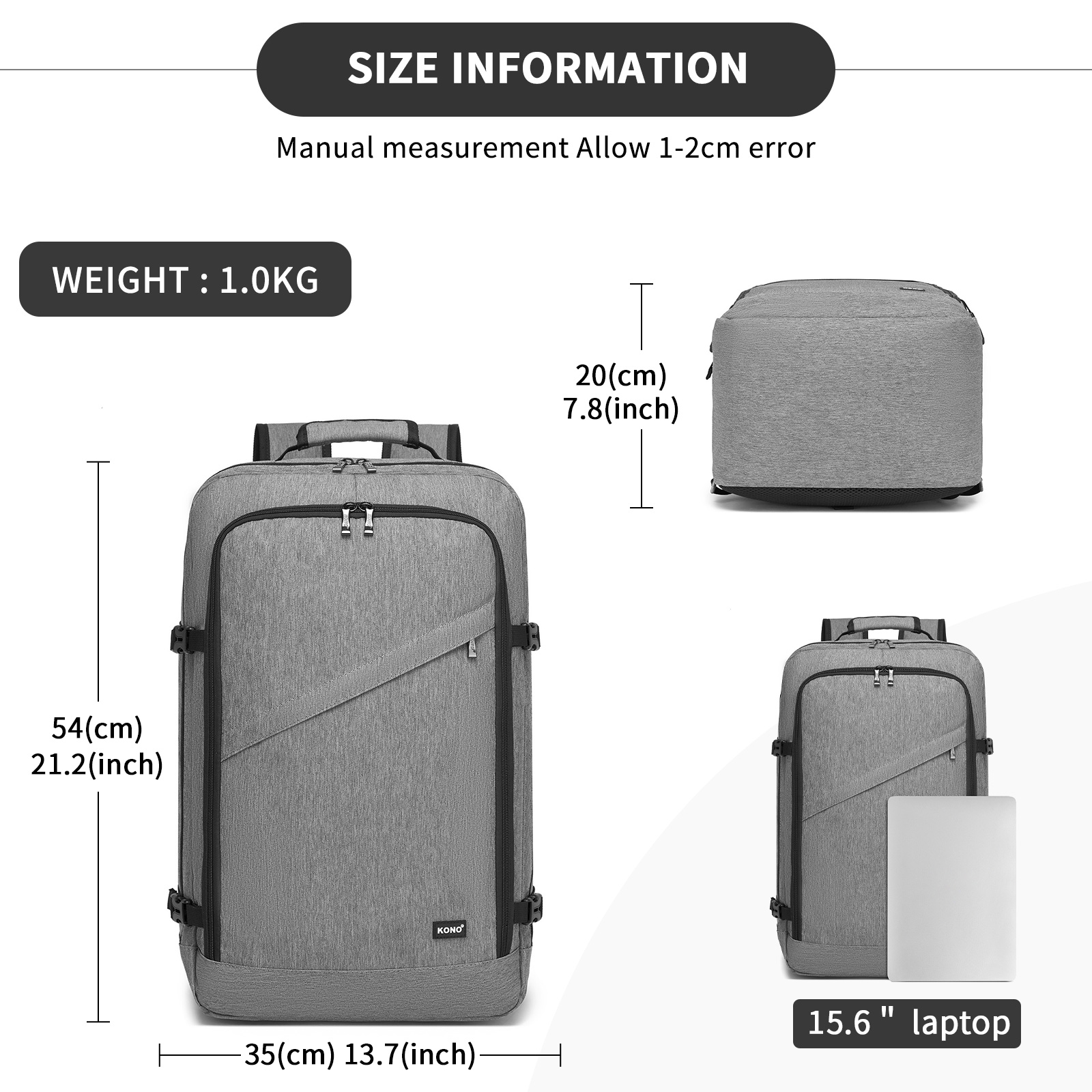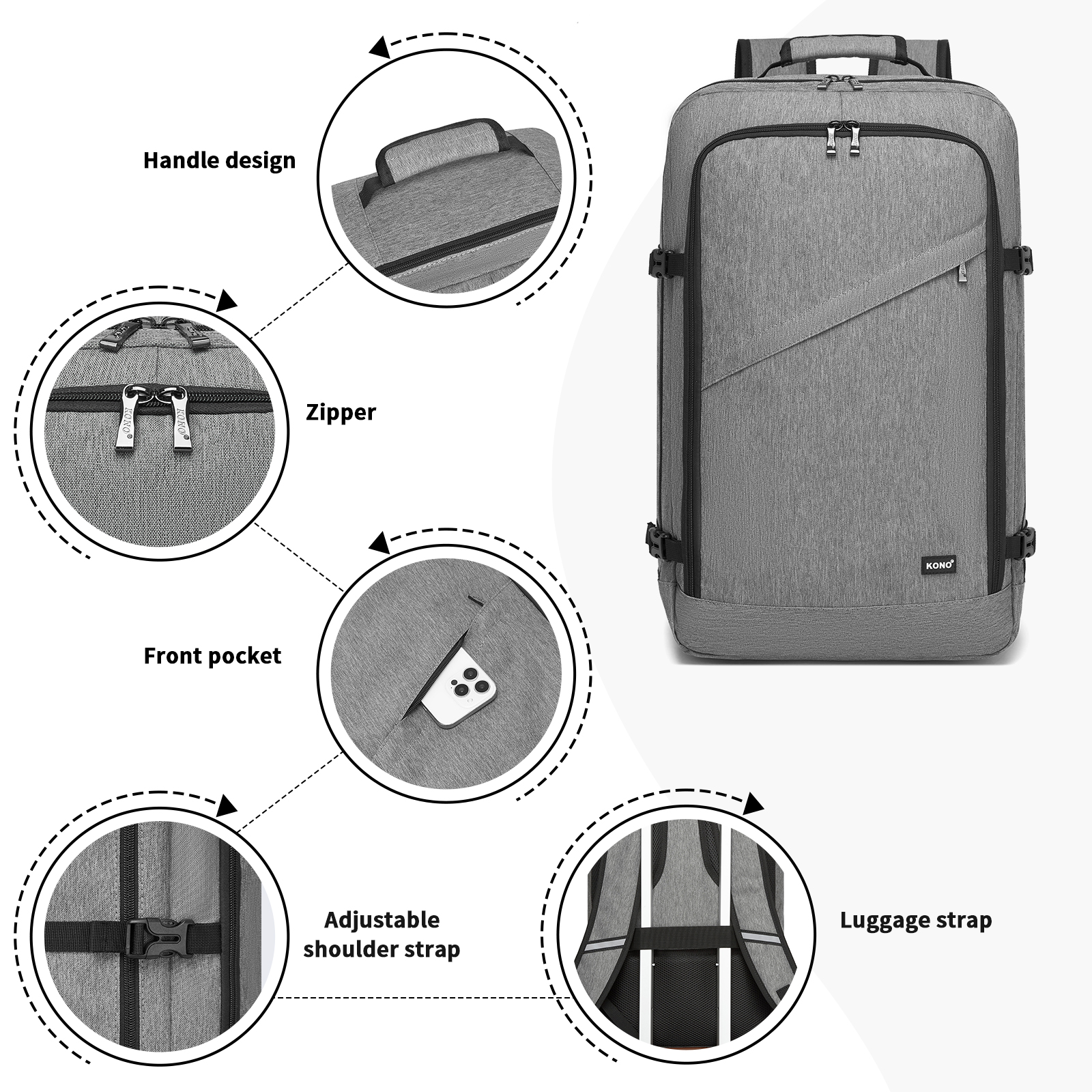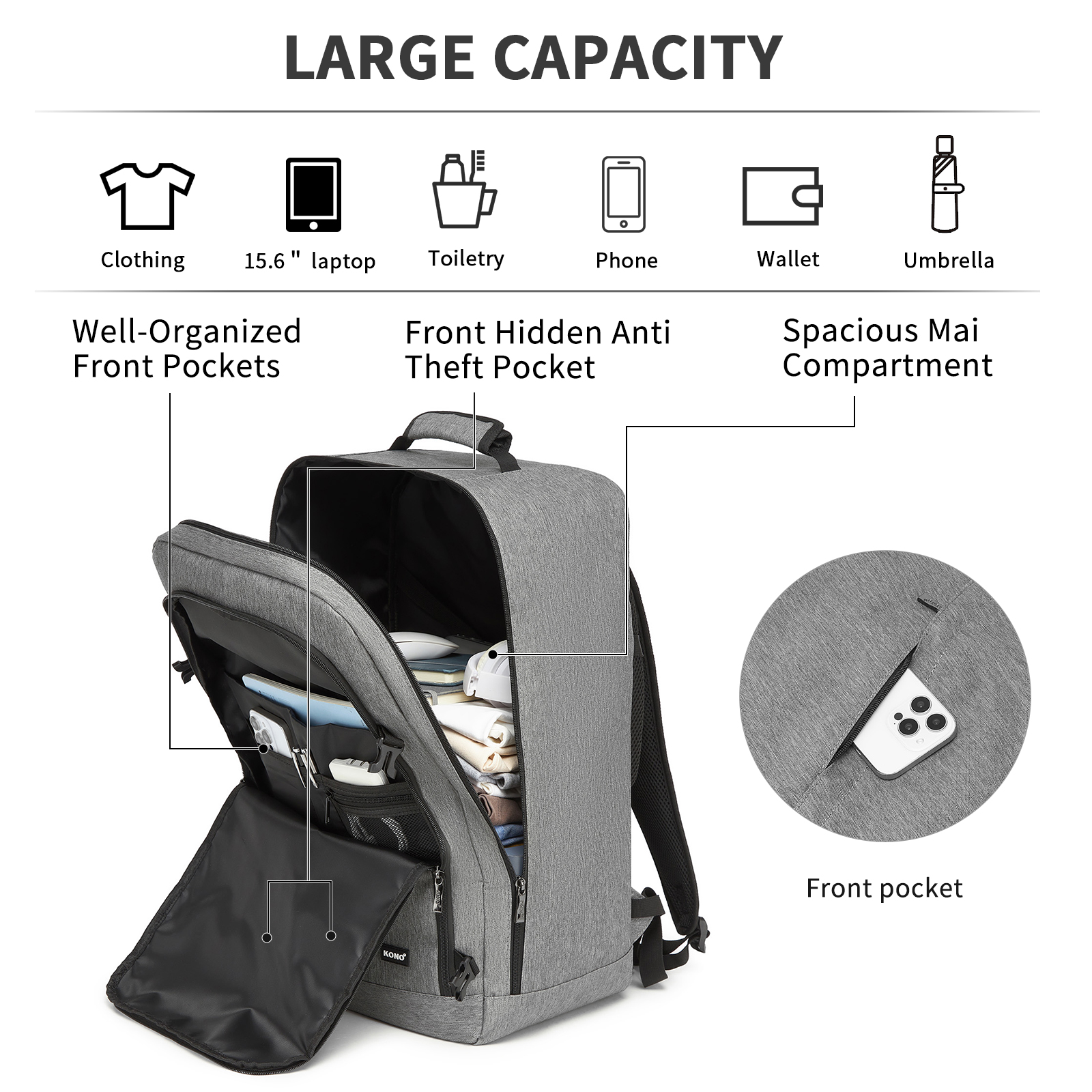 BPK2531L - Kono Multi-purpose Business Large Backpack–Fits 15.6" Laptop, Ideal for Work, Travel & Daily Commute - Grey