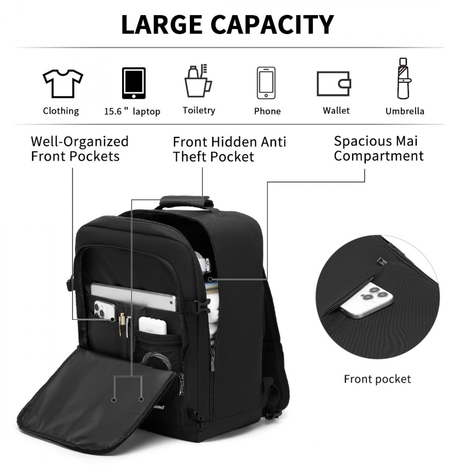 BPK2531M - Kono Multi-purpose Business Medium-sized Backpack–Fits 15.6" Laptop, Ideal for Work, Travel & Daily Commute - Black