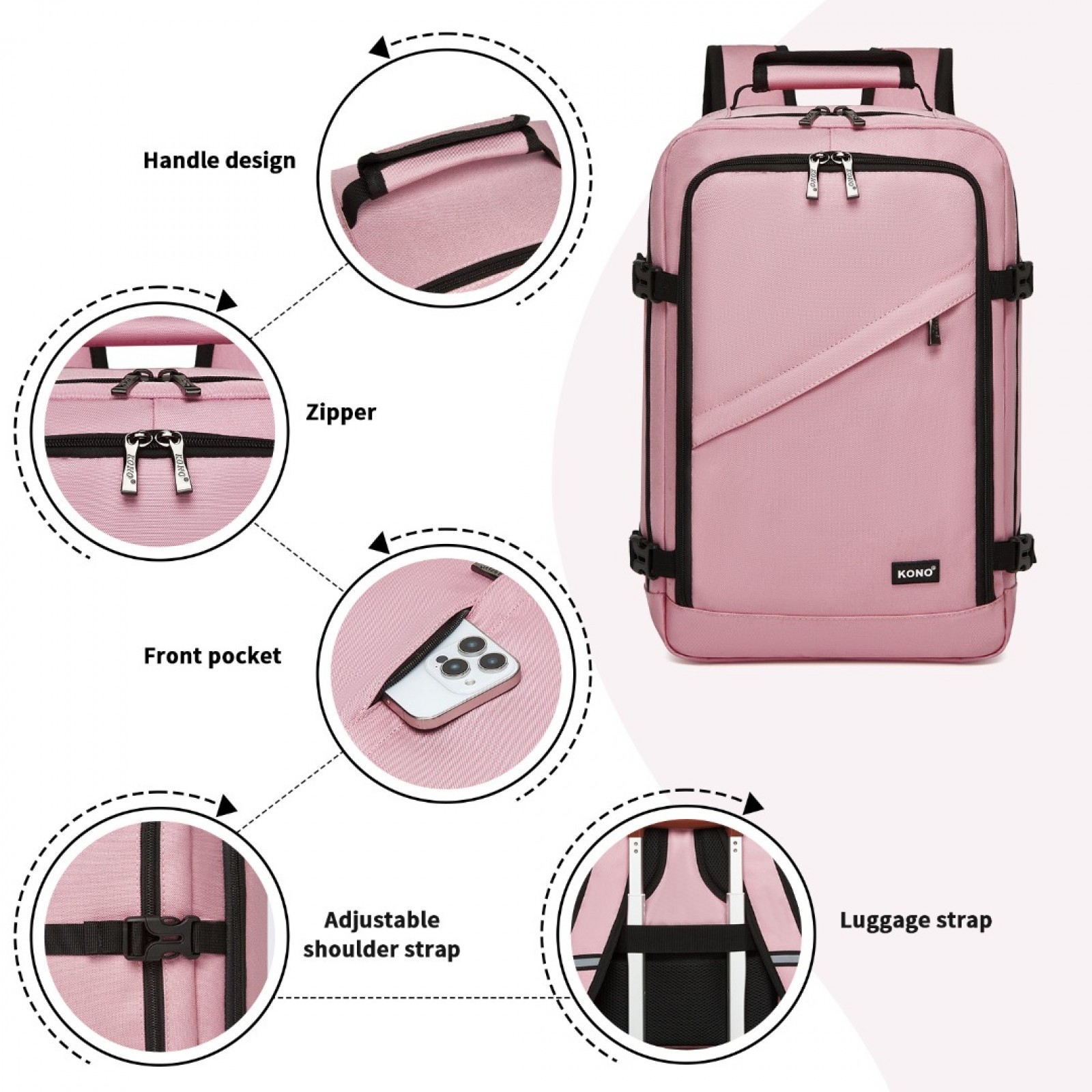 BPK2531S - Kono Multi-purpose Business Carry-On Backpack–Fits 15.6" Laptop, Ideal for Work, Travel & Daily Commute - Pink