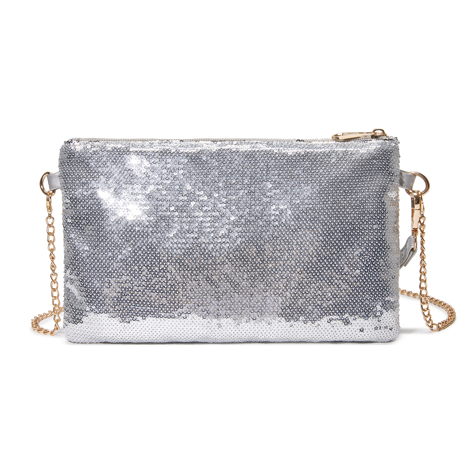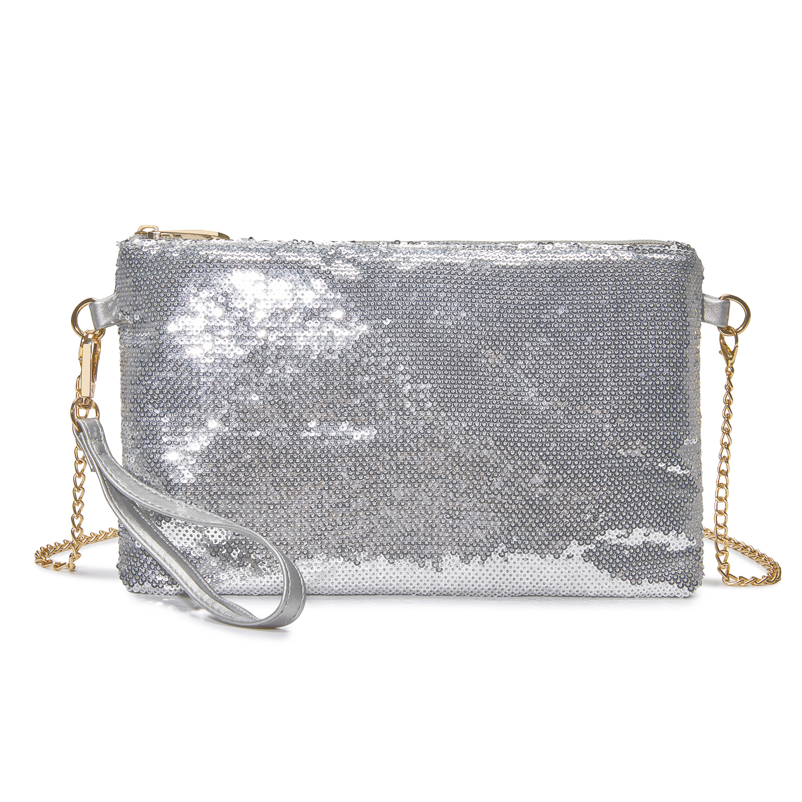 CLS2512 - Glam Sparkle Sequin Evening Clutch-Sleek, Shimmering Wristlet & Crossbody - Silver