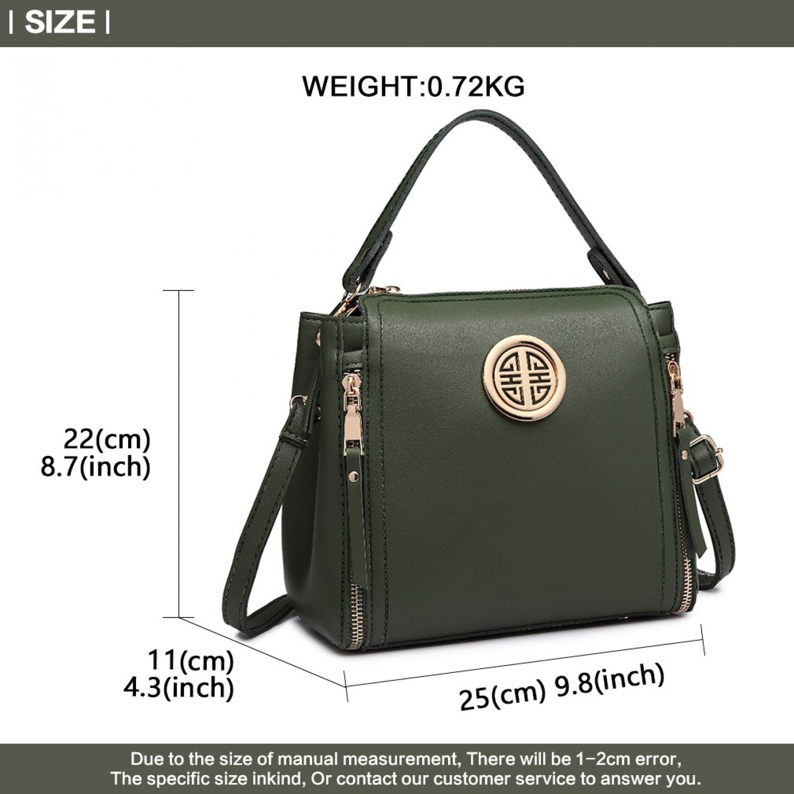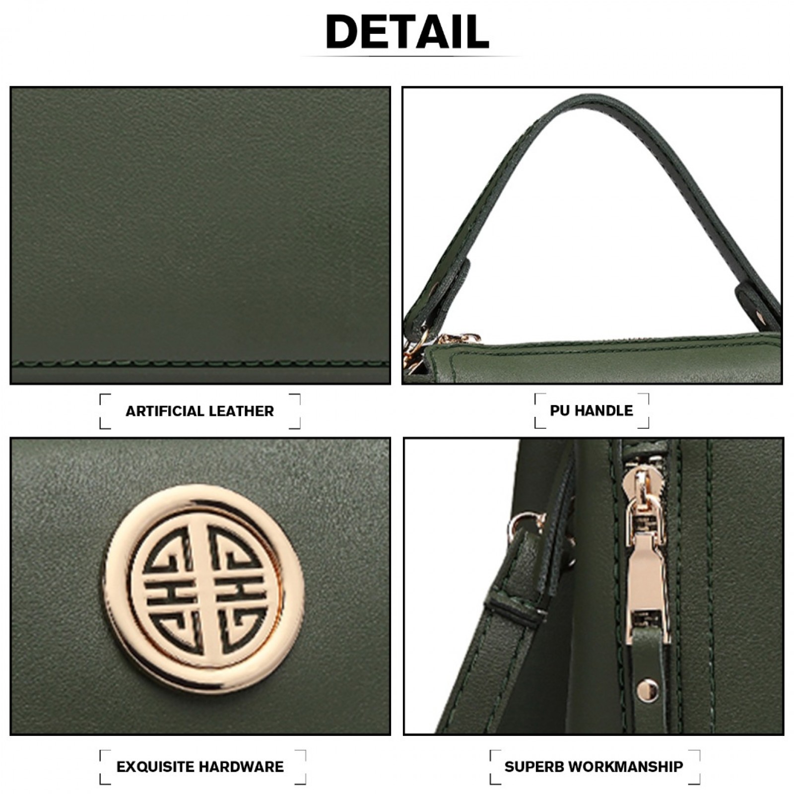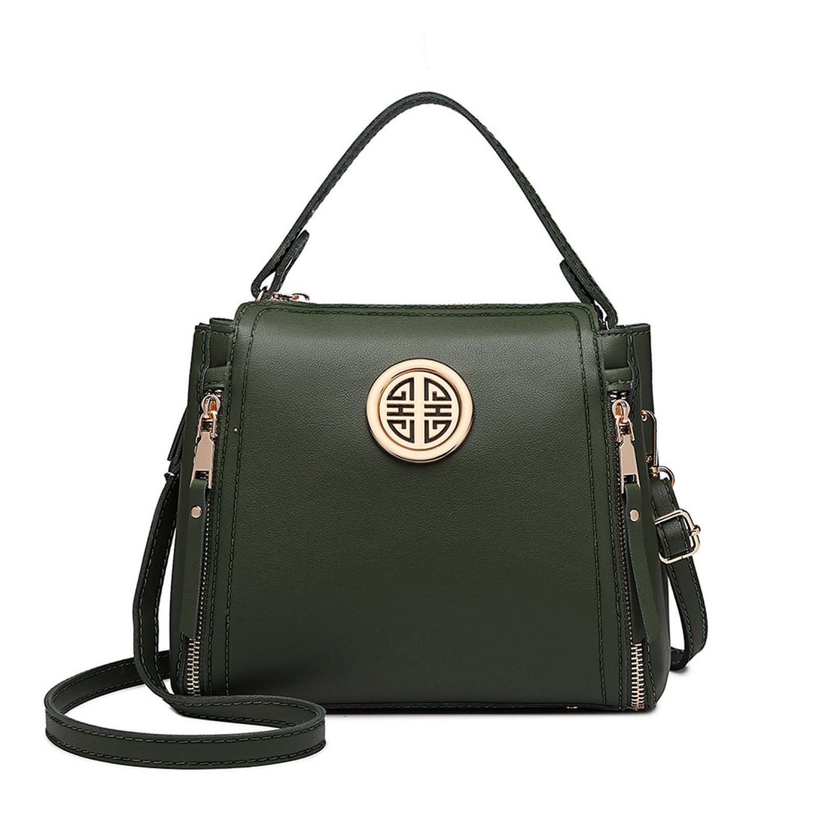 E1851 - Miss Lulu Leather Look Dual Zipped Handbag - Green