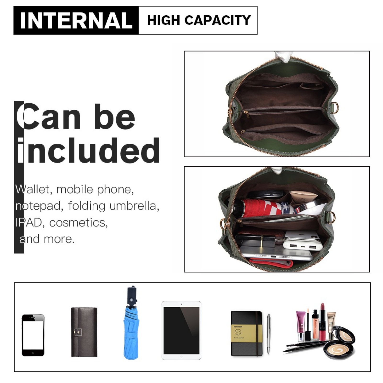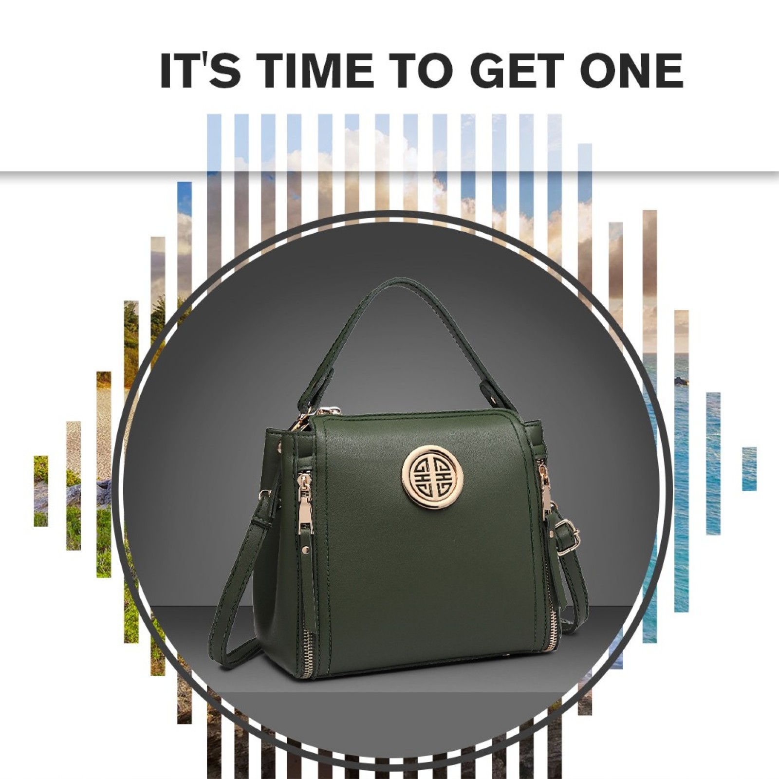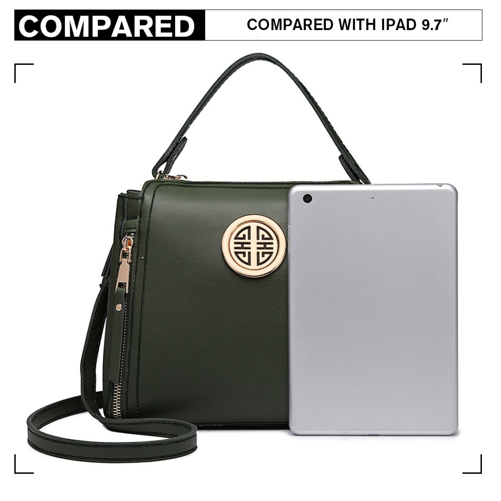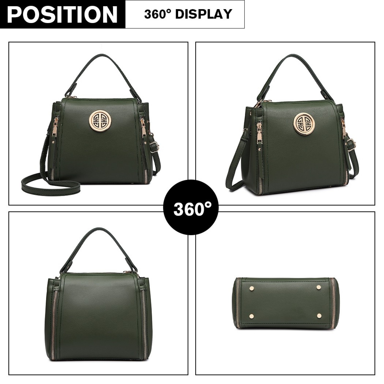 E1851 - Miss Lulu Leather Look Dual Zipped Handbag - Green