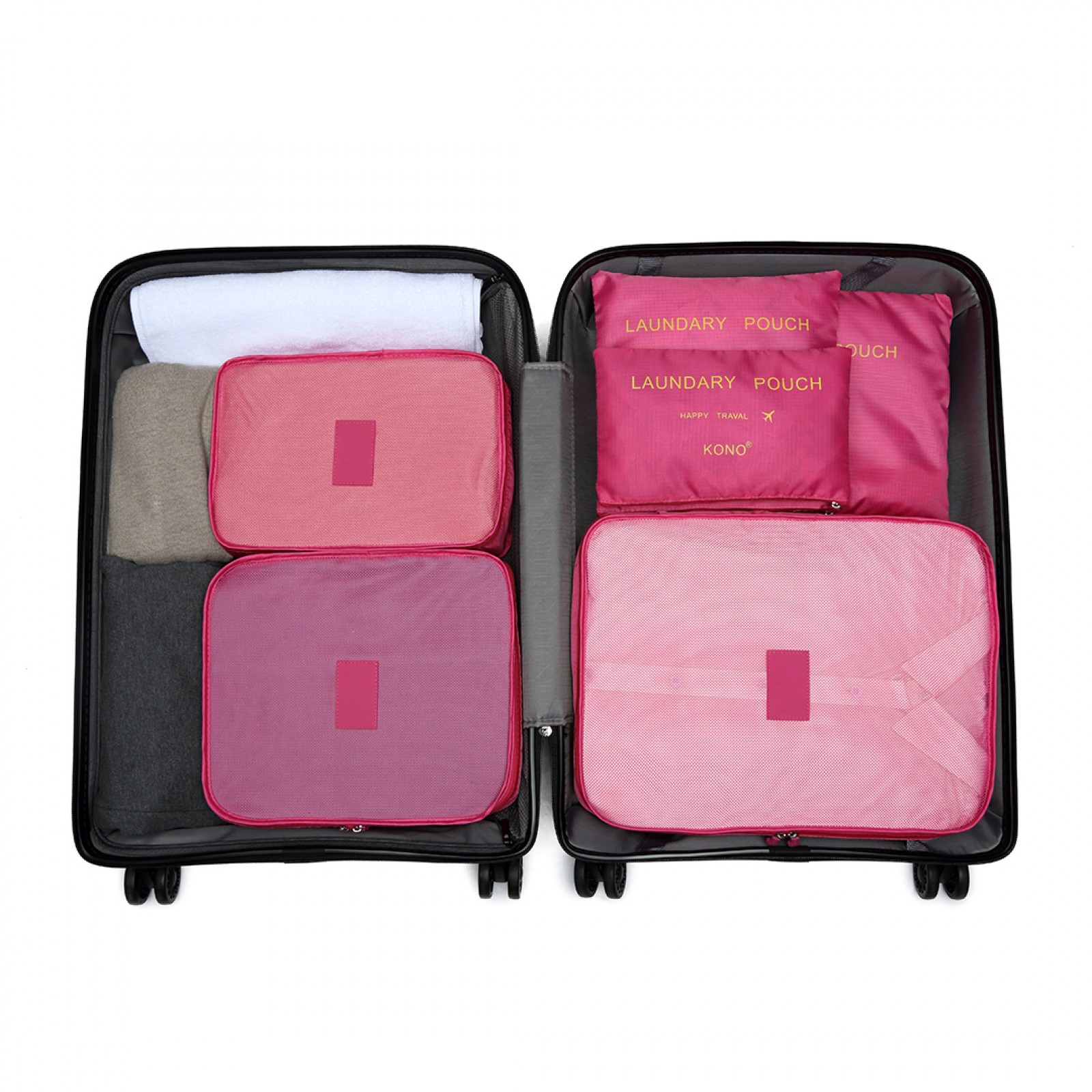 E2015 - Kono 6 Piece Polyester Travel Luggage Organiser Bag Set - Plum