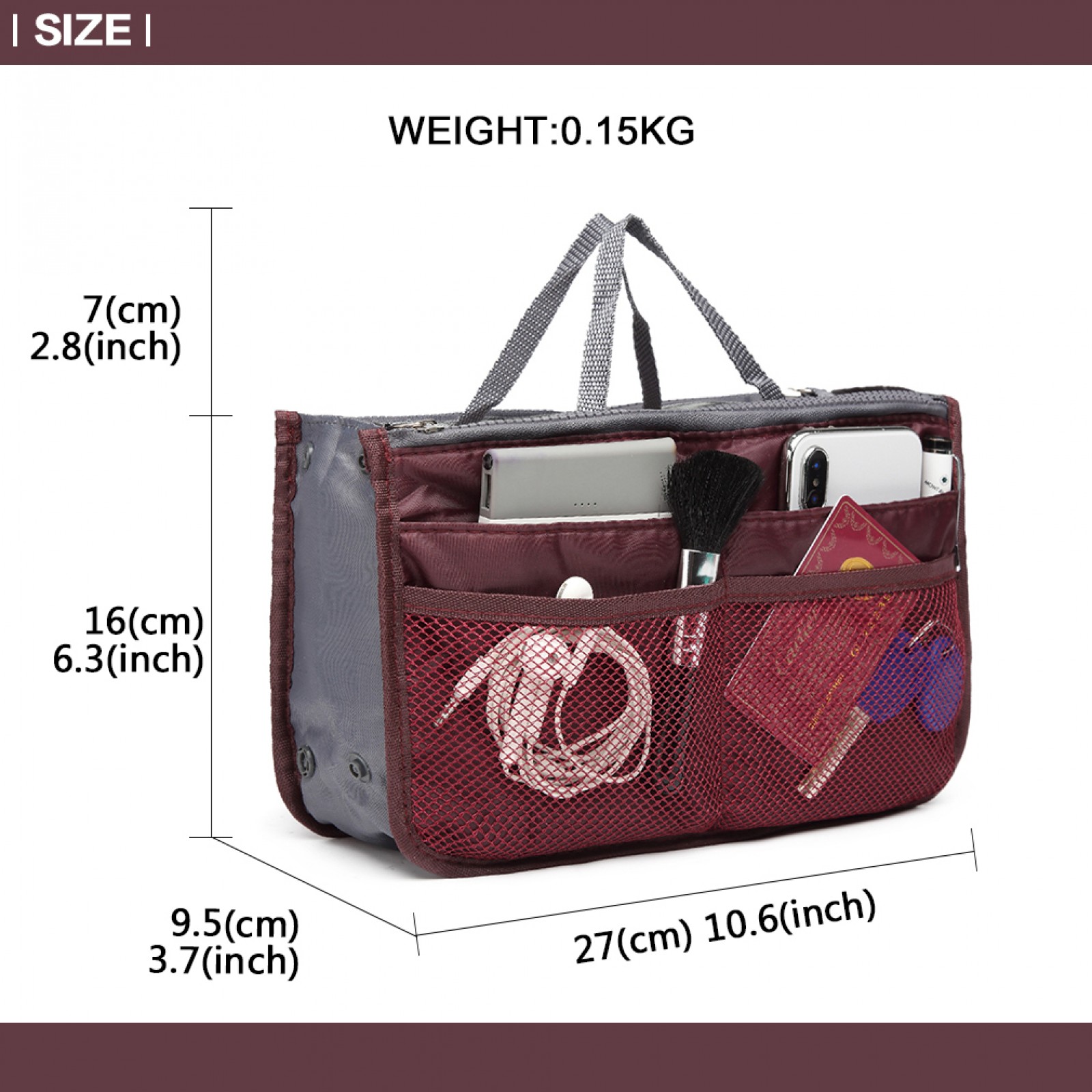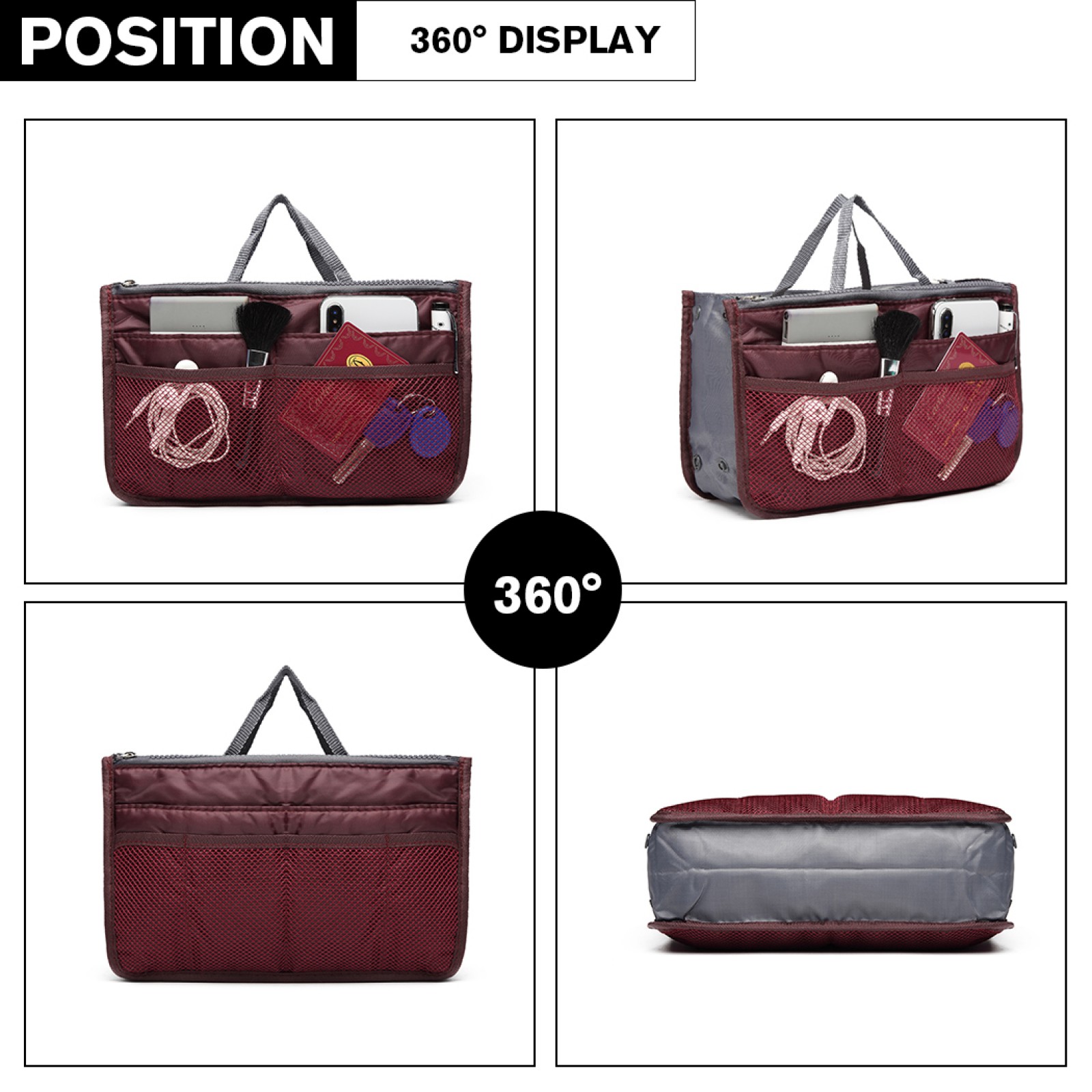 E6876 - Miss Lulu Folding Nylon Handbag Organiser - Burgundy
