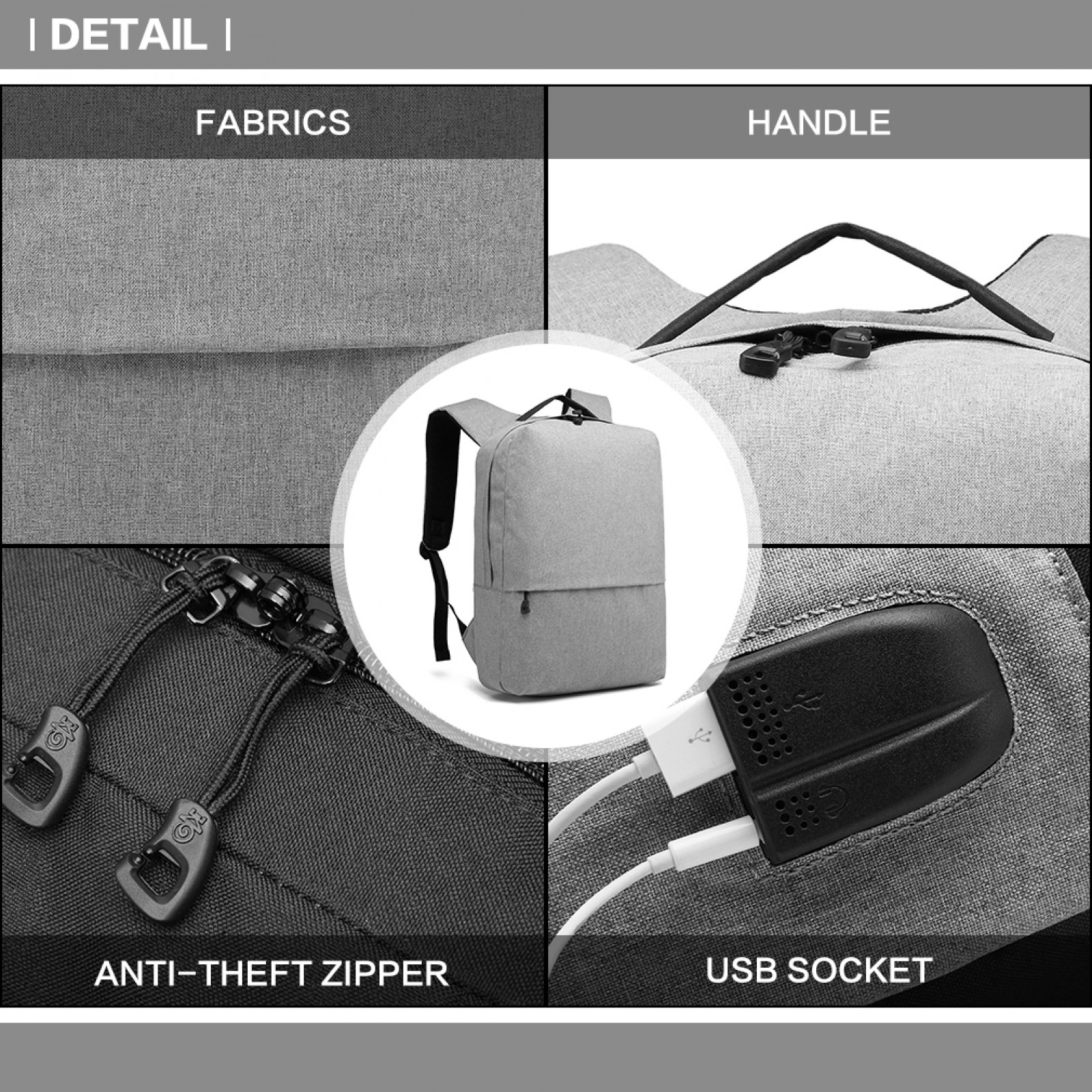E6891 - Kono Waterproof Basic Backpack with USB Charging Port - Grey