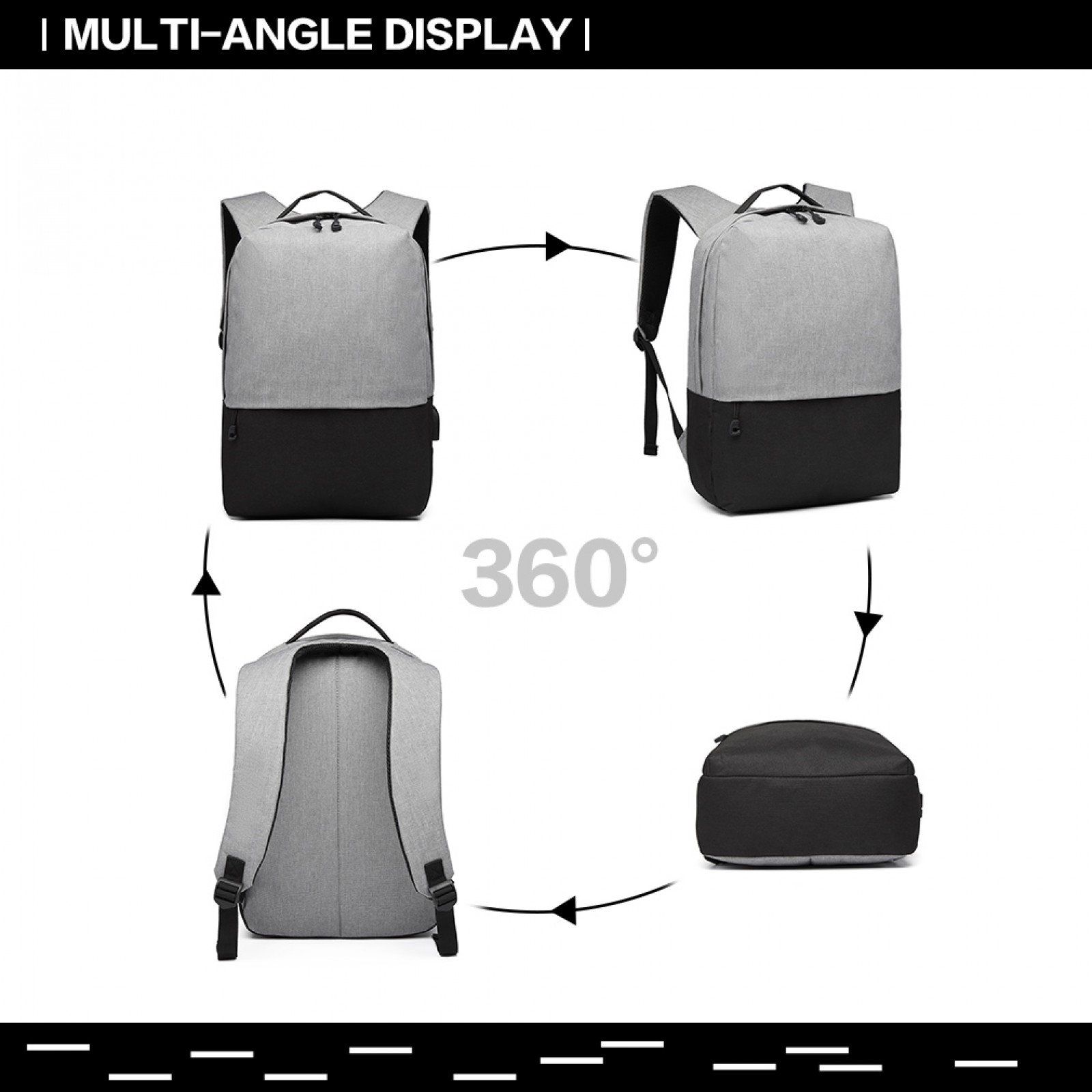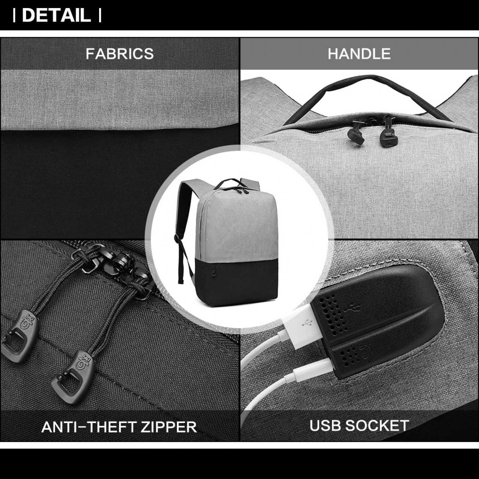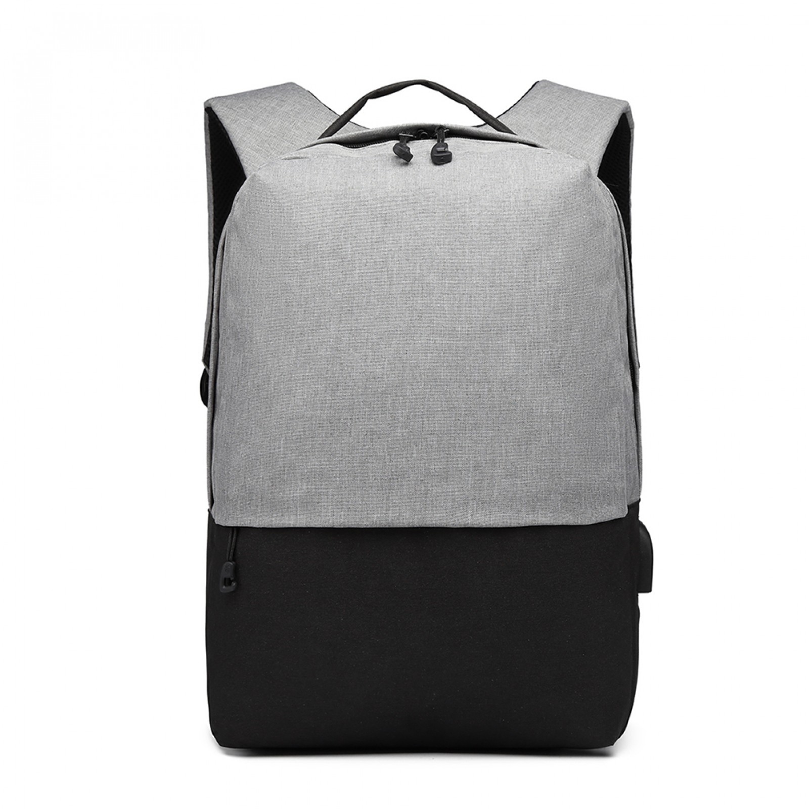 E6891 - Kono Waterproof Basic Backpack with USB Charging Port - Grey/Black