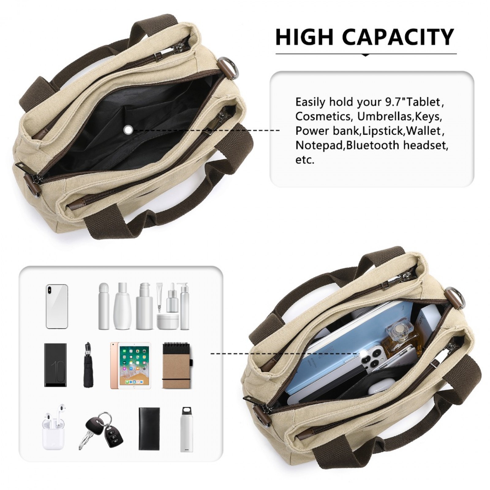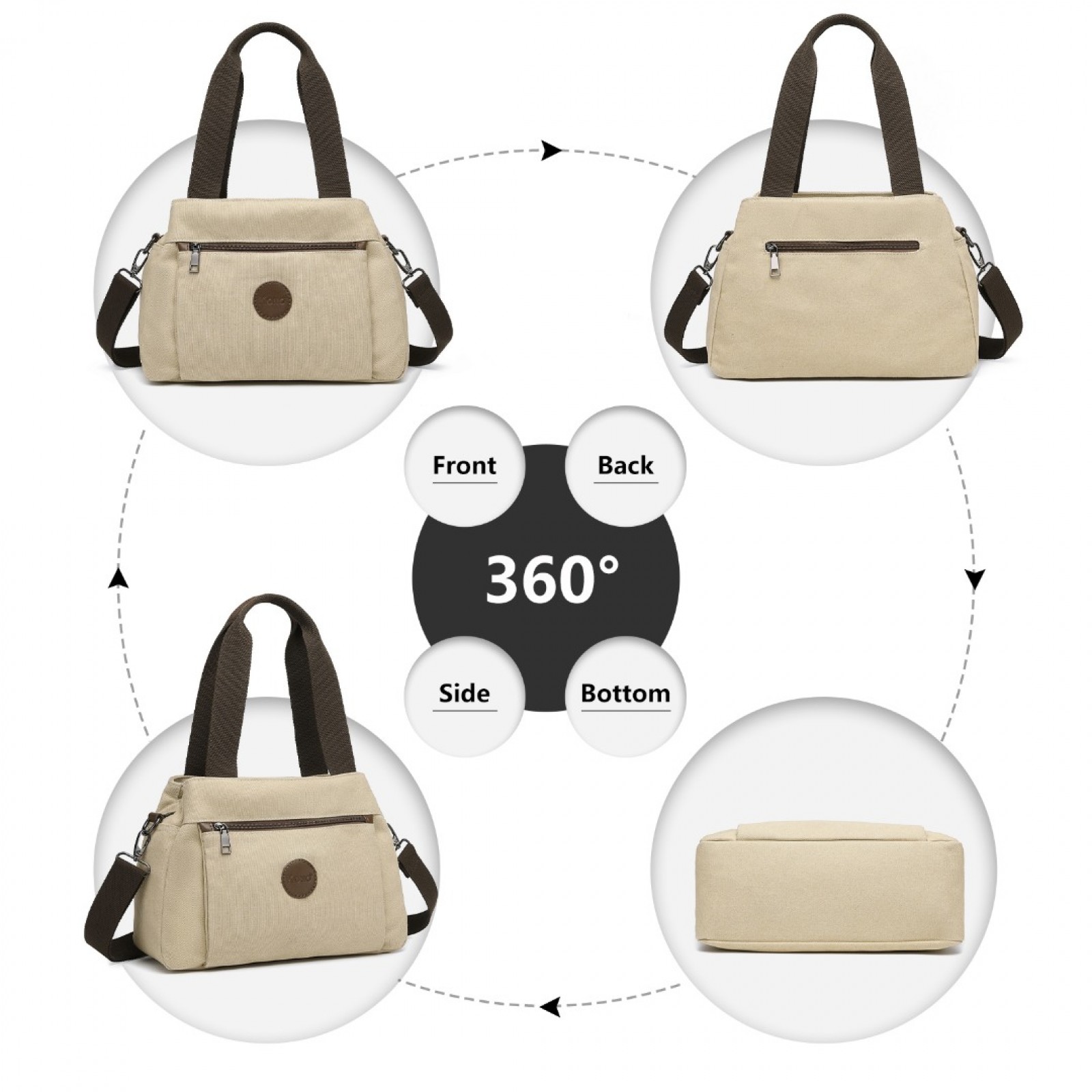 EH2045 - Kono Canvas Multi-Functional Cross Body Bag - Khaki