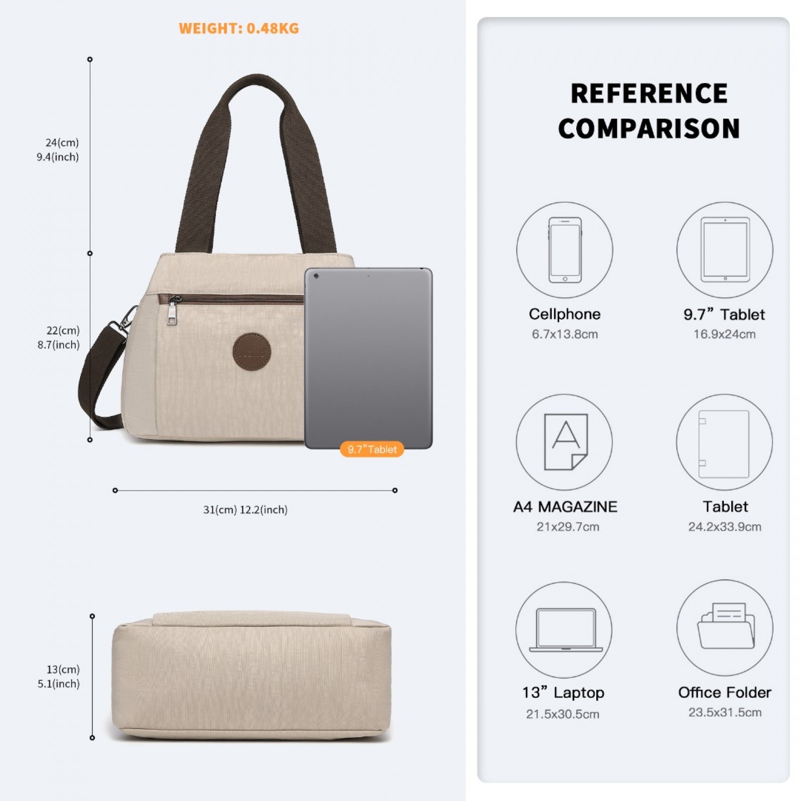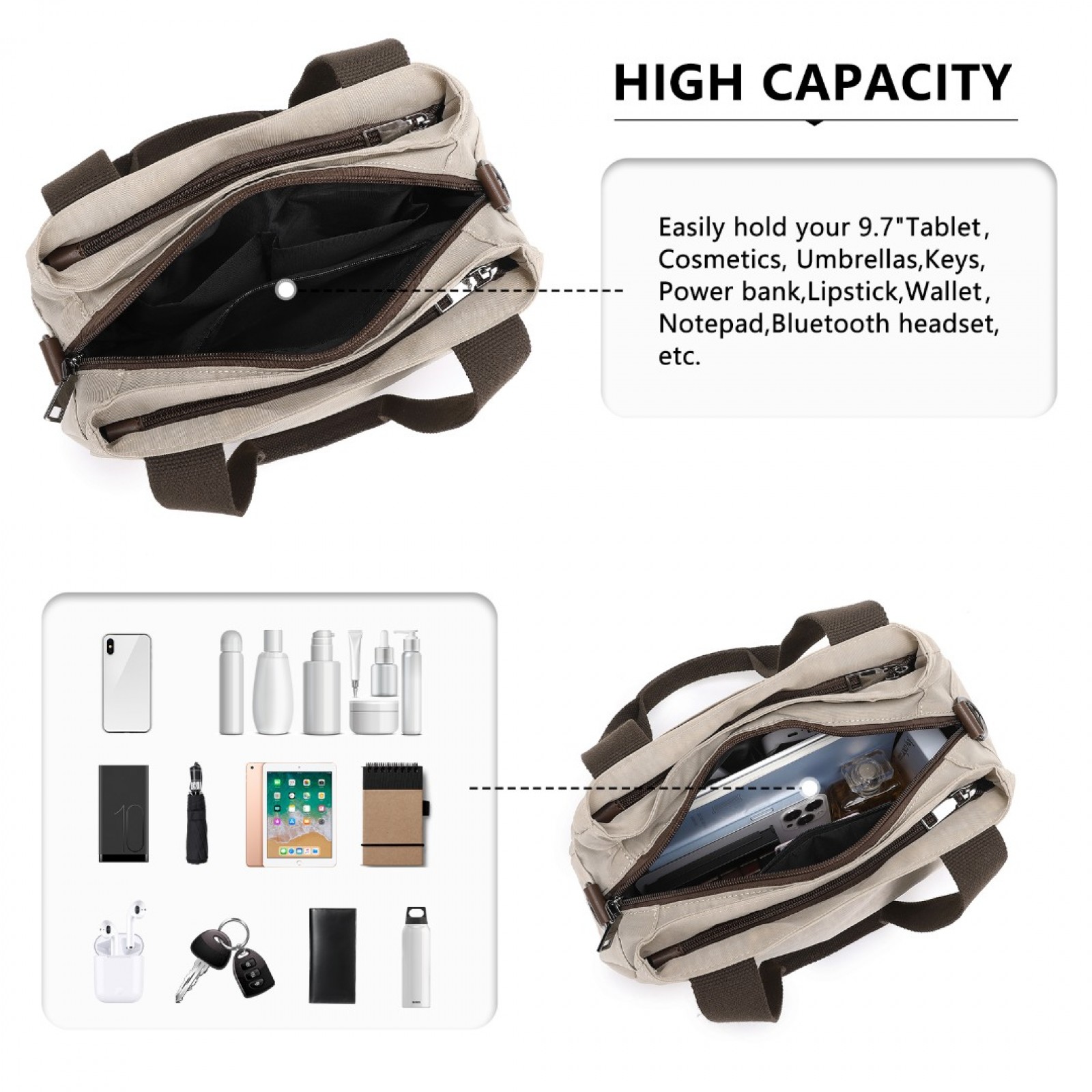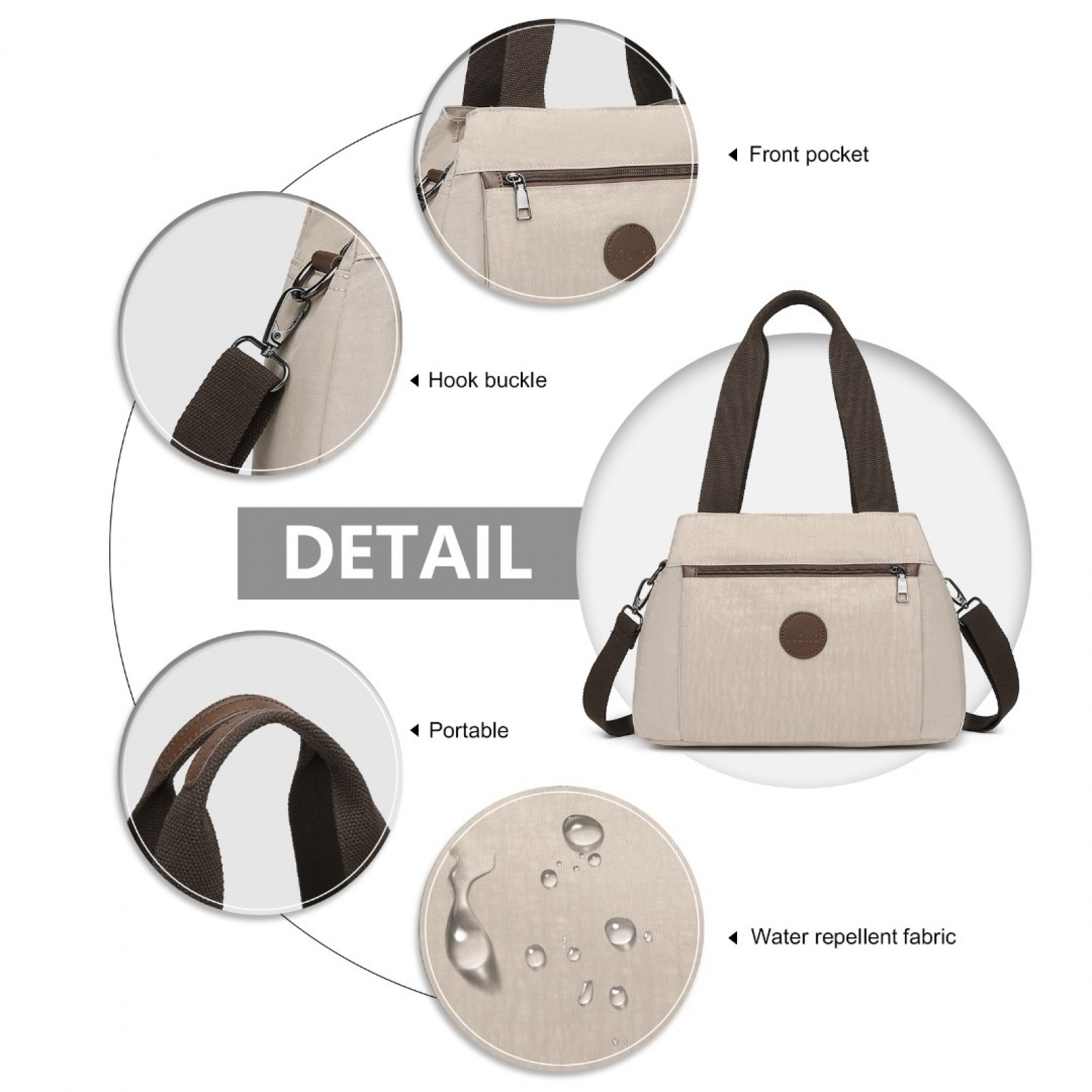 EH2239 - Kono Waterproof Multi-Functional Handbag Cross Body Bag - Khaki