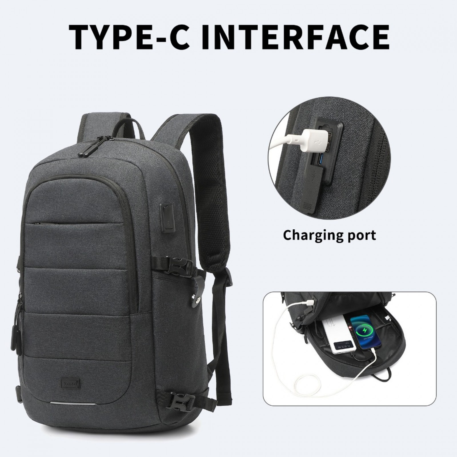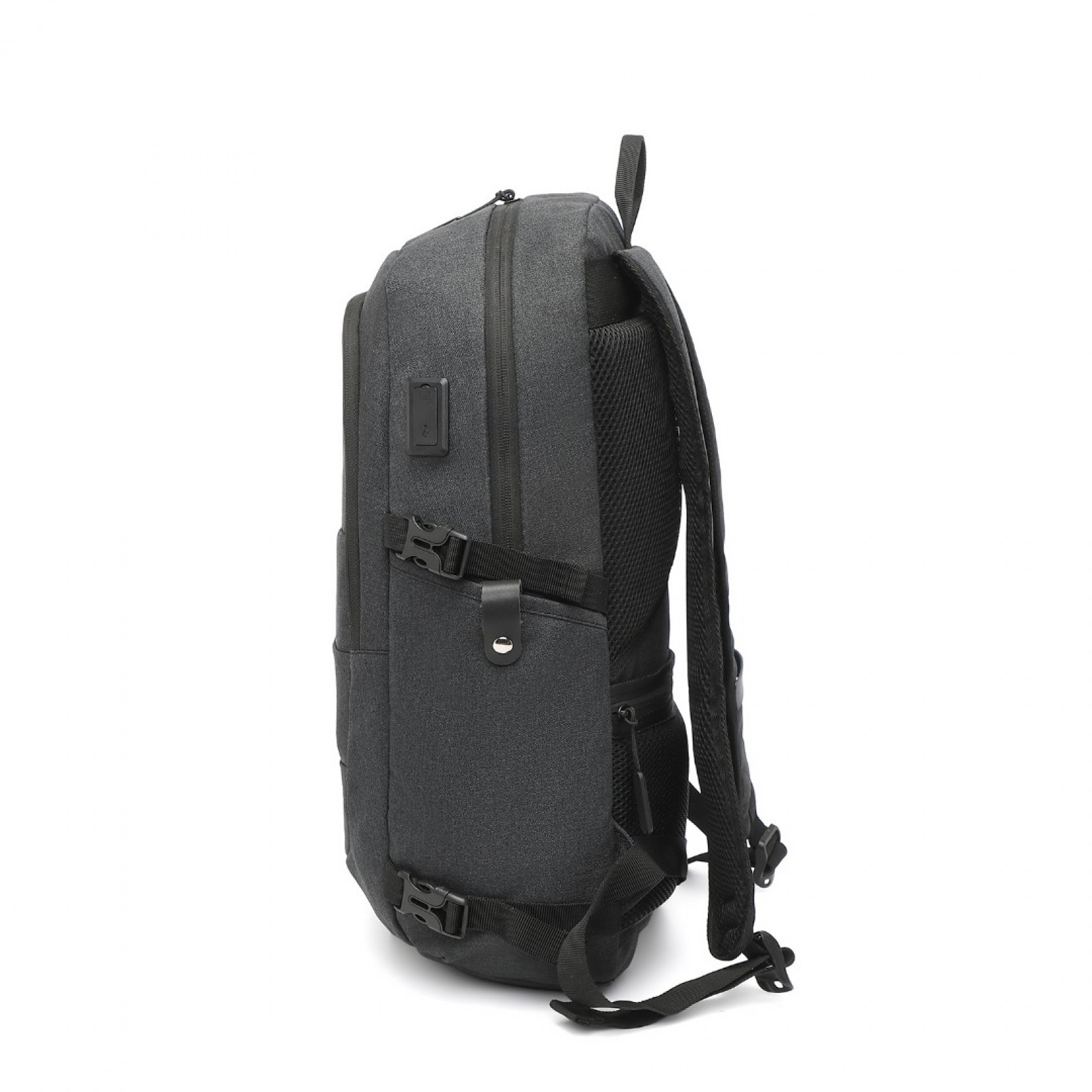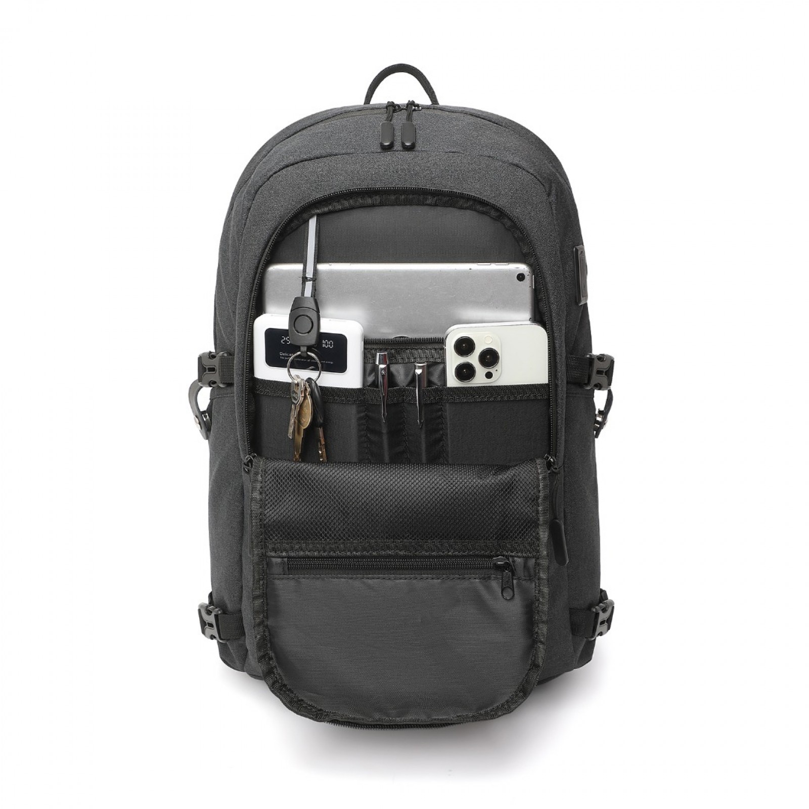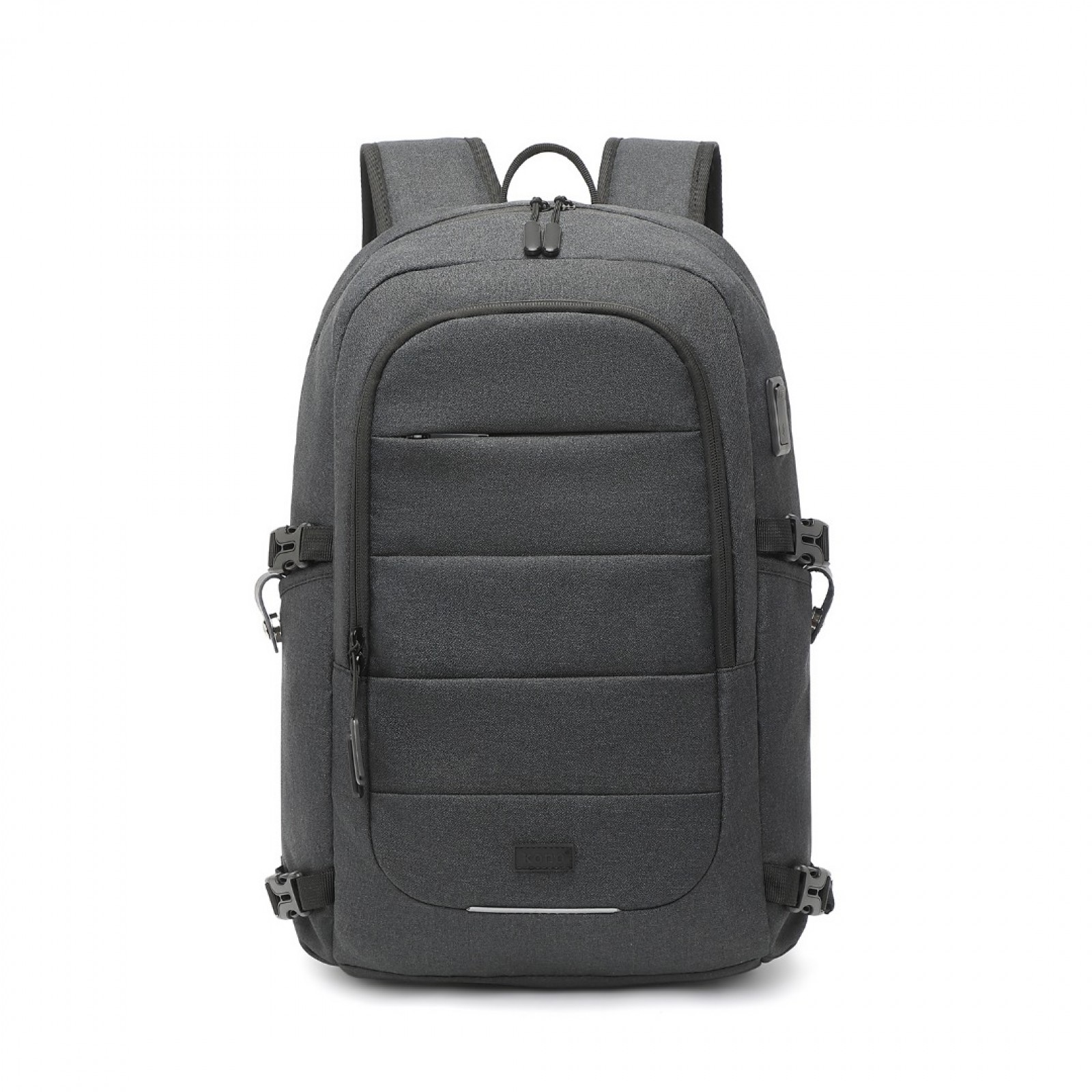 EM2347 - Kono Multi-Compartment Water-Resistant Backpack With USB Charging Port - Black