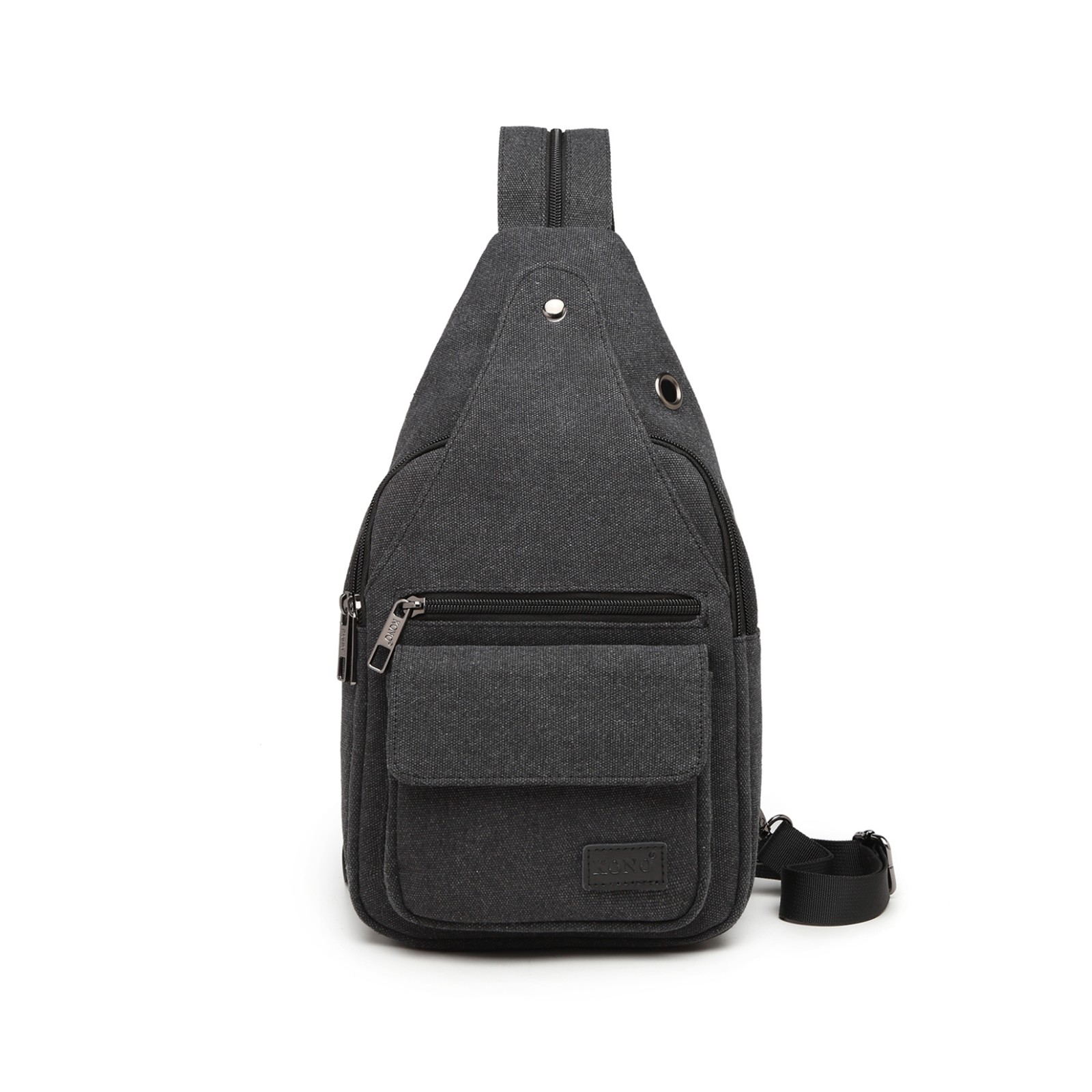 EQ2028 - Kono Casual Canvas Single Strap Sling Backpack - Black