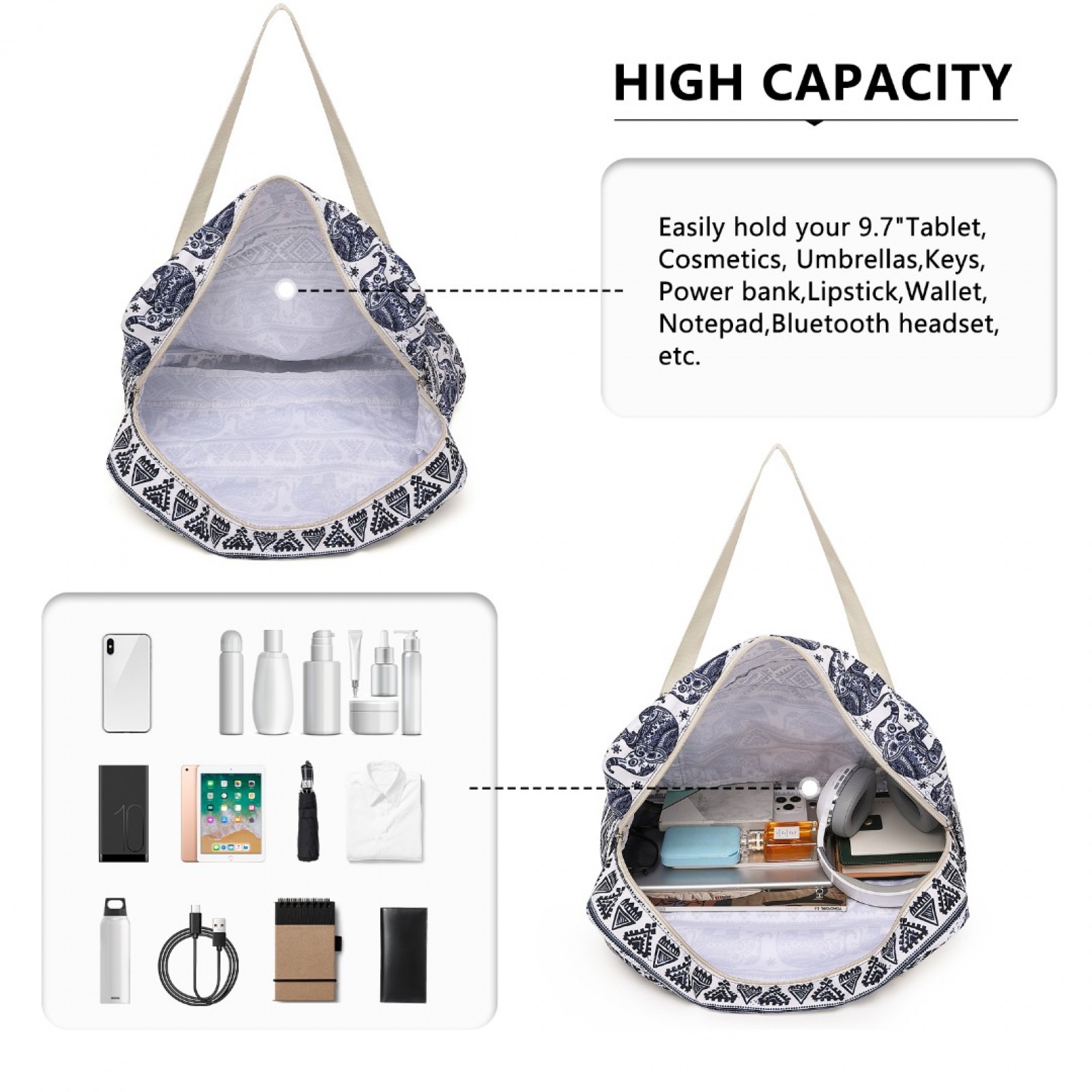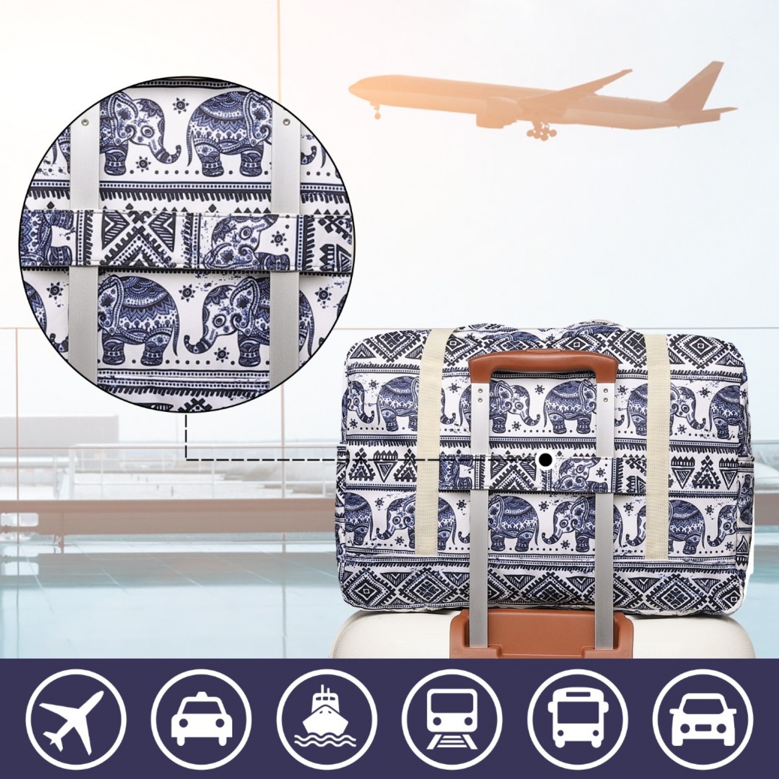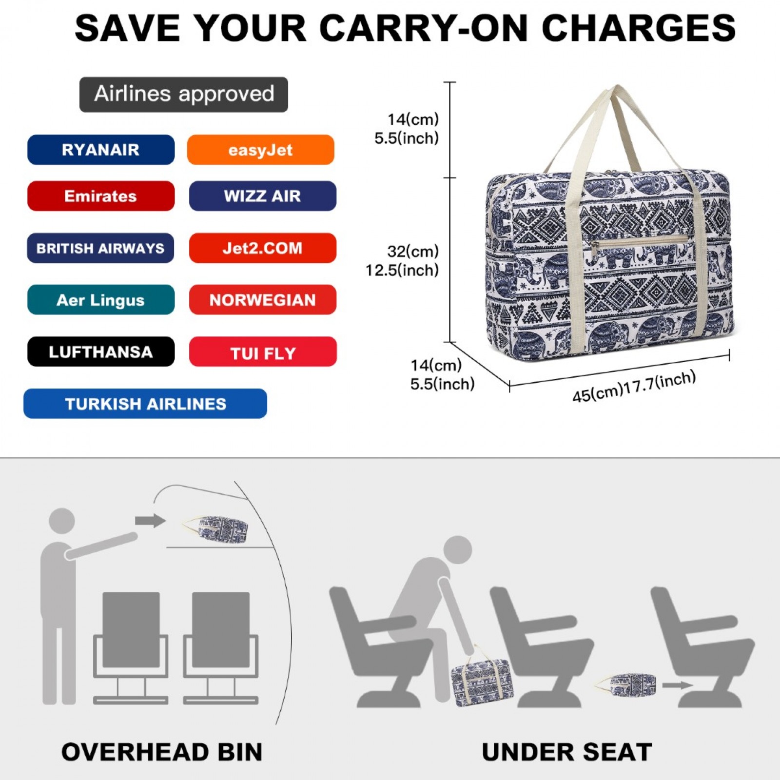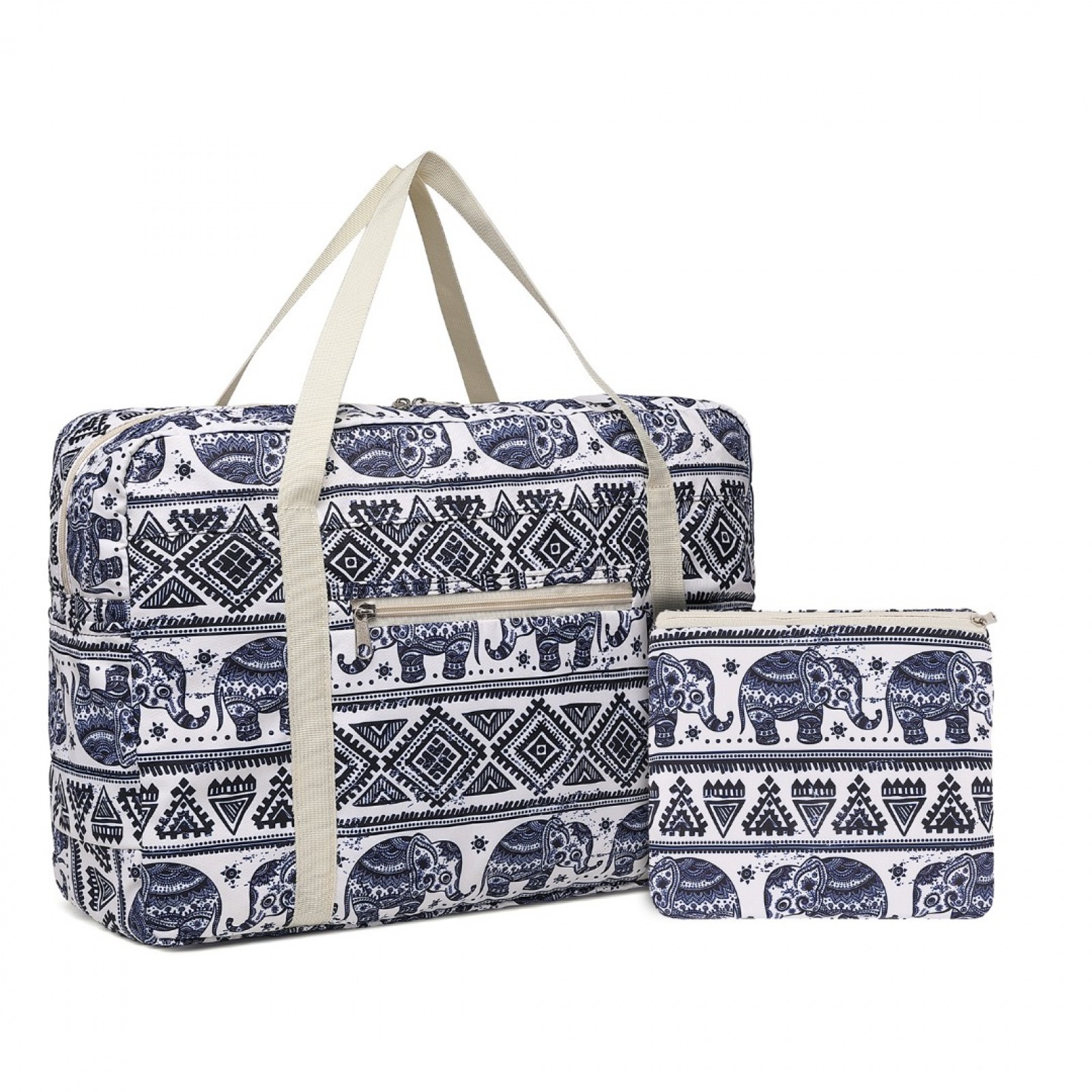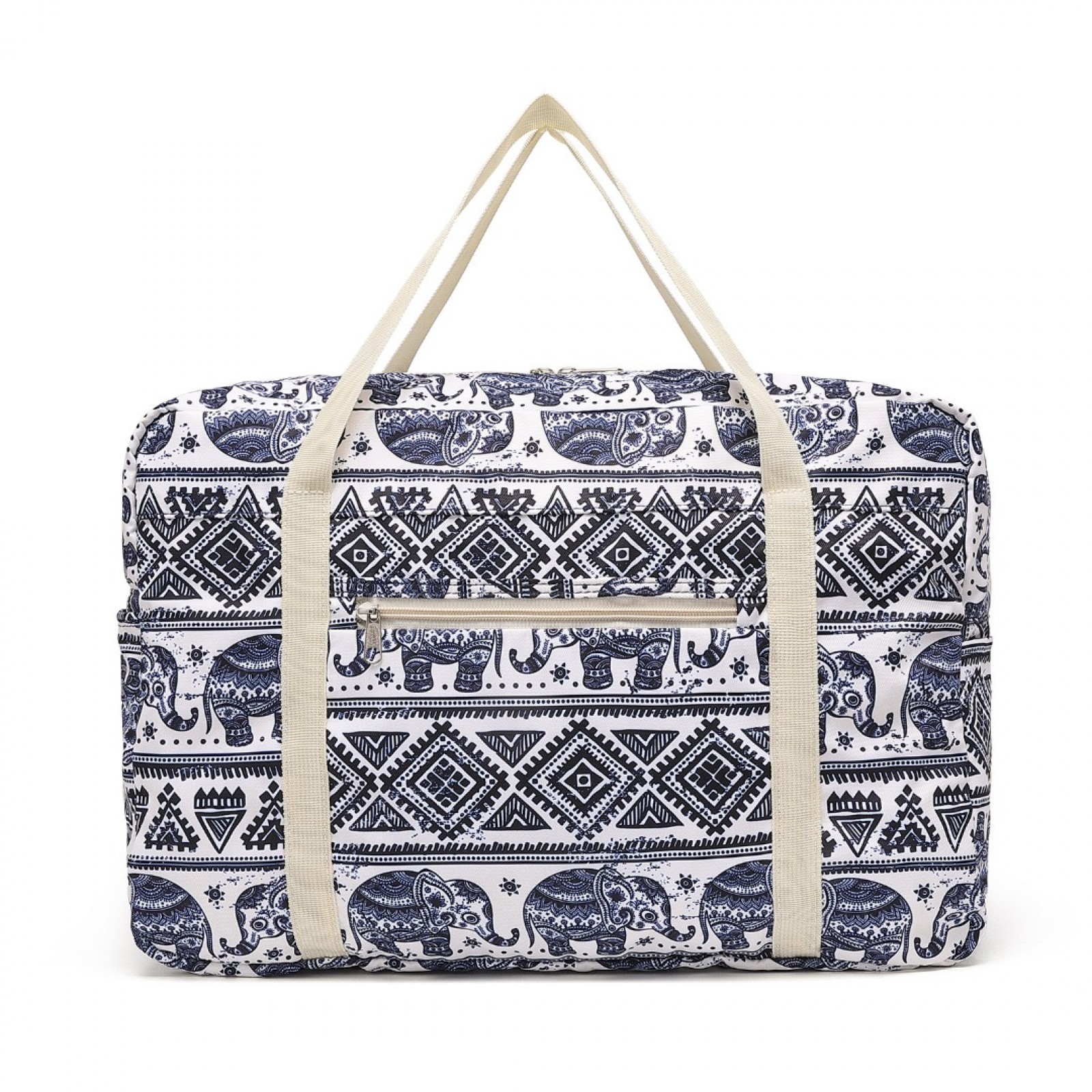 EQ2308E - Kono Foldable Waterproof Storage Cabin Travel Handbag Elephant Print - Navy And Beige
