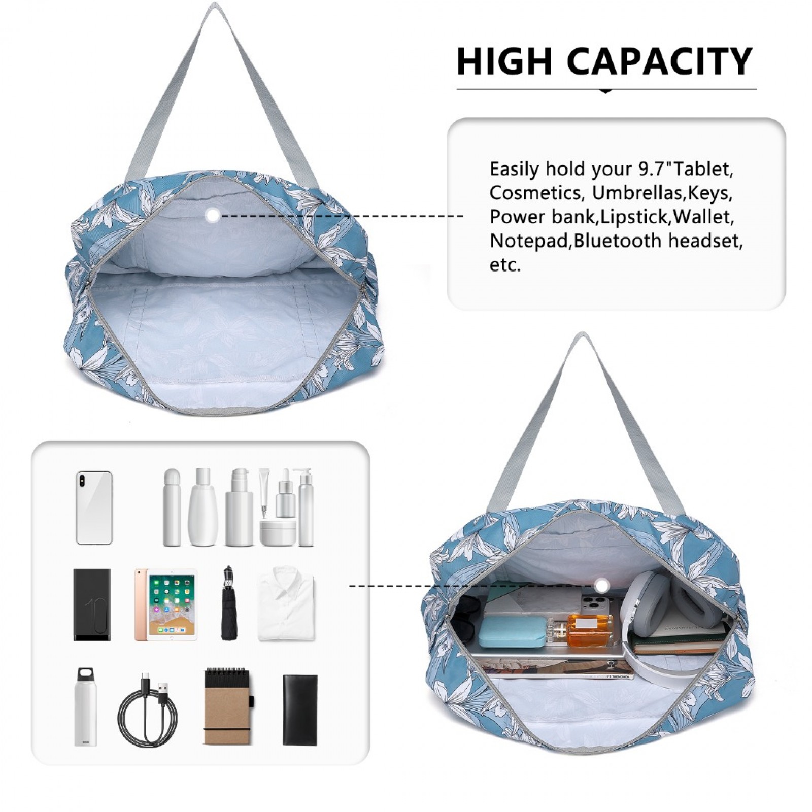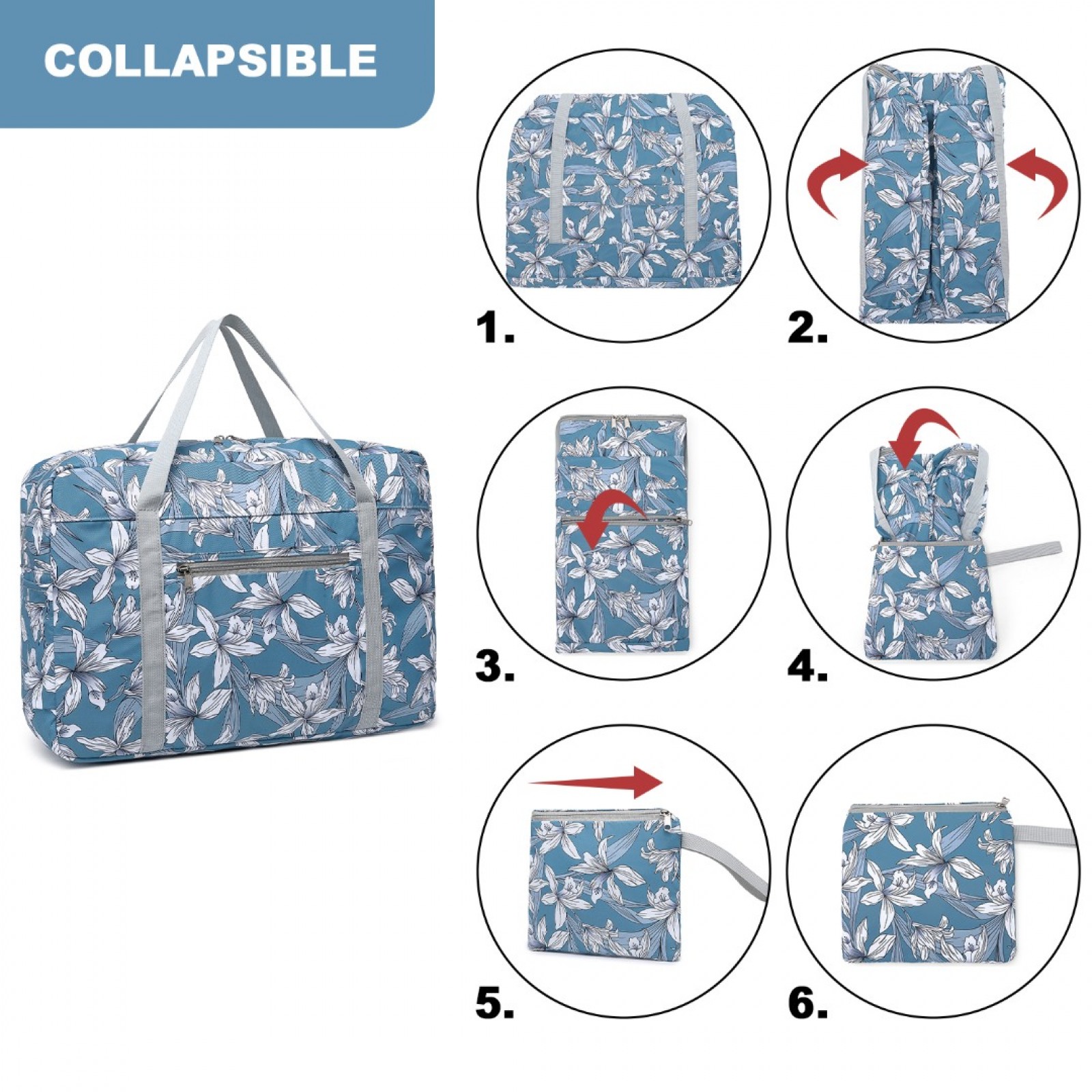 EQ2308F - Kono Foldable Waterproof Storage Cabin Travel Handbag Flower Print - Blue