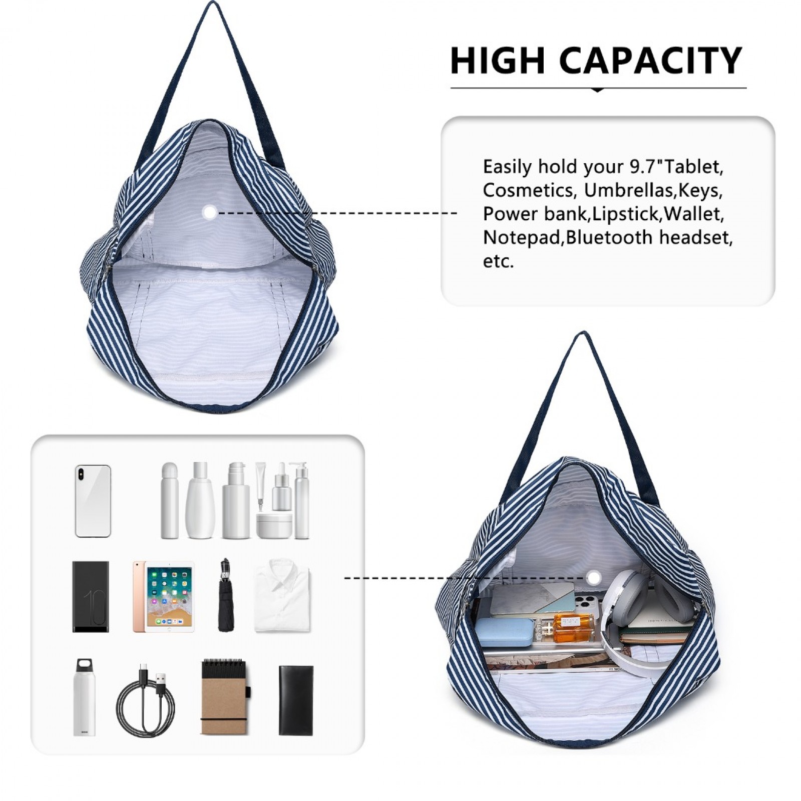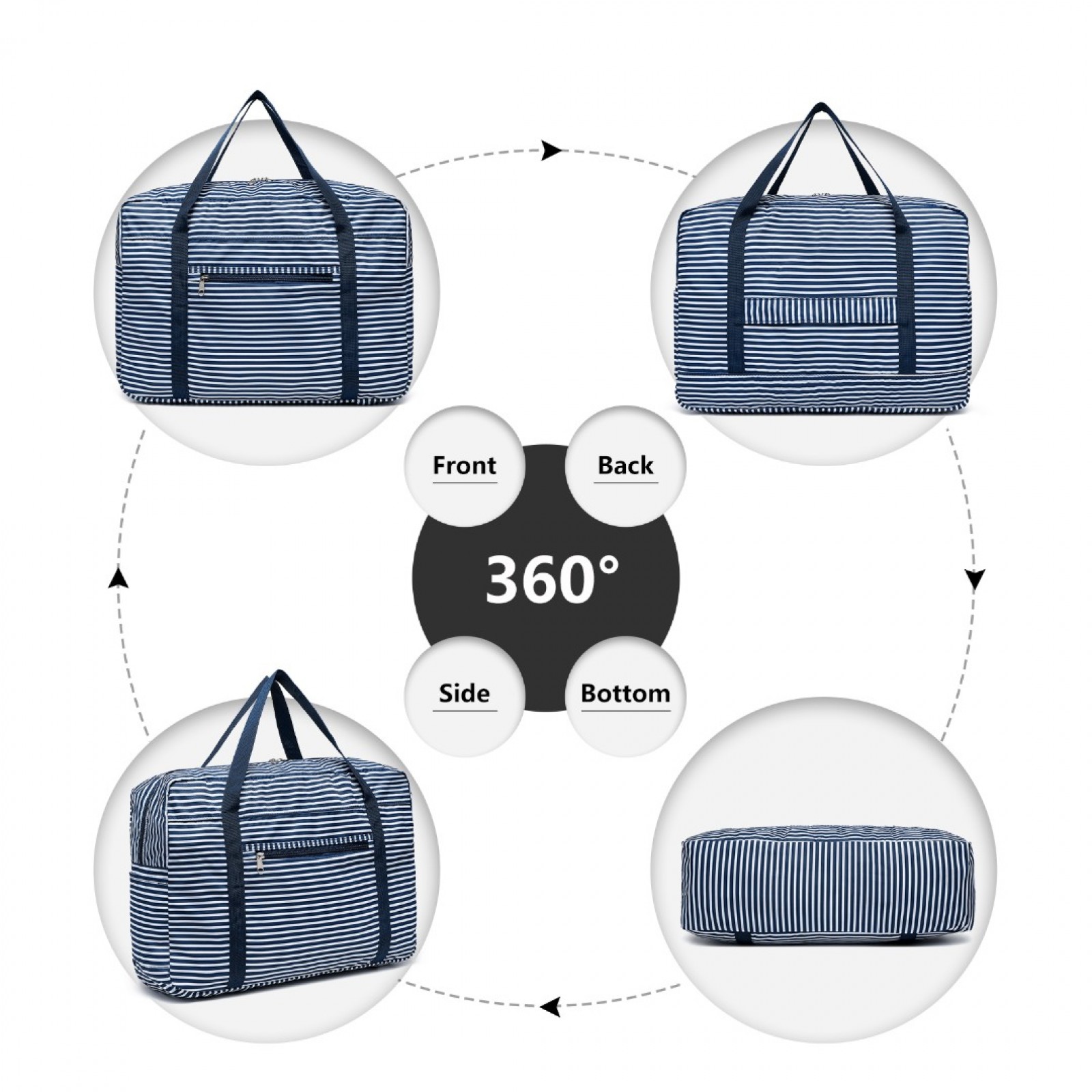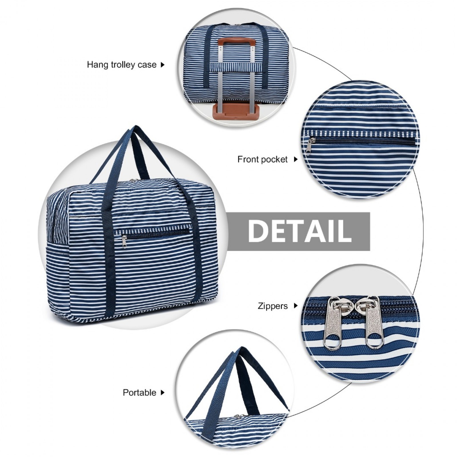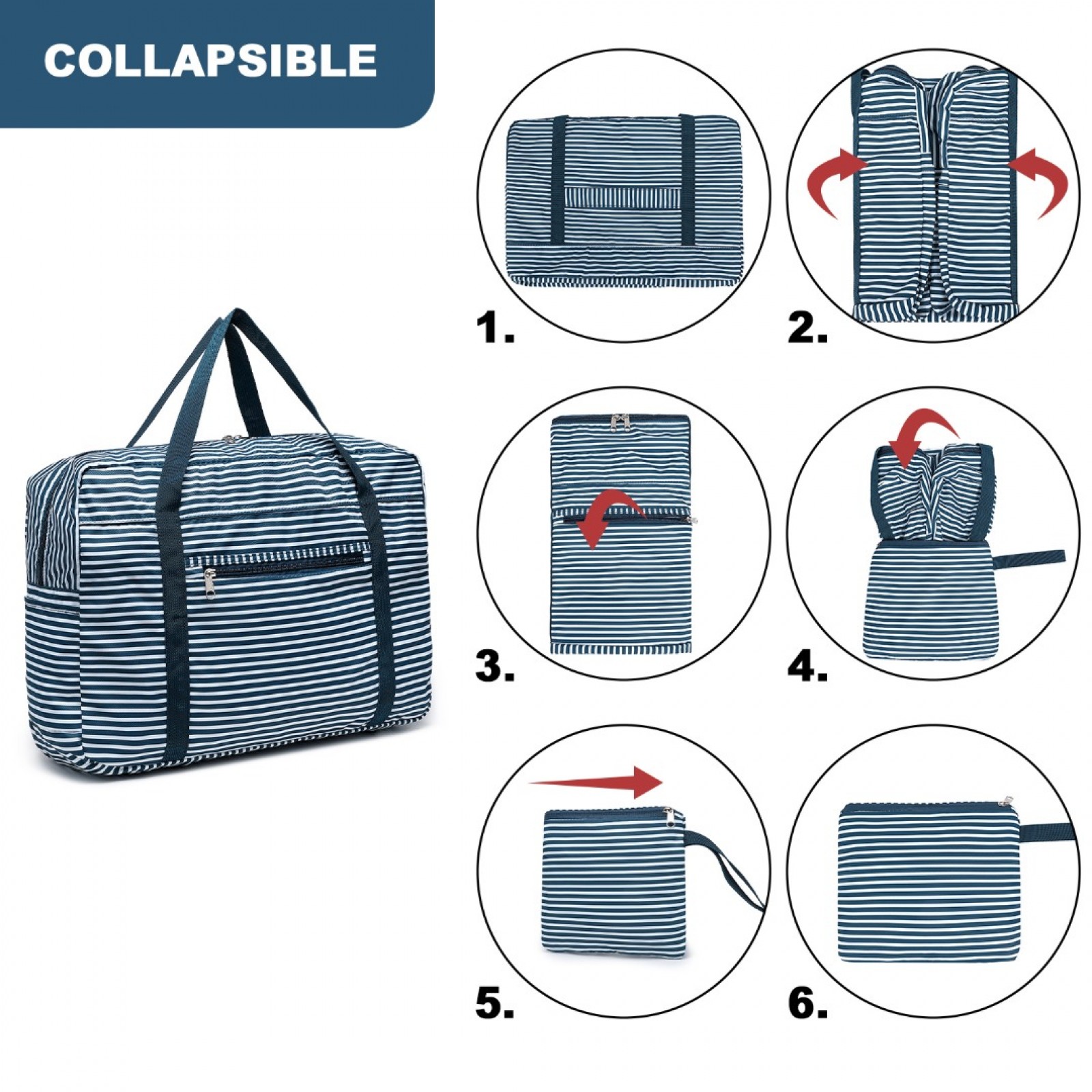EQ2308S - Kono Foldable Waterproof Storage Cabin Travel Handbag Striped Print - Navy