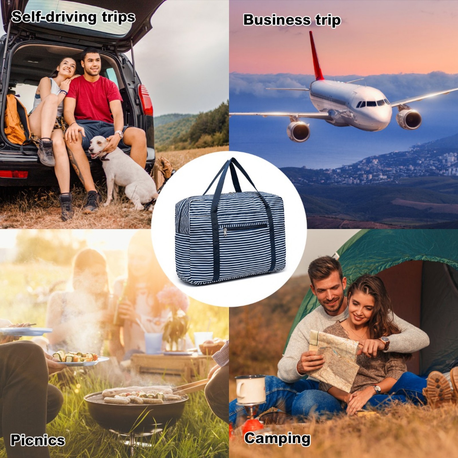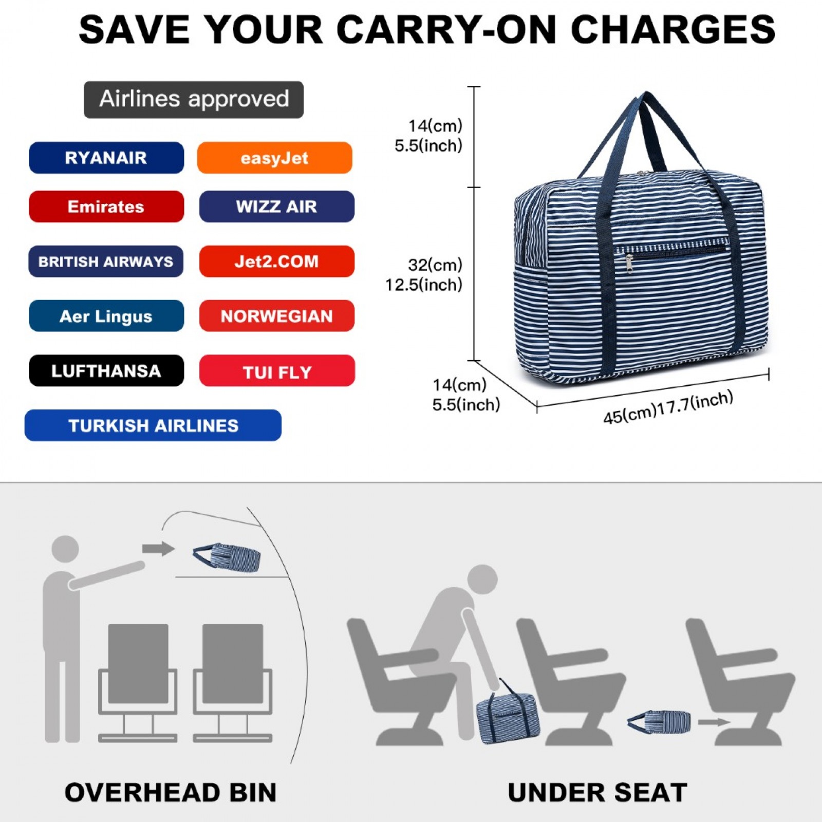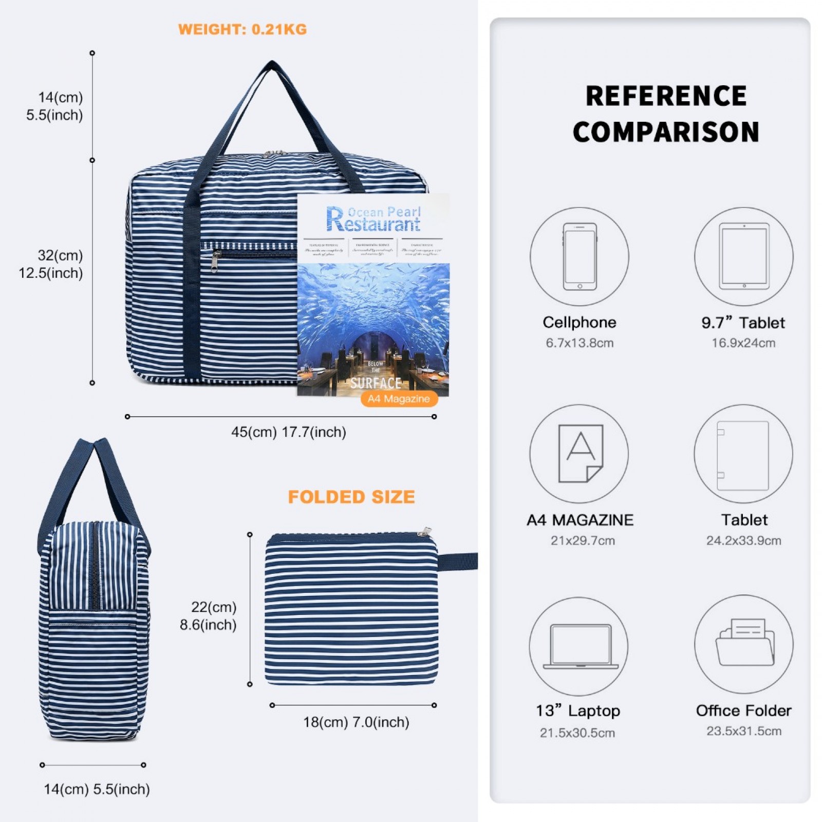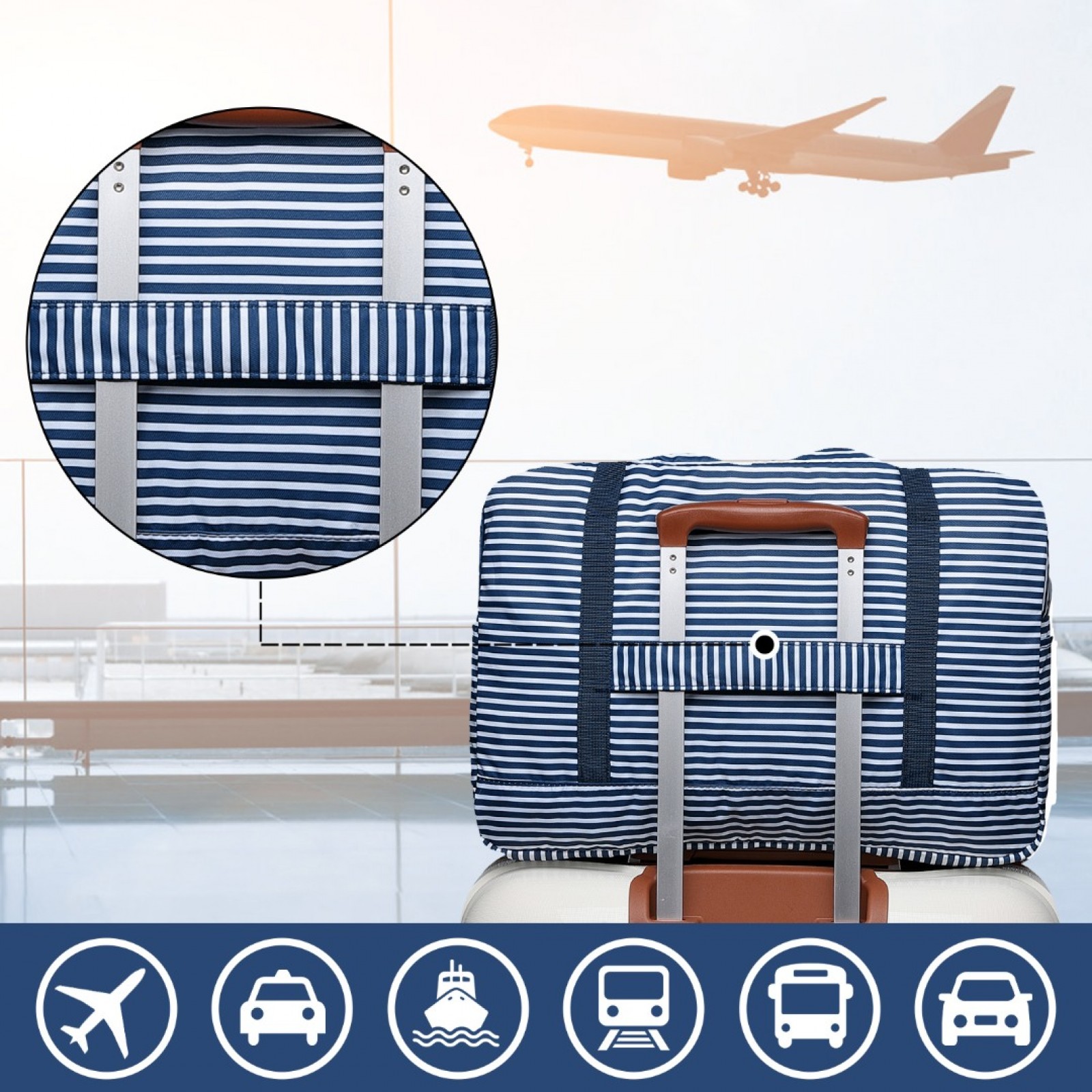 EQ2308S - Kono Foldable Waterproof Storage Cabin Travel Handbag Striped Print - Navy