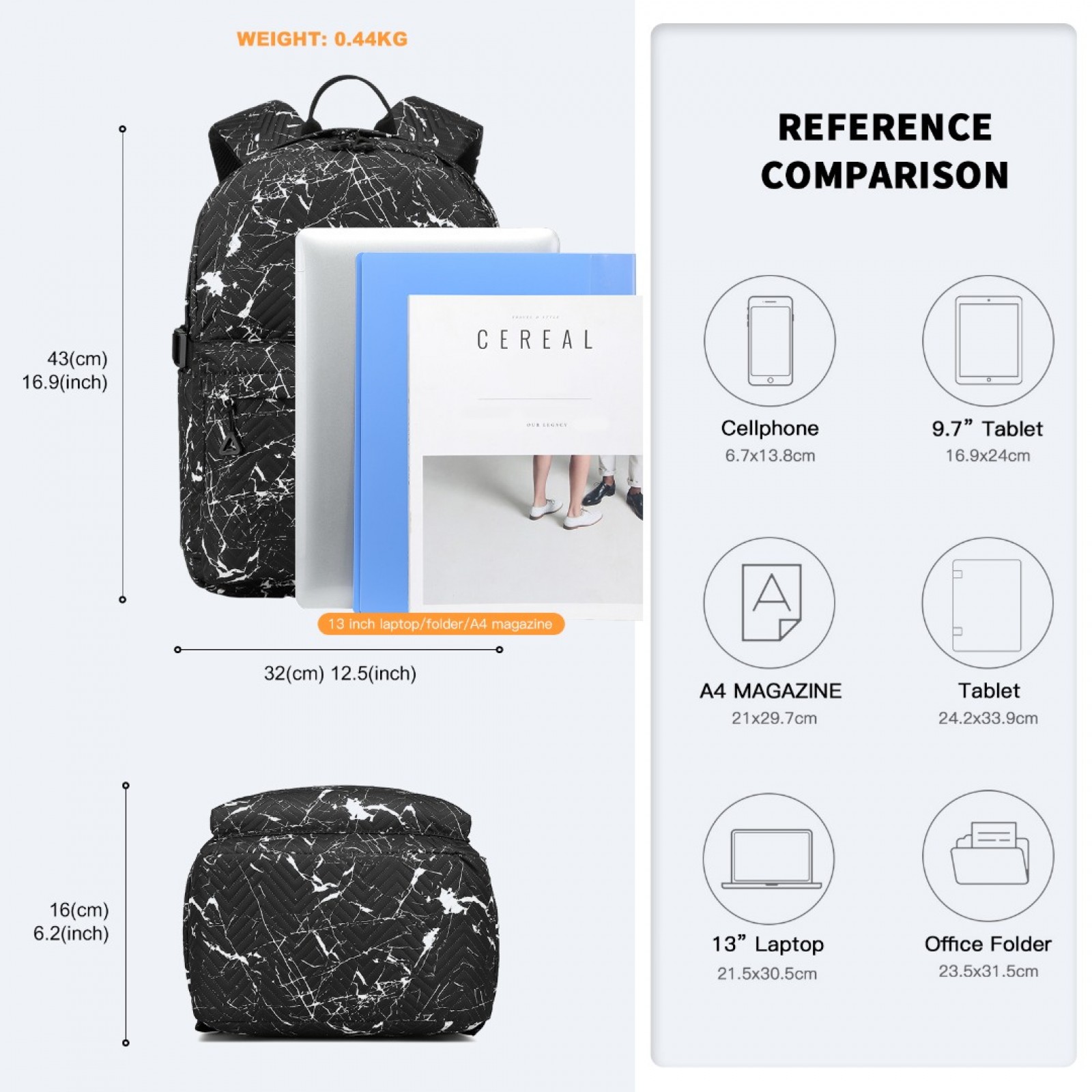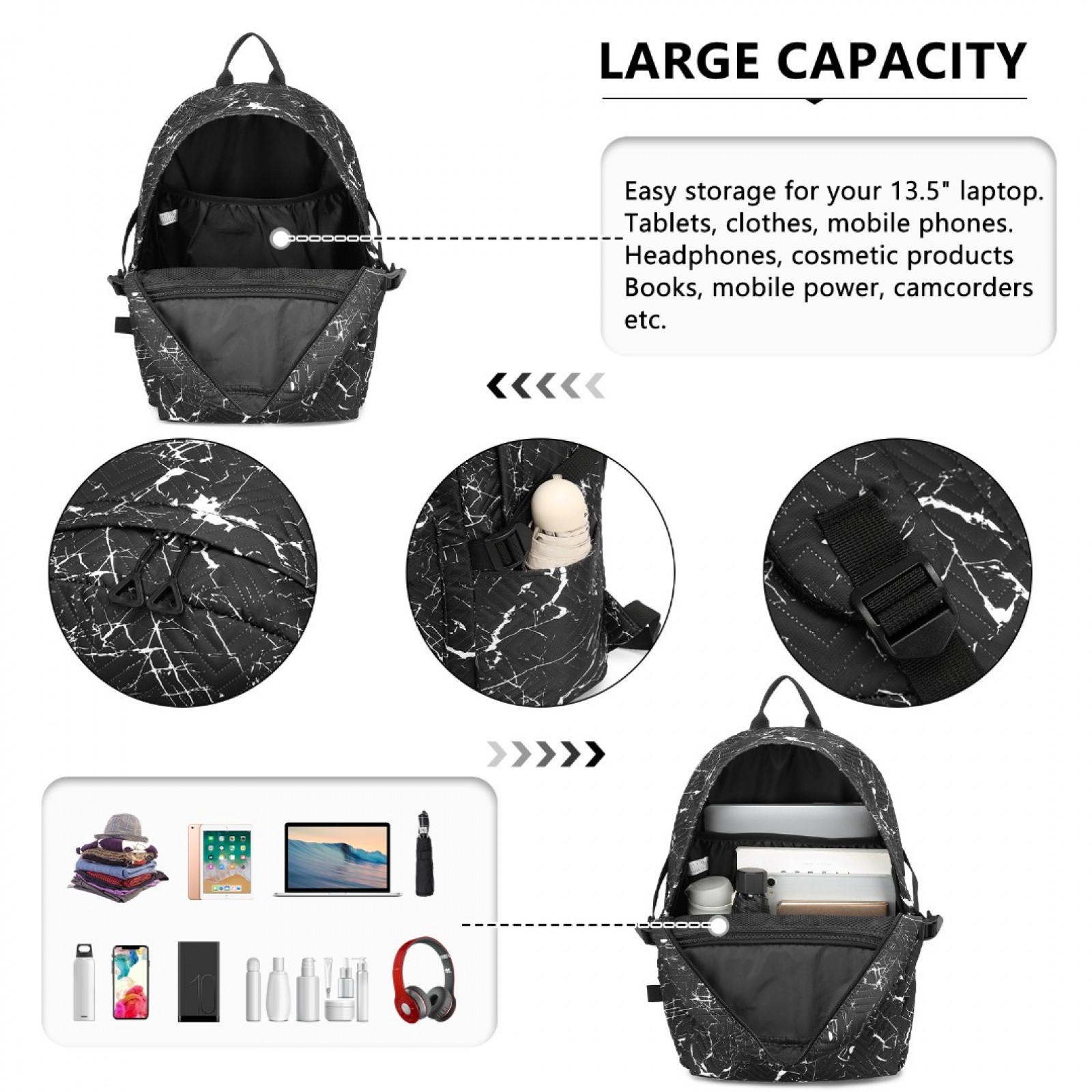 EQ2361 - Kono Water-Resistant School Backpack With Secure Laptop Compartment - Black