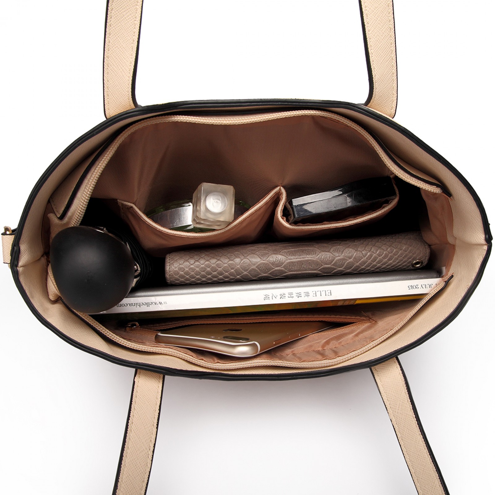 LT6648 - Miss Lulu Three Piece Tote Shoulder Bag And Clutch - Beige