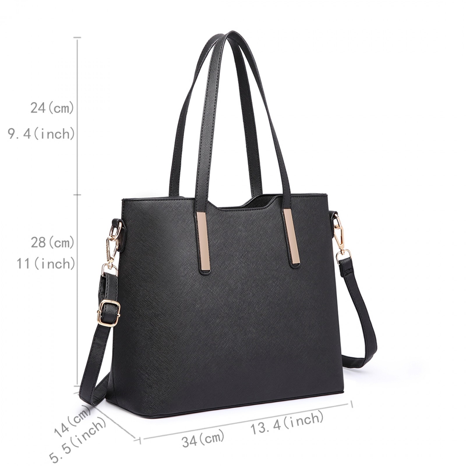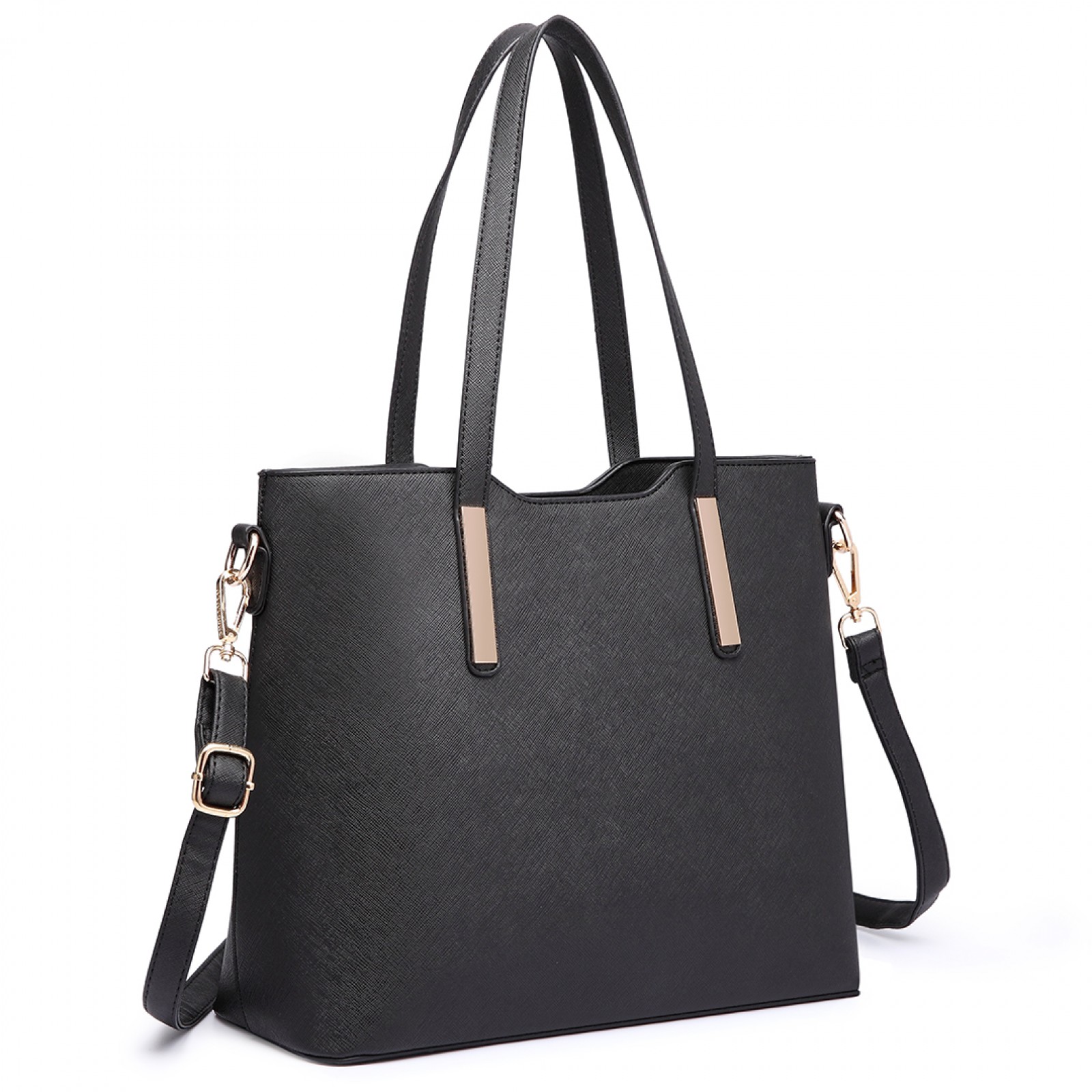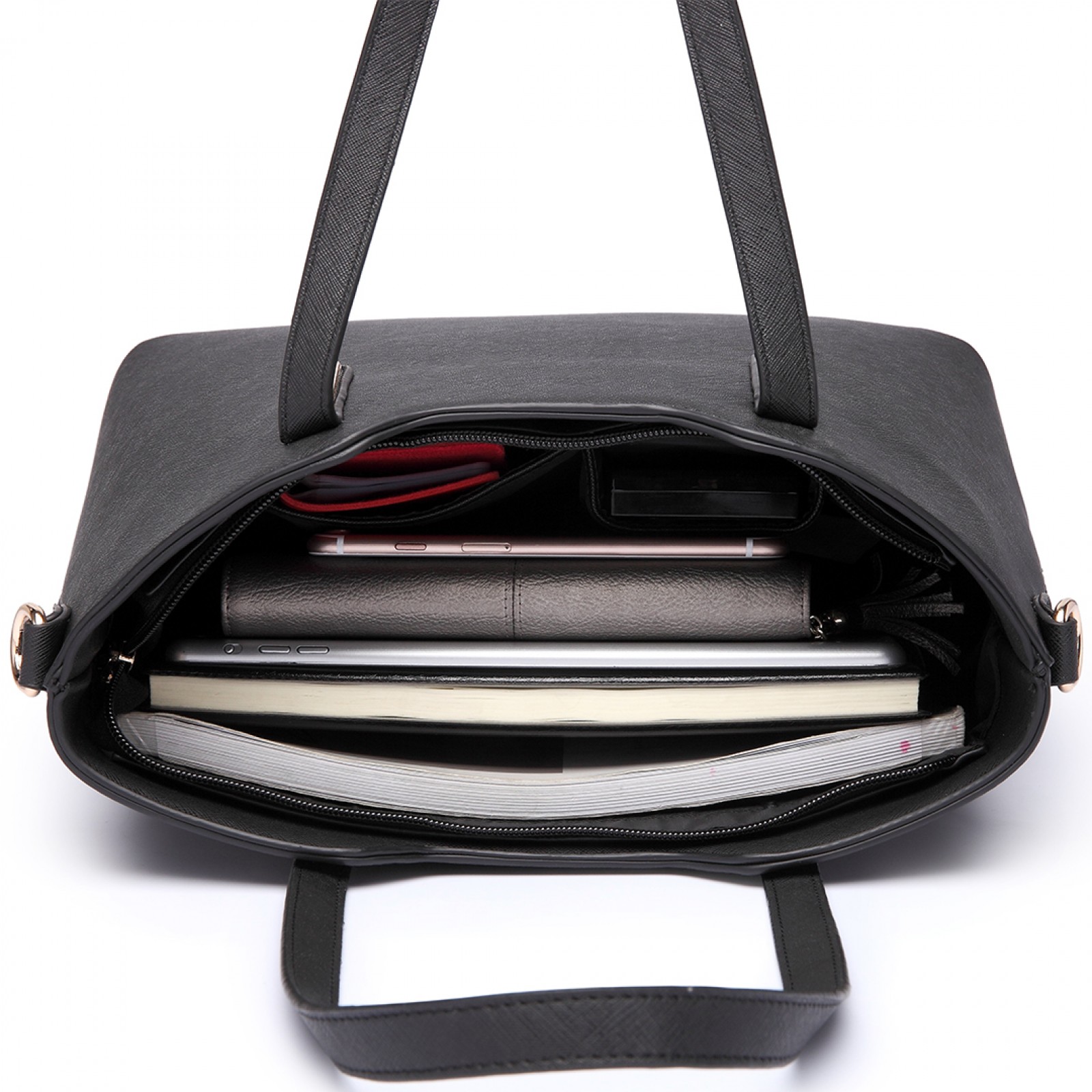 LT6648 - Miss Lulu Three Piece Tote Shoulder Bag And Clutch - Black