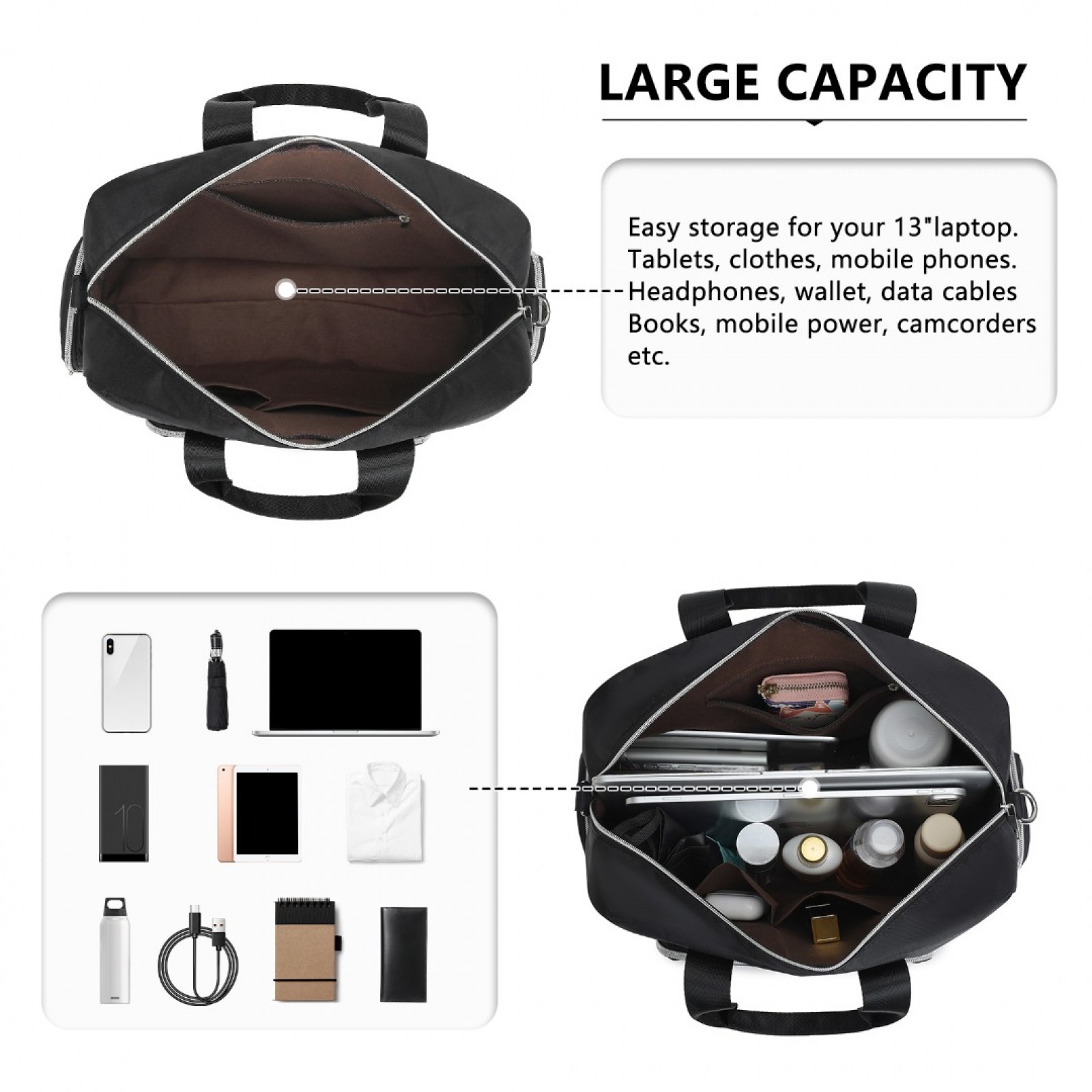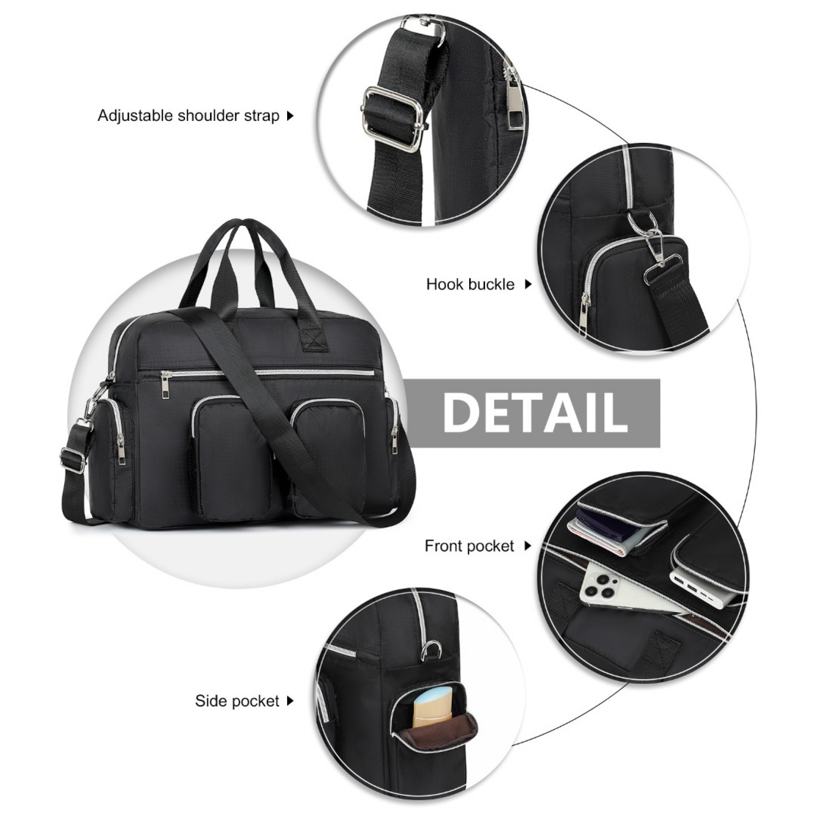MSK2436 - Kono Large Capacity Travel Bag with Multiple Zippered Pockets Perfect For Daily Use - Black