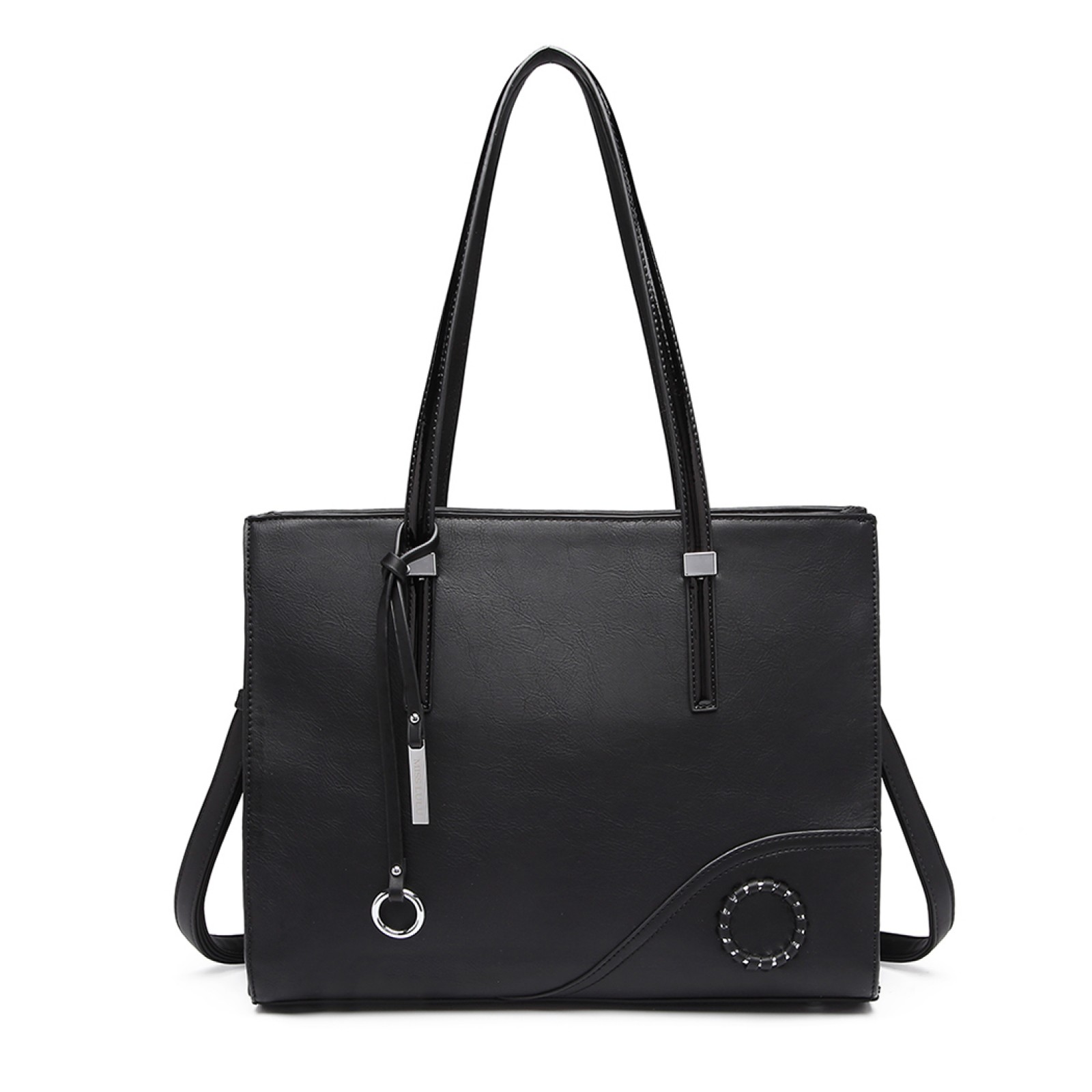 LN1909 - Miss Lulu Glossy Detail Shoulder Bag - Black