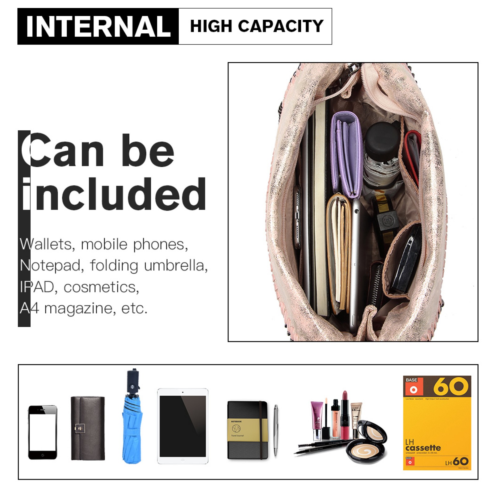 S1760 - Miss Lulu Metallic Effect Chain Tote Bag - Pink