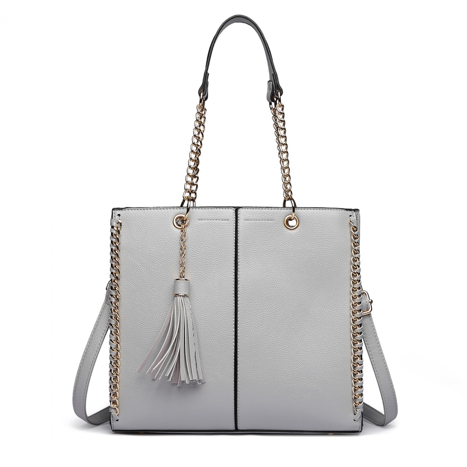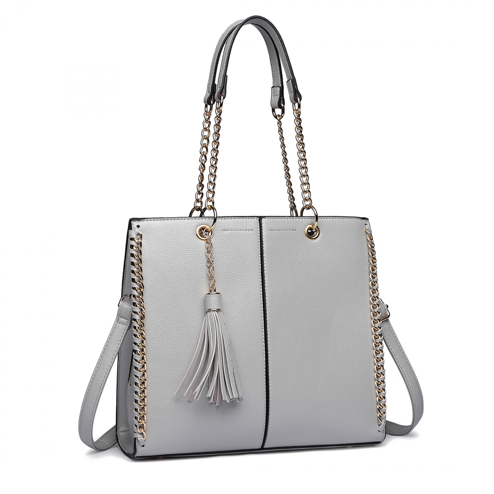 LT1821 GY -Miss Lulu Faux Leather Tassel Chain Tote Handbags Grey