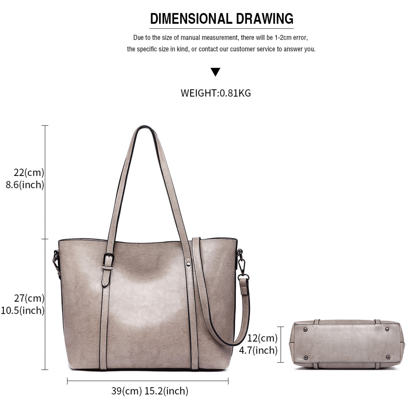27cm (H) * 39cm (W) * 12cm (D) ; 0.81kg (all measurements are external, internal dimensions may differ approx 1-2cm)