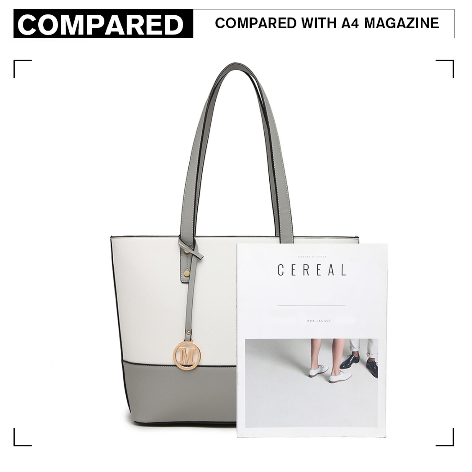 LG2023 - Miss Lulu Elegant 3-Piece Leather Look Tote Bag Set - Versatile & Chic for Every Occasion - Grey And White
